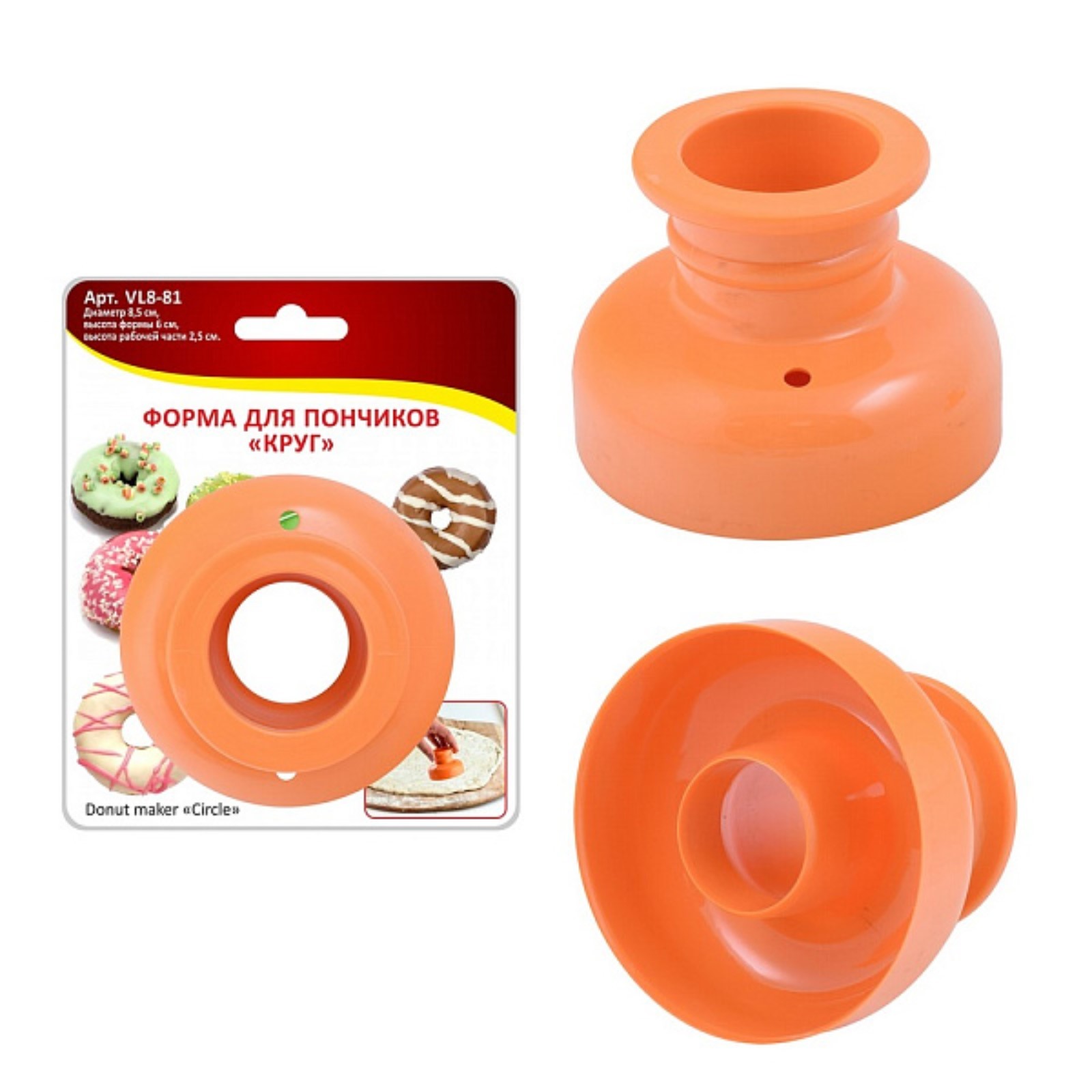 Форма для пончиков мультидом «круг», пластик, d=8.5 см. Форма выполнена из пластмассы (полистирол). Изделие просто в применении: подготовьте тесто, раскатайте его, а затем вырежете аккуратные кружочки с помощью формы. Размер 8. 5х8. 5х6 см. Цвет: Оранжевый Форма: Круглая Крышка: Нет Материал: Полистирол Тип покрытия: Без покрытия Тип формы: Для печенья и пирожных Разъёмная форма: Нет Можно мыть в посудомоечной машине: Нет Форма: Круг, шар, цилиндр  развернуть описание ▼