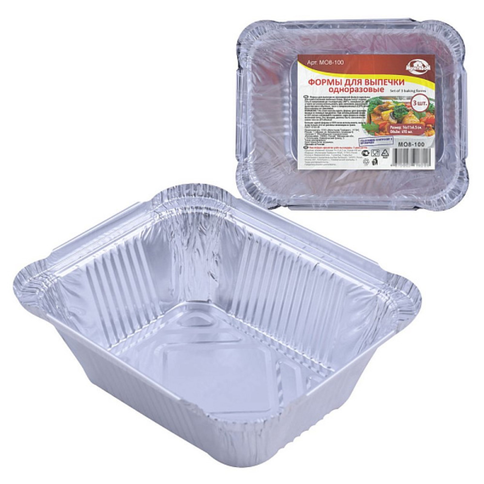 Формы для выпечки мультидом, одноразовые, фольга, 490 мл. Формочки выполнены из алюминиевой фольги, материал равномерно нагревается, имеет хорошую теплопроводность, выдерживает нагревание до 280°С и заморозку до - 40°С. Одноразовая посуда для выпечки подойдет для выпекания в духовке или в микроволновой печи. Блюда можно не вынимать, они смотрятся привлекательно и сокращают время на мытье посуды. Изделия могут использоваться как контейнеры, которые можно брать с собой в поездку или на работу. Фольга не поглощает посторонние запахи и не пропускает свет, следовательно, продукты дольше остаются свежими. Формочки не впитывают влагу и жир, блюдо остается сочным и нежным. Материал не токсичен, не накапливается в организме человека, не вступает в химические реакции с пищей. Не храните внутри кислые и солёные продукты. При использовании в СВЧ-печах соблюдайте правило: форма должна быть расположена в СВЧ-печи минимум на 2 см от стенок печки или от другой посуды из алюминиевой фольги. Размер 14х11х4. 5 см, объём 490 мл. Цвет: Серебристый Форма: Прямоугольная В наборе, шт.: 3 Крышка: Нет Материал: Алюминий Материал: Фольга Тип покрытия: Без покрытия Тип формы: Для приготовления вторых блюд Разъёмная форма: Нет Можно мыть в посудомоечной машине: Нет Форма: Прямоугольник  развернуть описание ▼