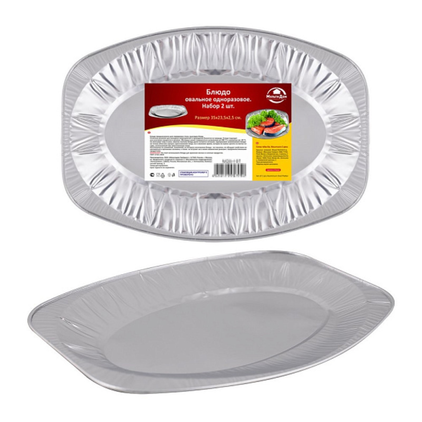 Блюдо овальное мультидом, одноразовое, фольга, размер 35х23.5х2.5 см, 2 шт