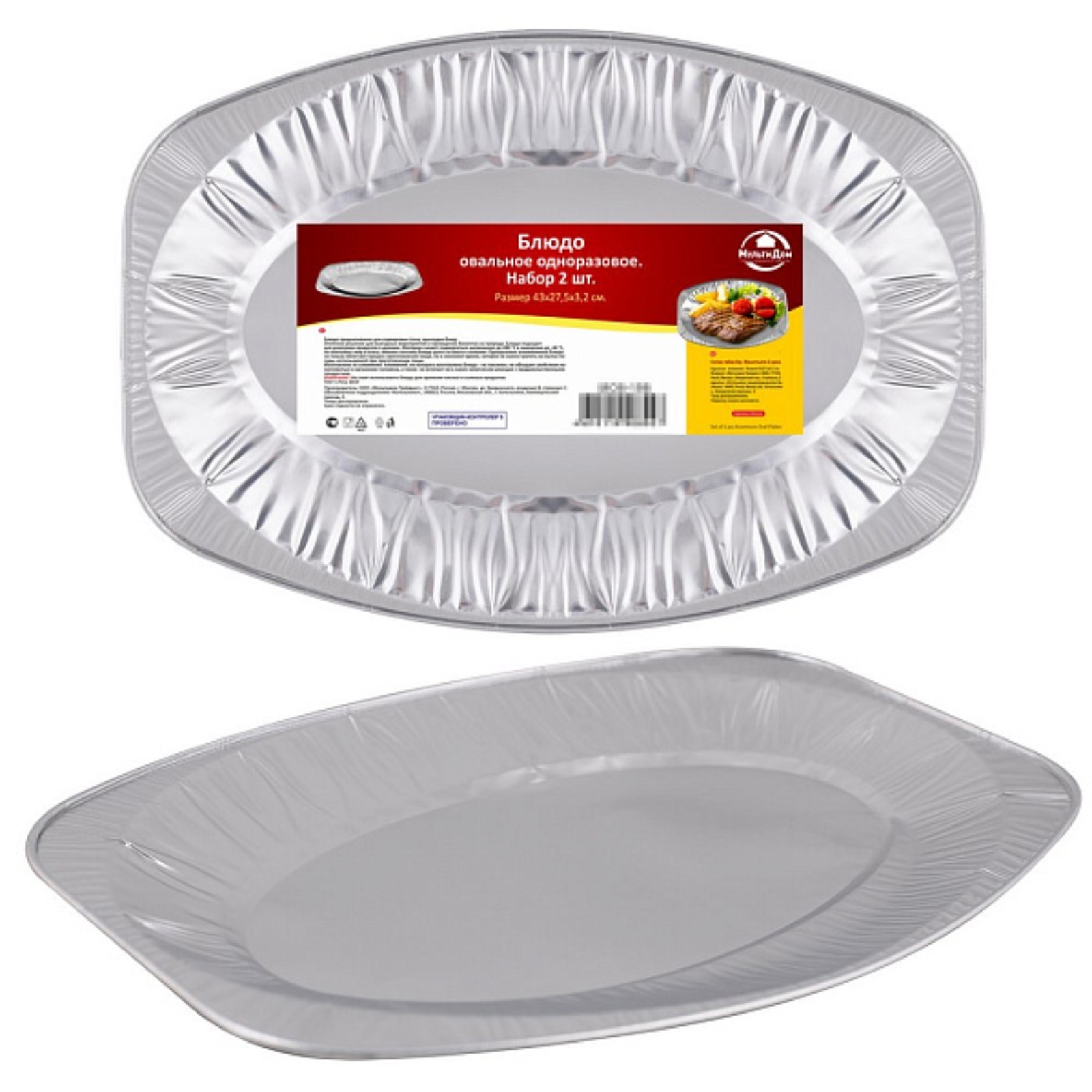 Блюдо овальное мультидом, одноразовое, фольга, размер 43х27.5х3.2 см, 2 шт