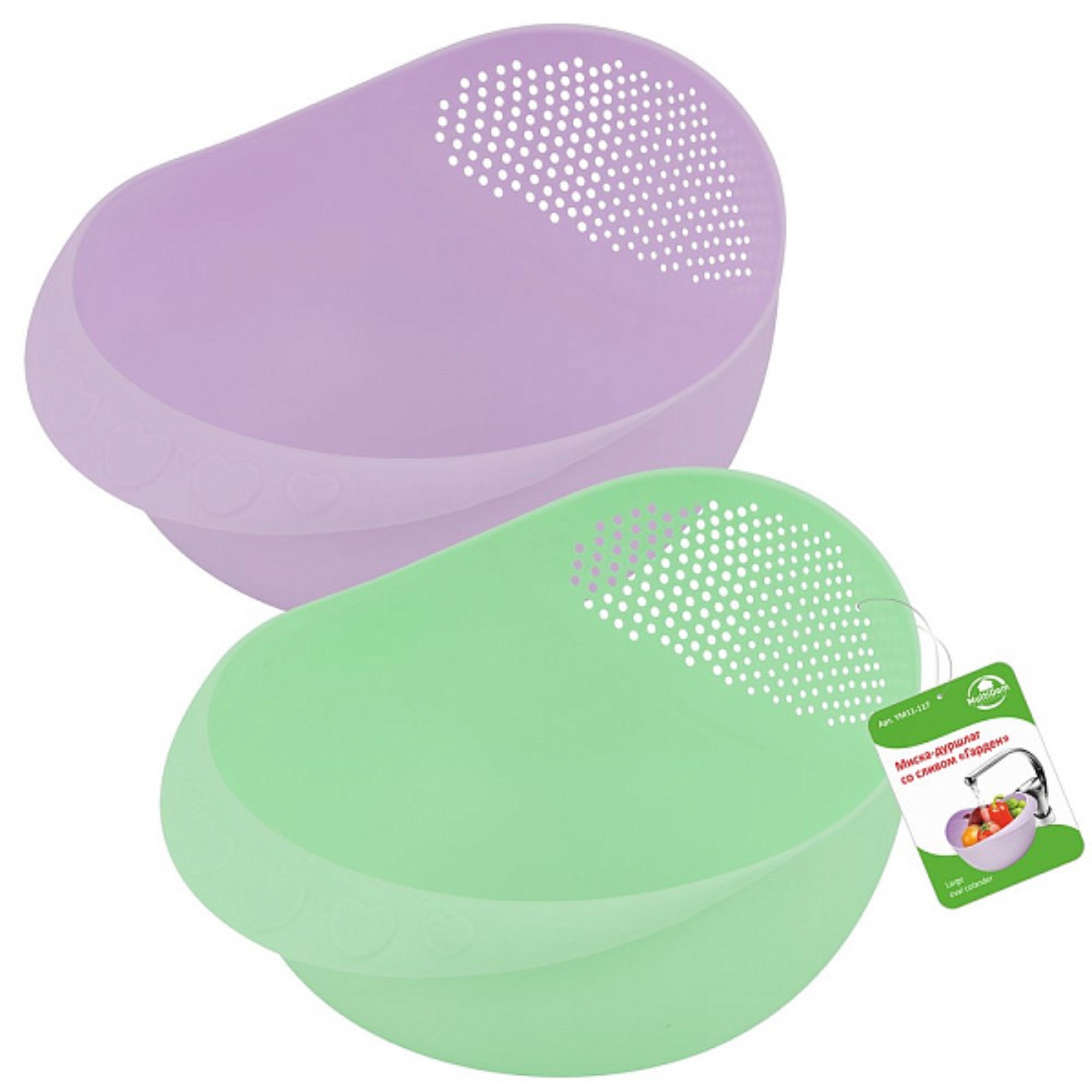 Миска-дуршлаг со сливом мультидом «гарден», пластик, размер 25х20х13 см, цвет микс