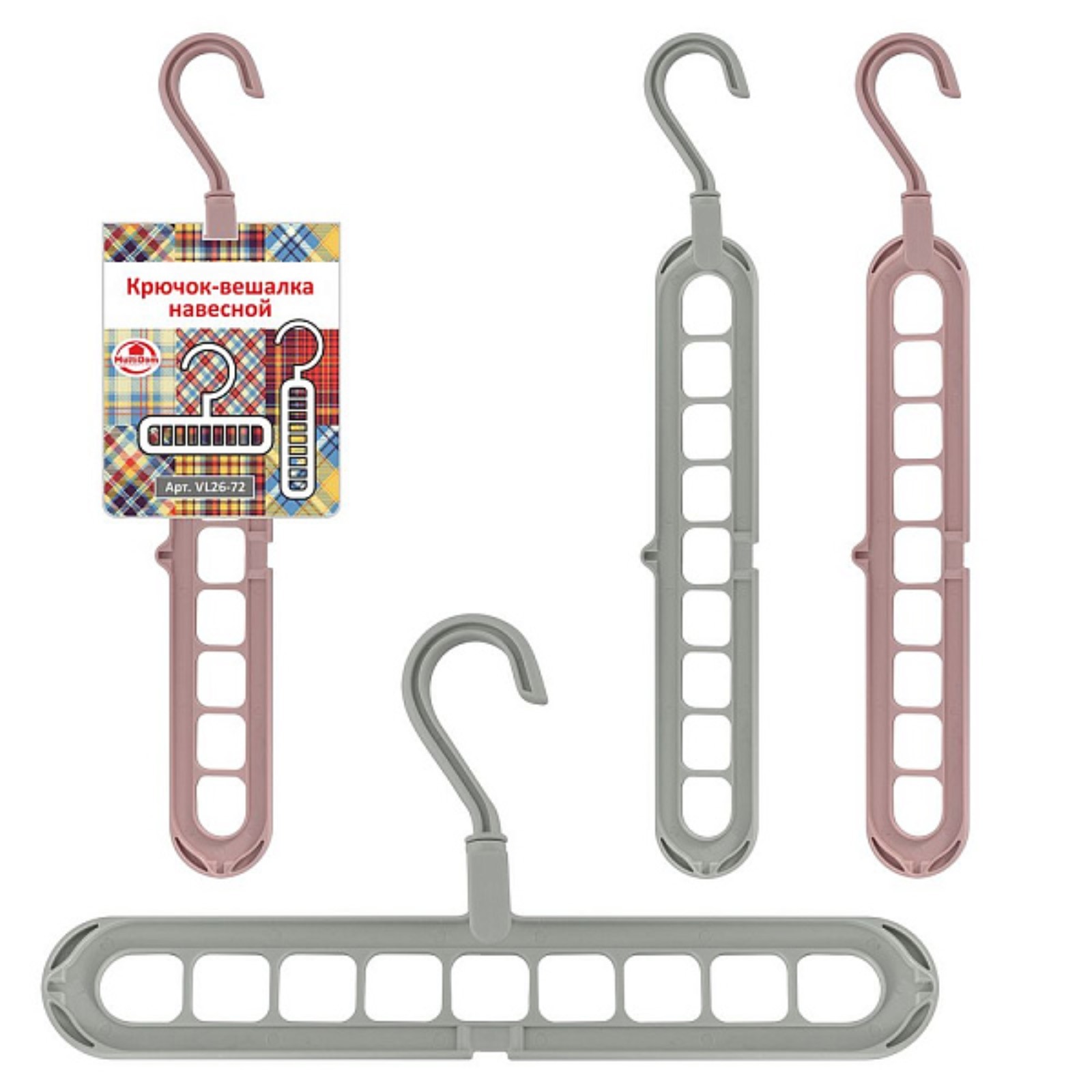 Крючок-вешалка навесной мультидом, 33.5х5 см, микс