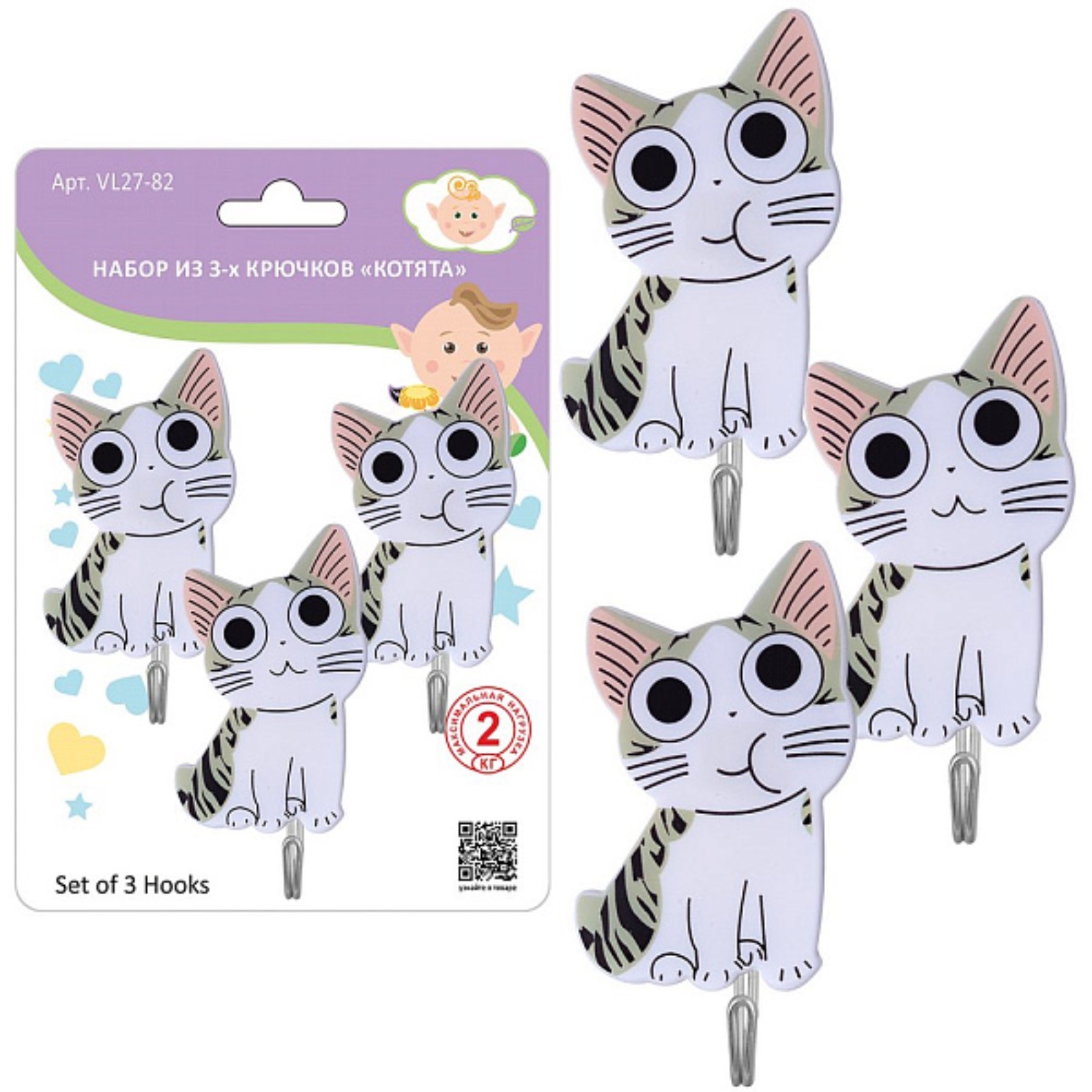 Набор крючков мультидом «котята», 7.5х2х3.5 см, 3 шт. Крючок – незаменимый предмет в каждом доме. На него можно повесить кухонные принадлежности, полотенце, принадлежности для ванной комнаты, лёгкие сумки, пакеты, одежду. Крючки организуют пространство, позволяют рационально разместить домашние принадлежности, чтобы те были всегда под рукой. Оригинальный декоративный элемент украсит ваш интерьер. С обратной стороны изделия расположена самоклеящаяся плёнка, которая обеспечивает надёжность крепления к любой гладкой поверхности (плитка, стекло, металл, полимерное или ламинированное покрытие). Поверхность крепления крючка предварительно следует очистить от загрязнений и обезжирить. Установка: снять защитную плёнку, плотно прижать основание крючка к поверхности и оставить без нагрузки на 6 часов. В использовании не превышать максимальную нагрузку указанную на этикетке - 2 кг. Перед первым применением протрите базовое основание и крючки влажной тканью. Изготовлено: пластмасса (полипропилен), стальная хромированная проволокаРазмер: 7. 5х2х3. 5 см Цвет: Серый В упаковке, шт.: 3 Количество крючков: 3 Материал: Пластик Материал: Металл Вид крепления: Клеевая основа  развернуть описание ▼