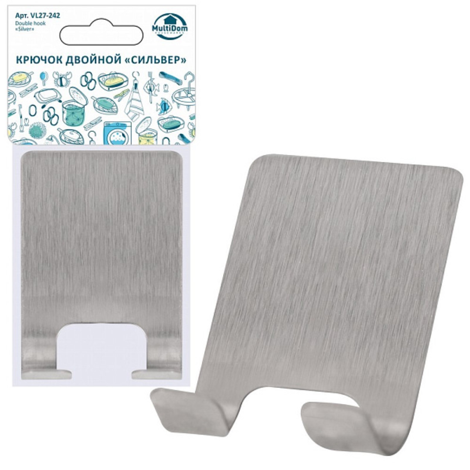Крючок двойной мультидом «сильвер», 4.5х6х3 см. Крючок двойной пригодится в любом доме — на него можно повесить кухонную мелочь, полотенца, лёгкие сумки, пакеты, одежду, принадлежности для ванной комнаты, в том числе бритвенный станок. Крючок позволяет рационально разместить домашние принадлежности, чтобы они были всегда под рукой. С обратной стороны изделия расположена самоклеящаяся плёнка, которая обеспечивает надёжность крепления к любой гладкой поверхности (плитка, стекло, зеркало, ламинированные панели и т. п. ). Не превышать максимальную нагрузку 2 кг. Изготовлено из коррозионностойкой (нержавеющей) сталиРазмер: 4. 5х6х3 см Цвет: Хромированный В упаковке, шт.: 1 Количество крючков: 2 Материал: Металл Вид крепления: Клеевая основа  развернуть описание ▼