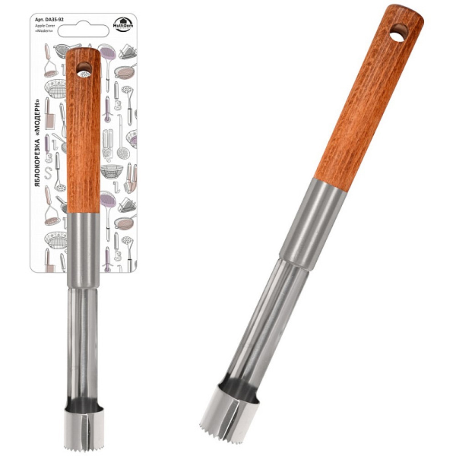 Рабочая часть яблокорезки выполнена из коррозионностойкой (нержавеющей) стали, ручка из дерева.