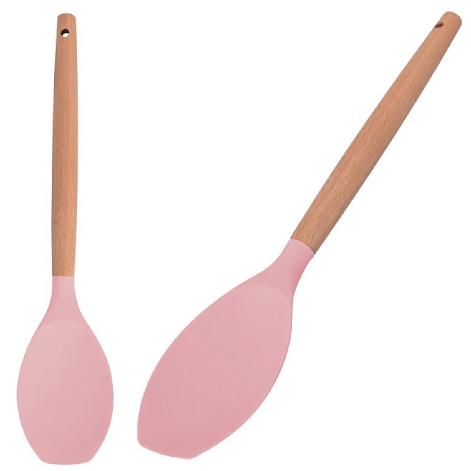 Ложка мультидом «бон-роз», длина 31 см. Рабочая часть выполнена из силикона, ручка из дерева. Предназначена для перемешивания готовящихся блюд (супов, овощных смесей, грибов, киселей, морсов, компотов, соусов, каш, пюре). Подходит для использования в различных кастрюлях, в том числе с антипригарным покрытием. Не повреждает поверхность посуды, а также не впитывает запахи и не влияет на вкус пищи, обеспечивая гигиеничность и качество приготавливаемых блюд. Ложка выдерживает температуру до 210°С. Для удобства хранения в деревянной ручке предусмотрено отверстие. Перед первым использованием и после каждого применения промыть в тёплой воде с жидким моющим средством, сполоснуть и просушить. Нельзя мыть в посудомоечной машине. Не рекомендуется мыть с абразивными моющими средствами и металлическими губками. В процессе использования может исчезнуть яркость цвета, но это не влияет на качество изделия. Общая длина 31 см. Цвет: Розовый Материал ручки: Дерево Материал: Силикон Материал: Дерево  развернуть описание ▼