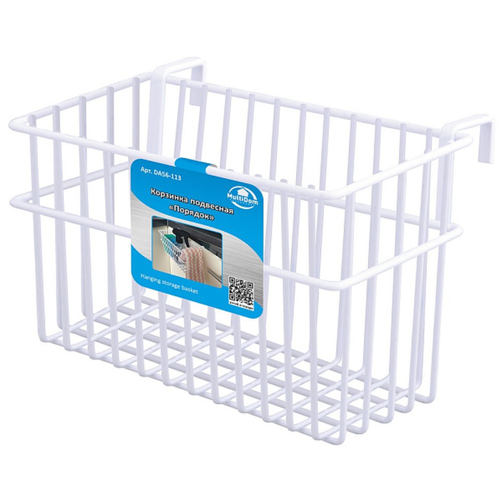 Корзина подвесная мультидом «порядок», 20х9.5х12.5 см. Корзина подвесная - отличный помощник ценителям порядка в доме. Навешивается на дверцу шкафа или тумбы, что позволит эффективно использовать пространство на кухне, необходимые мелочи всегда будут под рукой. Можно повесить корзинку как с наружной, так и с внутренней стороны мебели, что позволит скрыть необходимые мелочи от глаз. Корзину можно использовать для хранения специй и приправ, бутылочек с соусом и маслом, для хранения губок для мытья посуды, щёточек, пакетов, полотенец, прихваток, салфеток и других хозяйственных и кухонных принадлежностей. Изготовлено из металла с эмалевым покрытиемРазмер: 20х9. 5х12. 5 смРассчитана на толщину дверцы до 2. 5 смМаксимальная нагрузка не должна превышать 2 кгПеред первым использованием протереть влажной тканью и просушить. Цвет: Белый Форма: Прямоугольная Ширина, см: 20 Глубина, см: 9.5 Высота, см: 12.5 Крышка: Нет Материал: Сталь Основной материал: Металл Форма: Прямоугольник  развернуть описание ▼