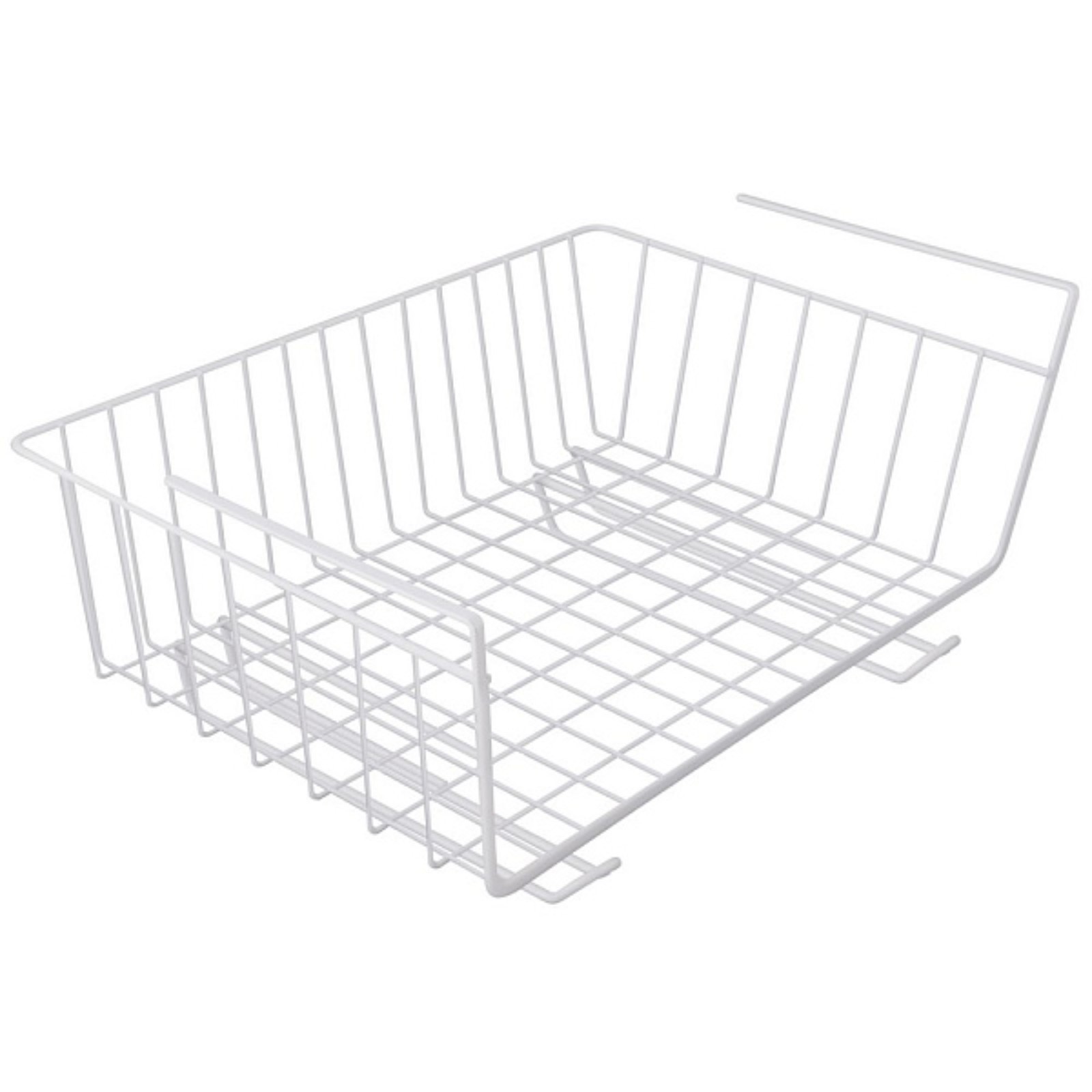 Изготовлено из металла с эмалевым покрытиемРазмеры: корзина - 27х24х18 см, длина держателей – 19 смРассчитана на толщину полки до 3, 5 смМаксимальная нагрузка не должна превышать 2. 5 кгПеред первым использованием протереть влажной тканью и просушить. Не рекомендуется мыть в посудомоечной машине.