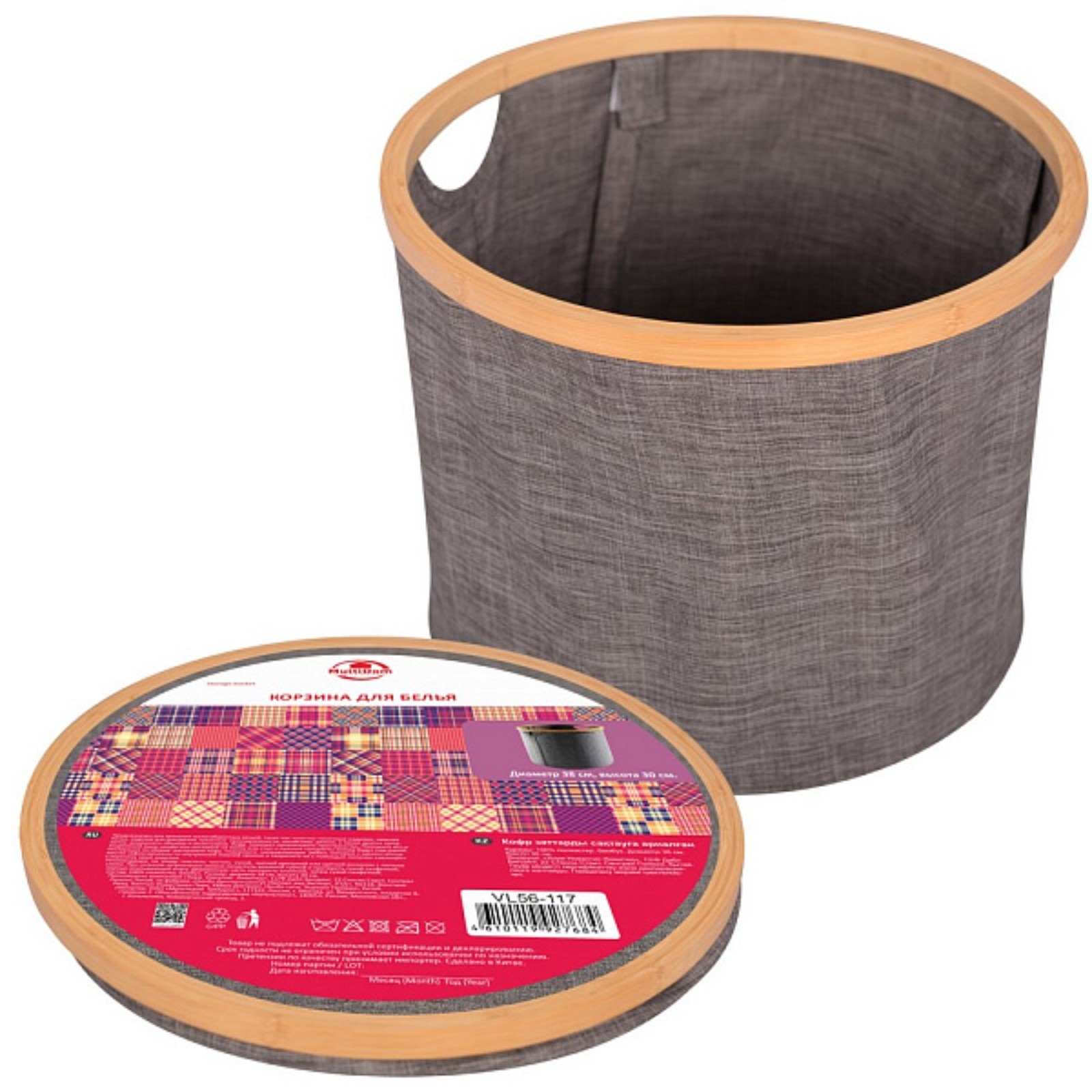 Кофр для хранения вещей мультидом, d=38 см. Предназначен для хранения малогабаритных вещей, таких как чулочно-носочные изделия, нижнее белье, изделия для рукоделия, кухонные принадлежности, косметика, ремни, а также других предметов домашнего обихода и аксессуаров. Кофр поможет организовать пространство. Положите его в выдвижной ящик шкафа или поставьте на полку или стол и нужные предметы всегда будут под рукой. Рекомендации по уходу: текстиль чистить сухой, мягкой щеточкой или щеткой-роликом с липким слоем. При сильном загрязнении можно почистить влажной губкой и протереть сухой салфеткой, хорошо впитывающей влагу. Деревянную часть протереть влажной, затем сухой салфеткой. Состав: 100% полиэстер, бамбукРазмер: диаметр 38 см, высота 30 см Цвет: Серый Форма: Круглая Ширина, см: 38 Высота, см: 38 Глубина, см: 38 Крышка: Нет Материал: Текстиль Основной материал: Текстиль Форма: Круг, шар, цилиндр  развернуть описание ▼