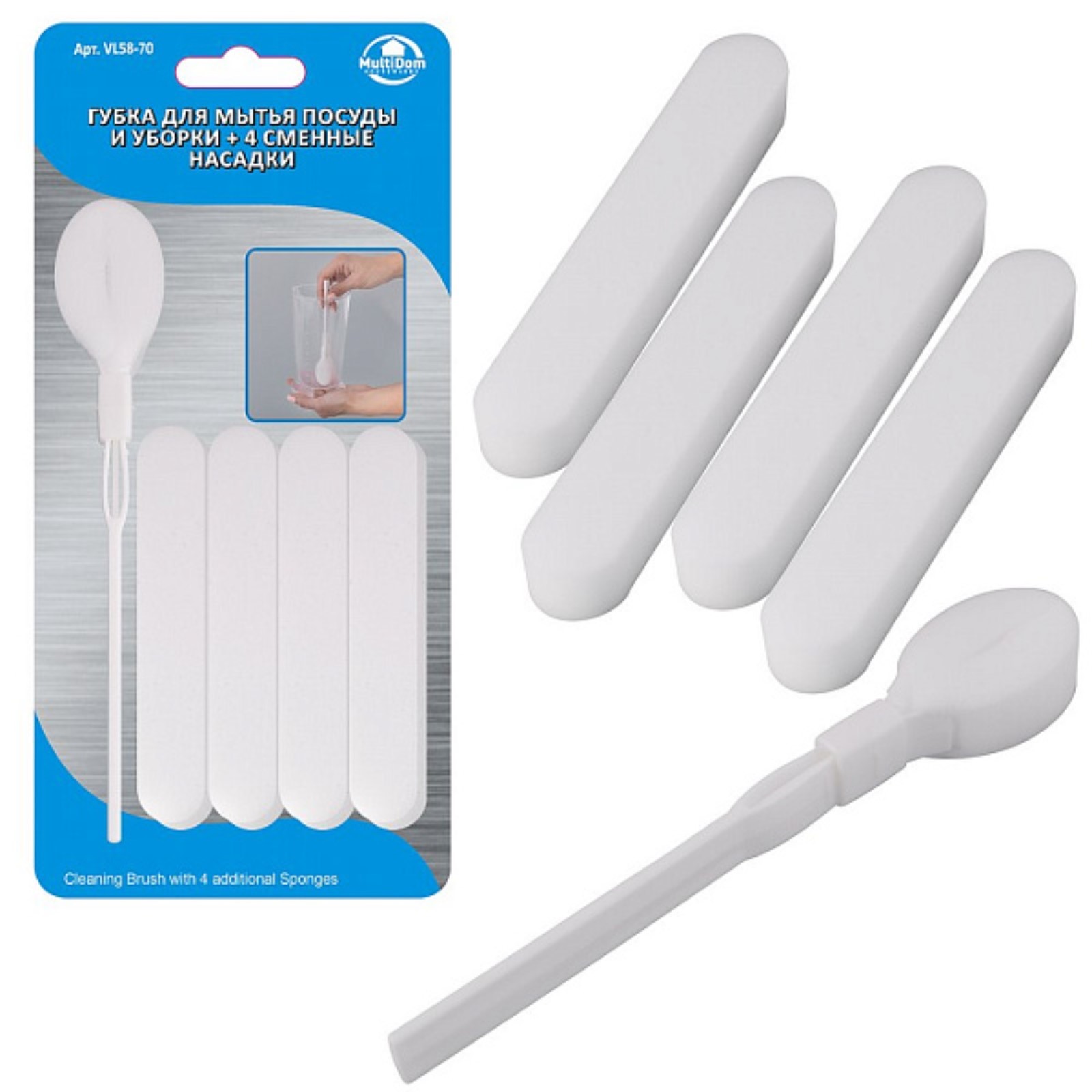 Губка для мытья посуды и уборки мультидом, 4 сменные насадки