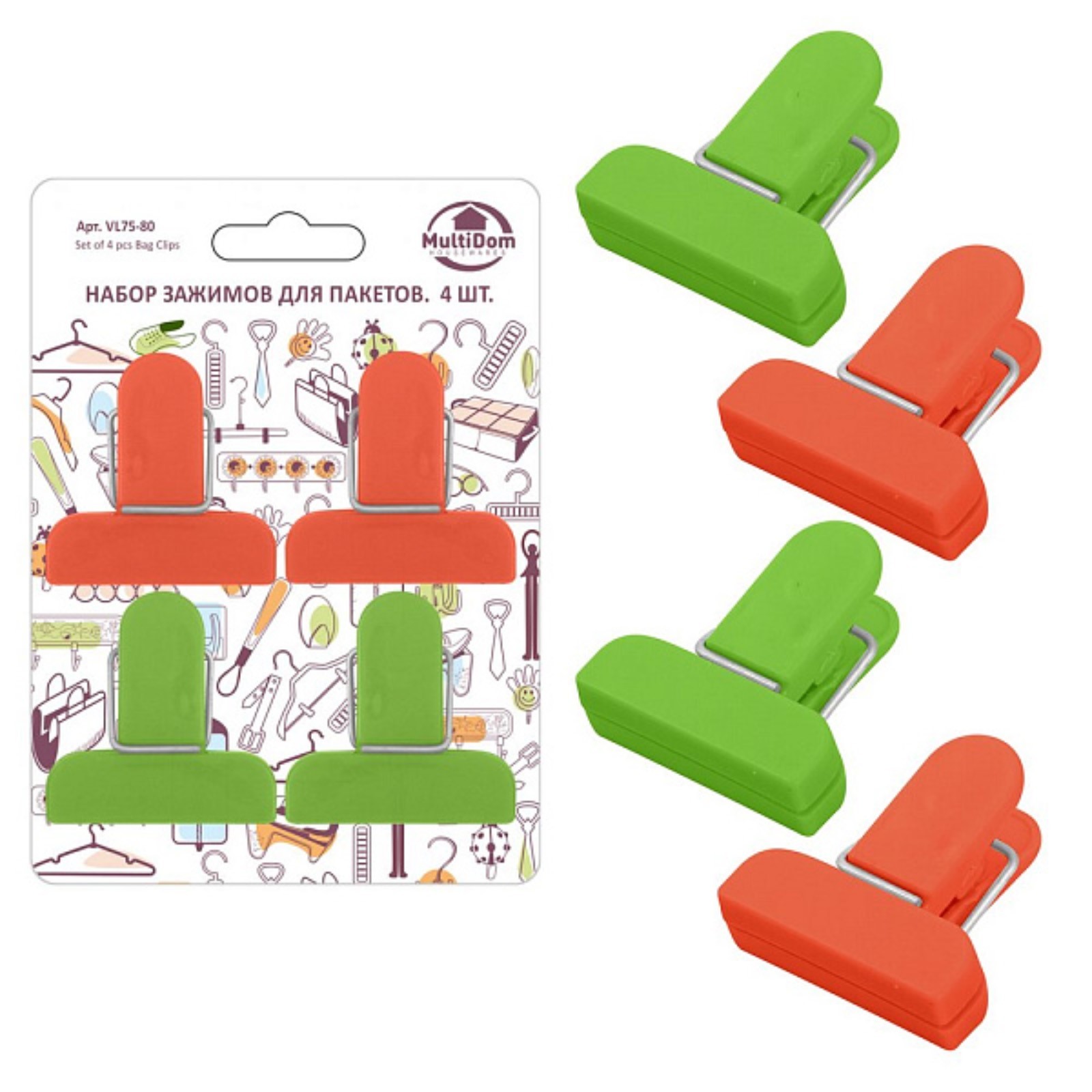 Набор зажимов для пакетов мультидом, 3.7х4 см, 4 шт
