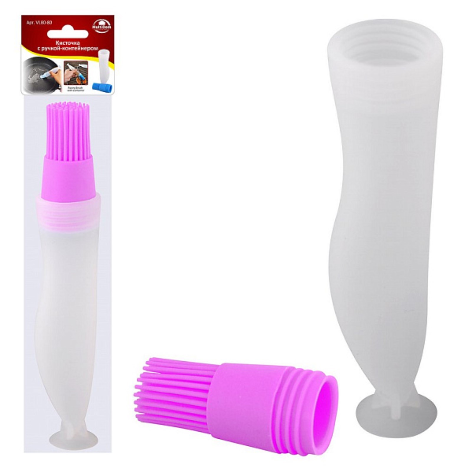 Кисточка с ручкой-контейнером мультидом, силикон, 40 мл. Кисточка выполнена из силикона. Предназначена для смазывания форм для запекания, противней, сковородок растительным маслом. Удобство ручки-контейнера неоспоримо: заполнив ручку растительным маслом – равномерно нанесете его на дно посуды перед приготовлением или выпечкой, заполнив ручку жидким маринадом или соусом, можно добиться идеального пропитывания без усилий. Контейнер имеет мерную шкалу. азмер 3. 2х17. 5 см. Форма: Фигурная Материал: Силикон Вид: Кисти Форма: Фигурная  развернуть описание ▼