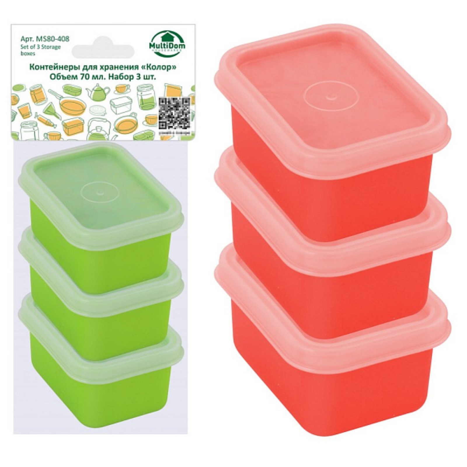 Контейнеры для хранения мультидом «колор», пластик, 70 мл, 3 шт, цвет микс
