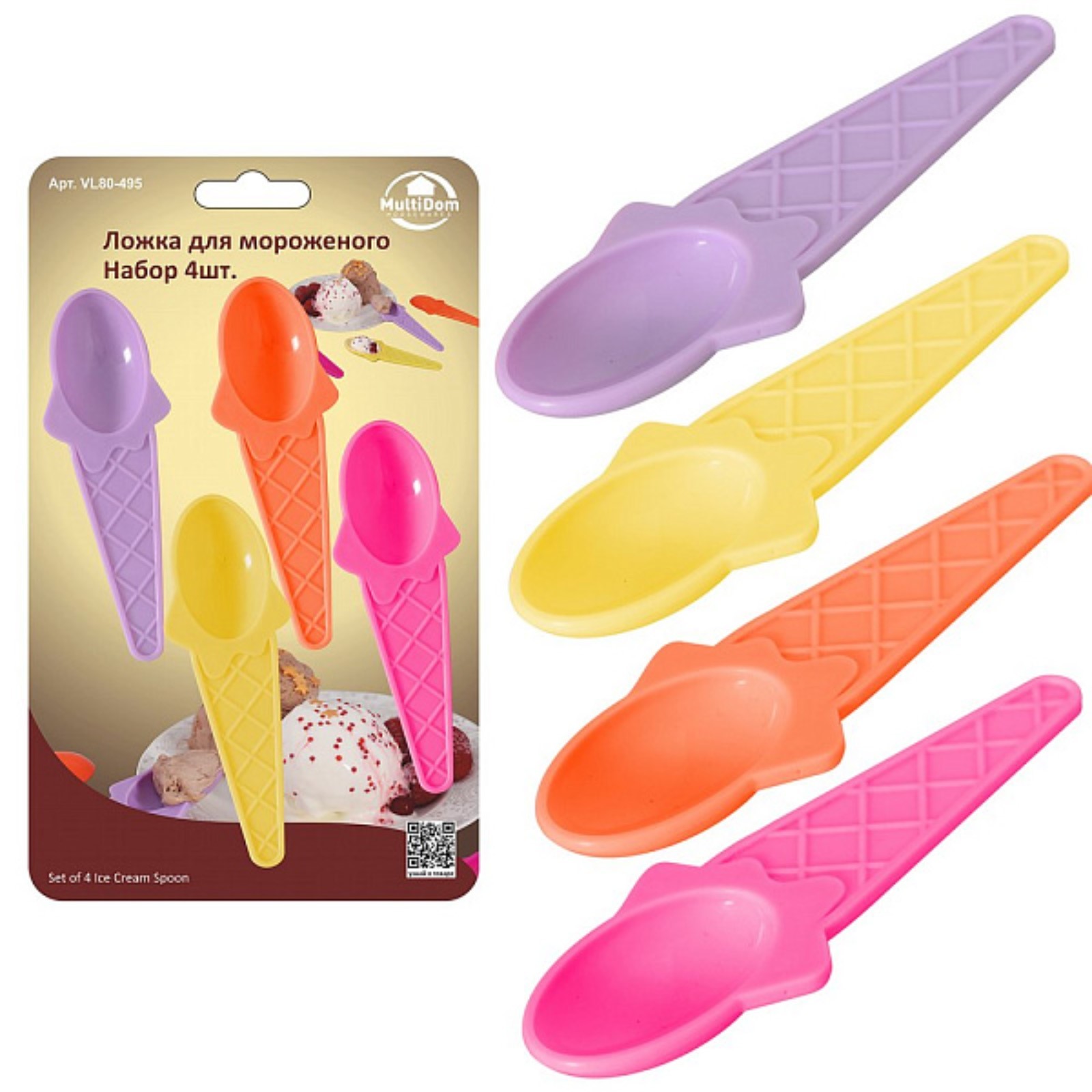 Ложка для мороженого мультидом, пластик, длина 12 см, 4 шт.