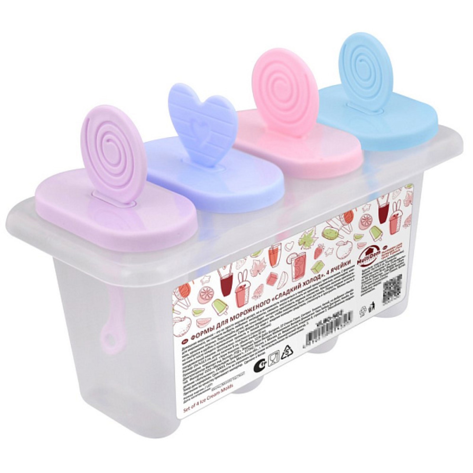 Формы для мороженого мультидом «сладкий холод», 4 ячейки, пластик. Форма выполнена из пластмассы (полипропилен). Крышки-палочки оригинально смотрятся и удобны в использовании. Сама форма продумана так, чтобы мороженое было легко доставать. Перед первым и после каждого применения, промыть в тёплой воде, можно с жидким моющим средством, сполоснуть проточной водой и просушить. Можно мыть в посудомоечной машине. Размер 15х7х10. 5 см, длина палочки 8 см, объём ячейки 50 мл. Цвет: Прозрачный Форма: Прямоугольная Количество ячеек: 4 Материал: Полипропилен Тематика: Геометрические фигуры Можно мыть в посудомоечной машине: Нет Форма: Прямоугольник  развернуть описание ▼
