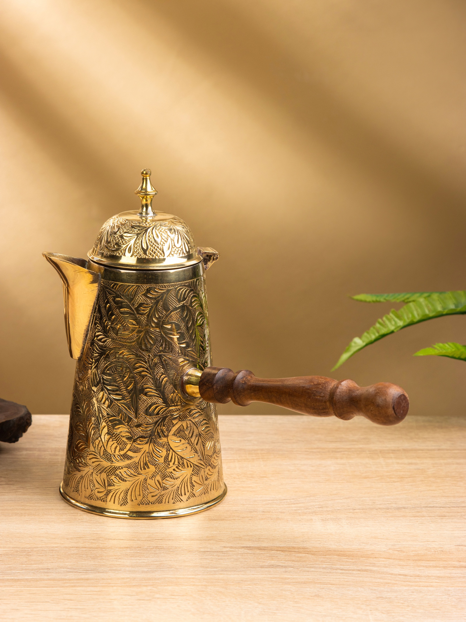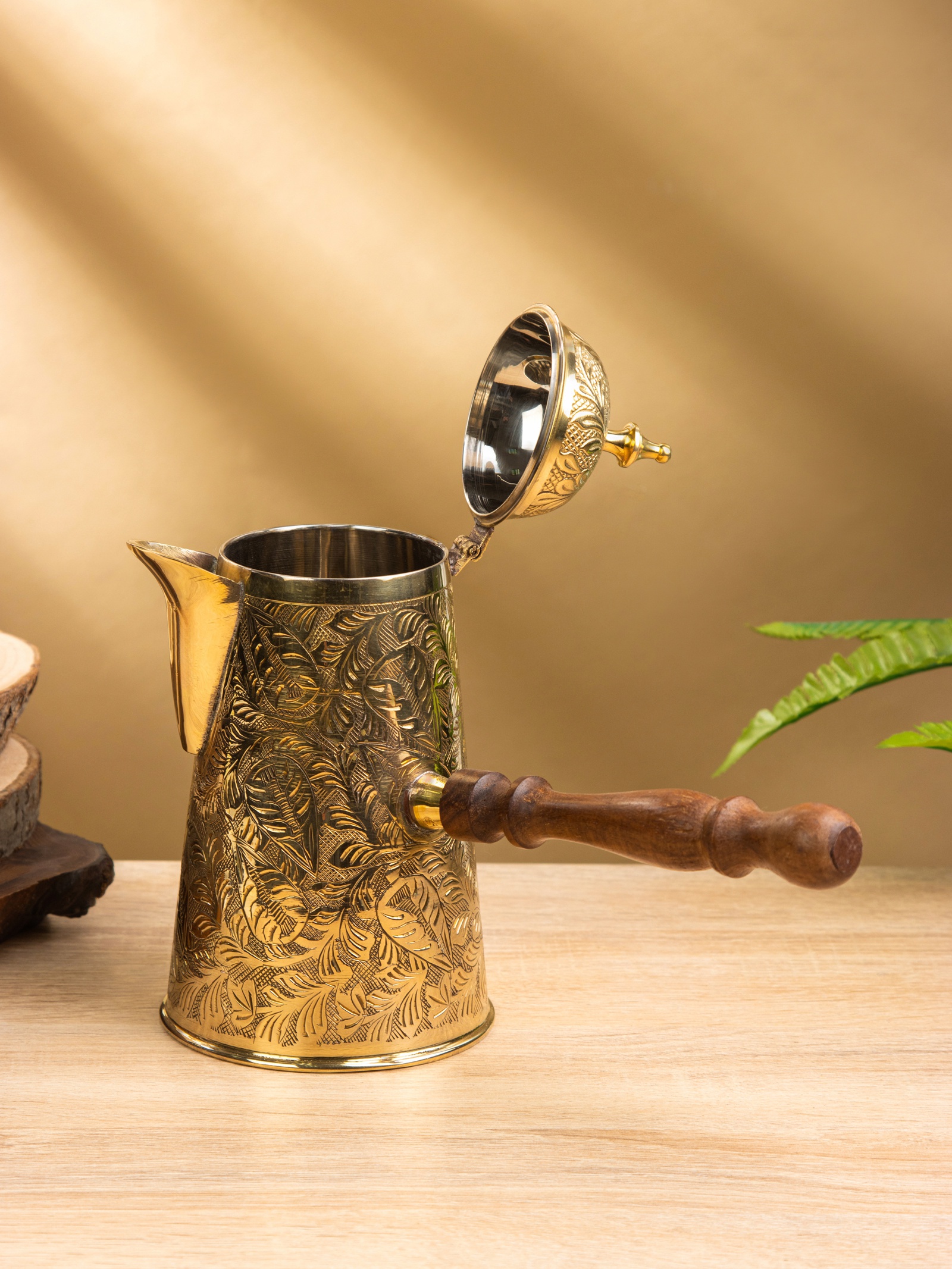 Турка «серебряные узоры», 650 мл, латунь, с крышкой и деревянной ручкой