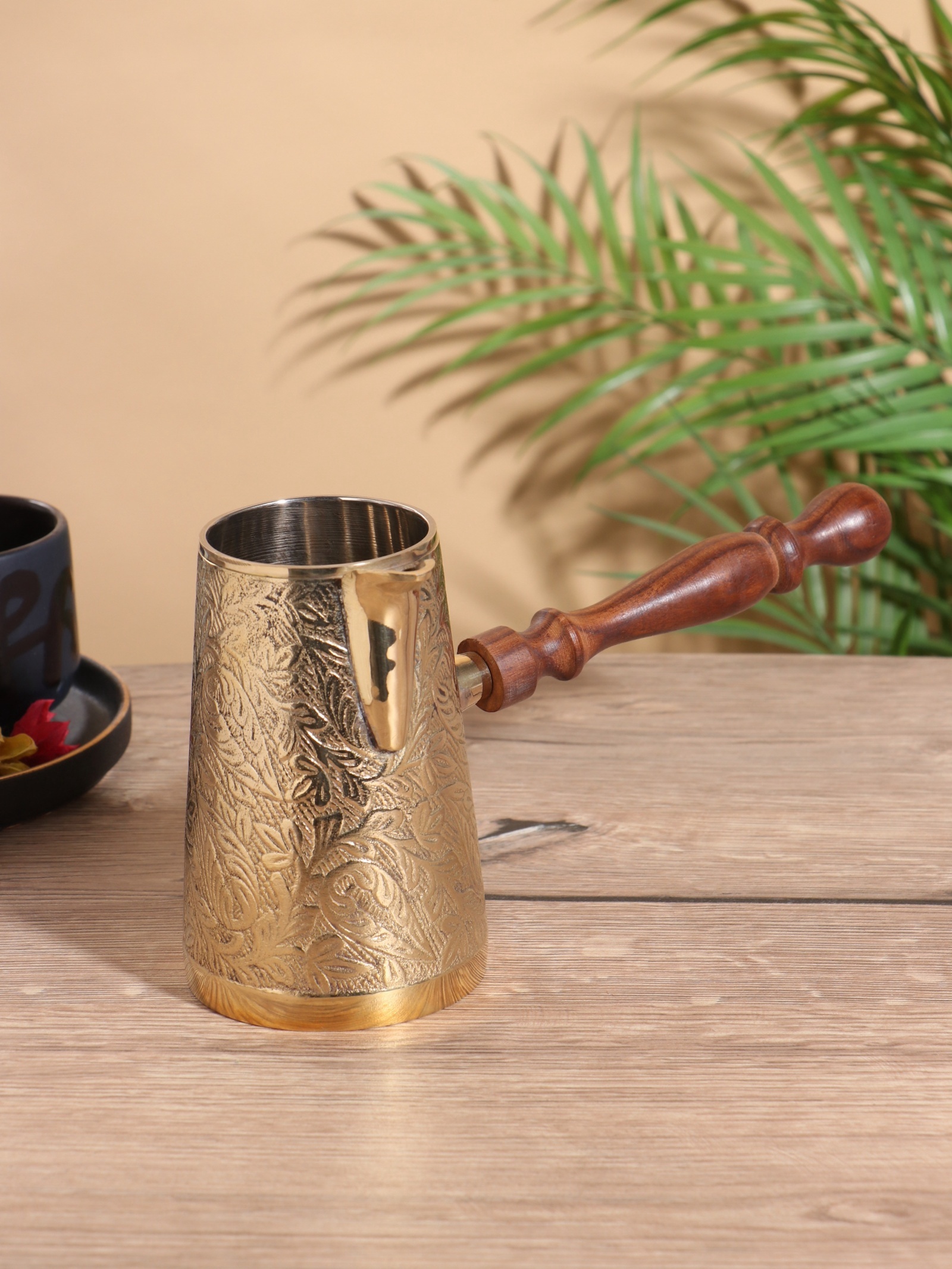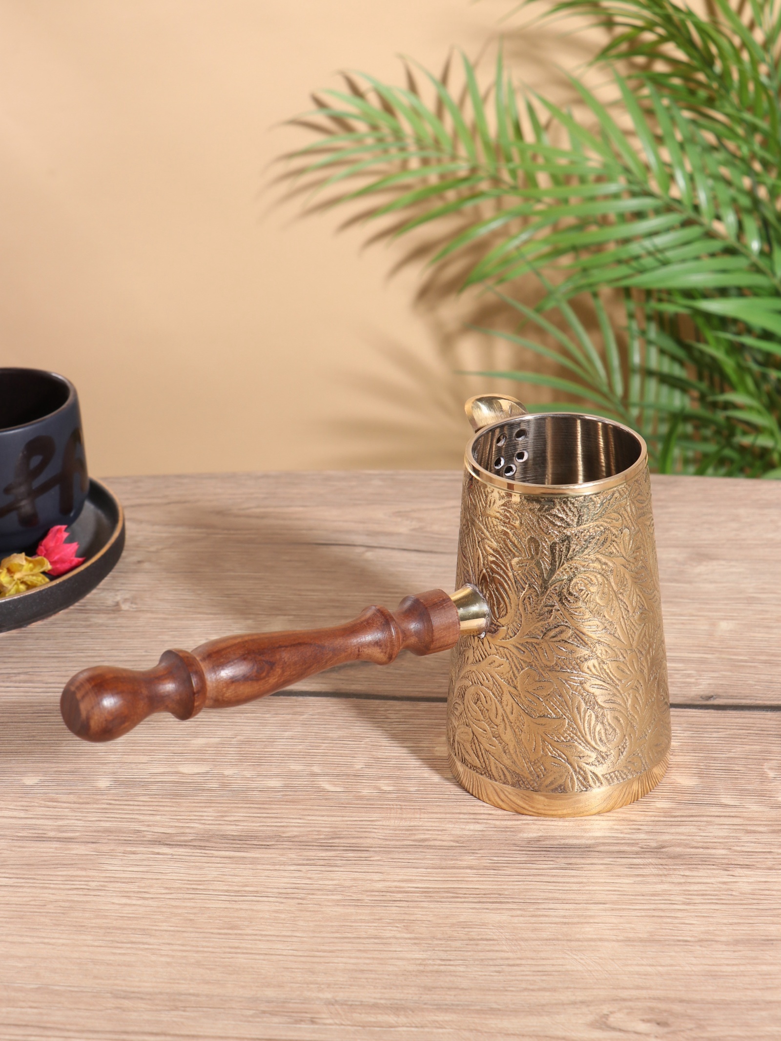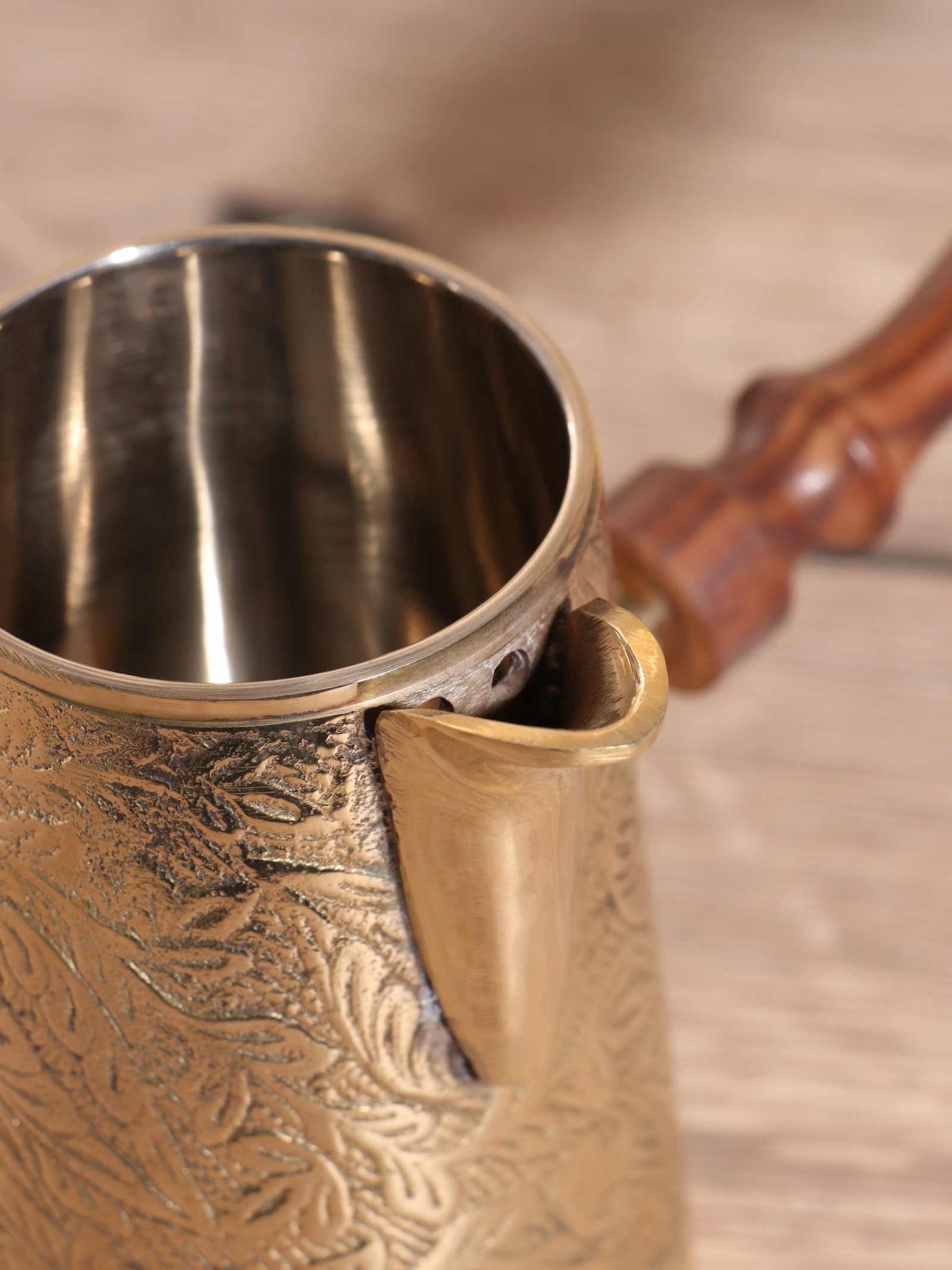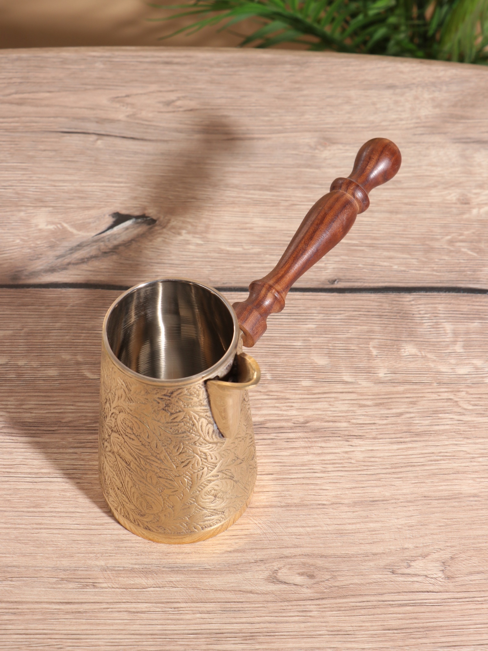 Турка «золотые узоры», 450 мл, латунь, с деревянной ручкой