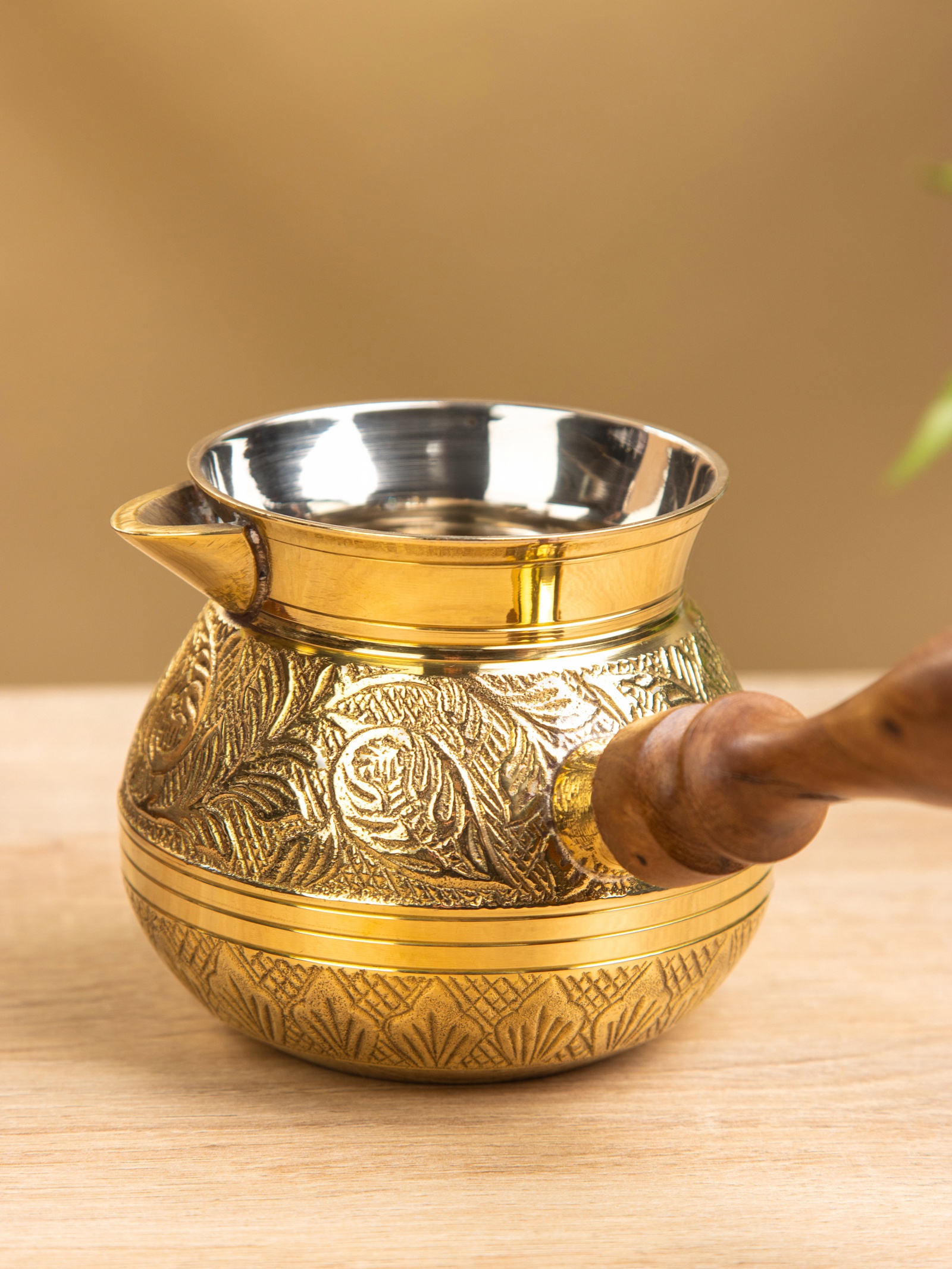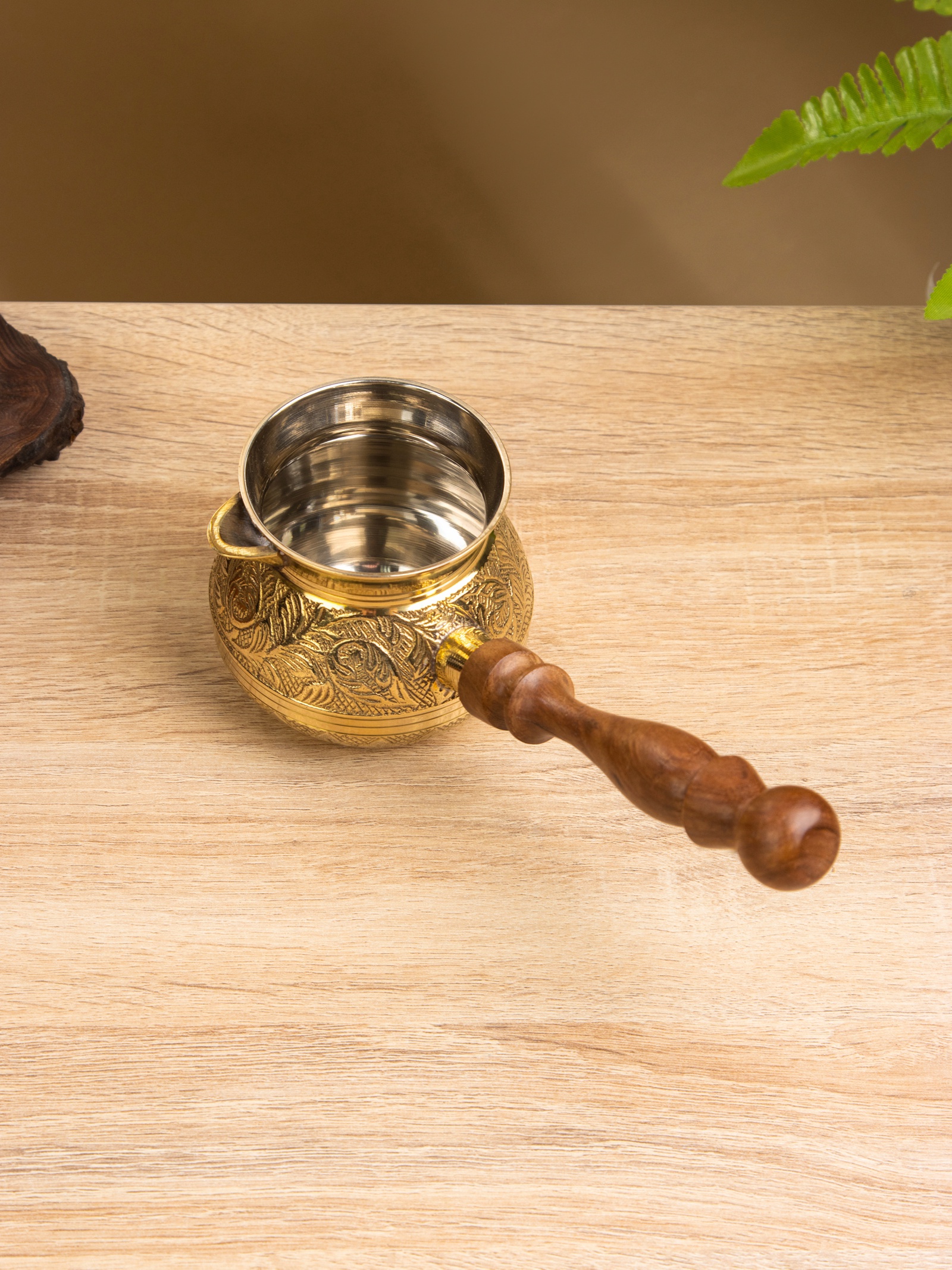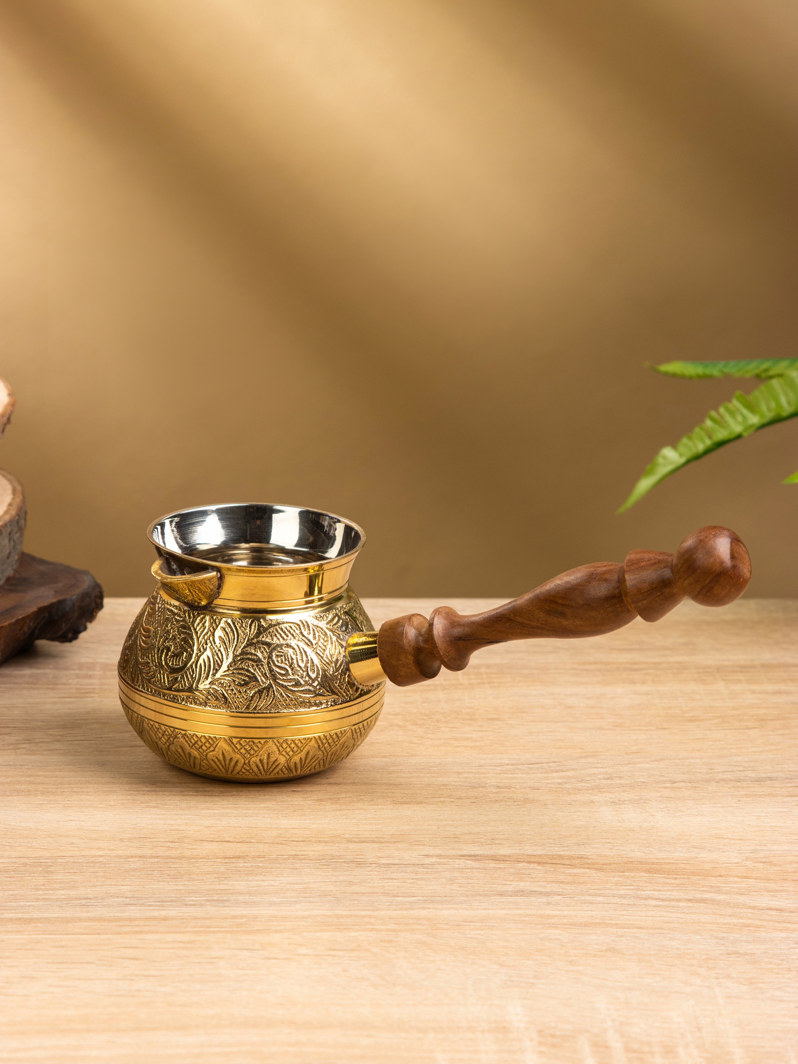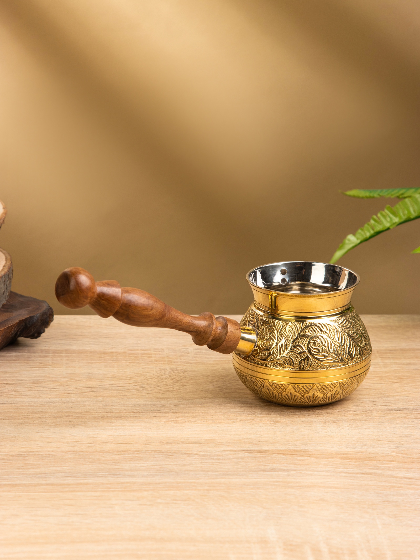 Турка «золотые узоры», латунь, с деревянной ручкой