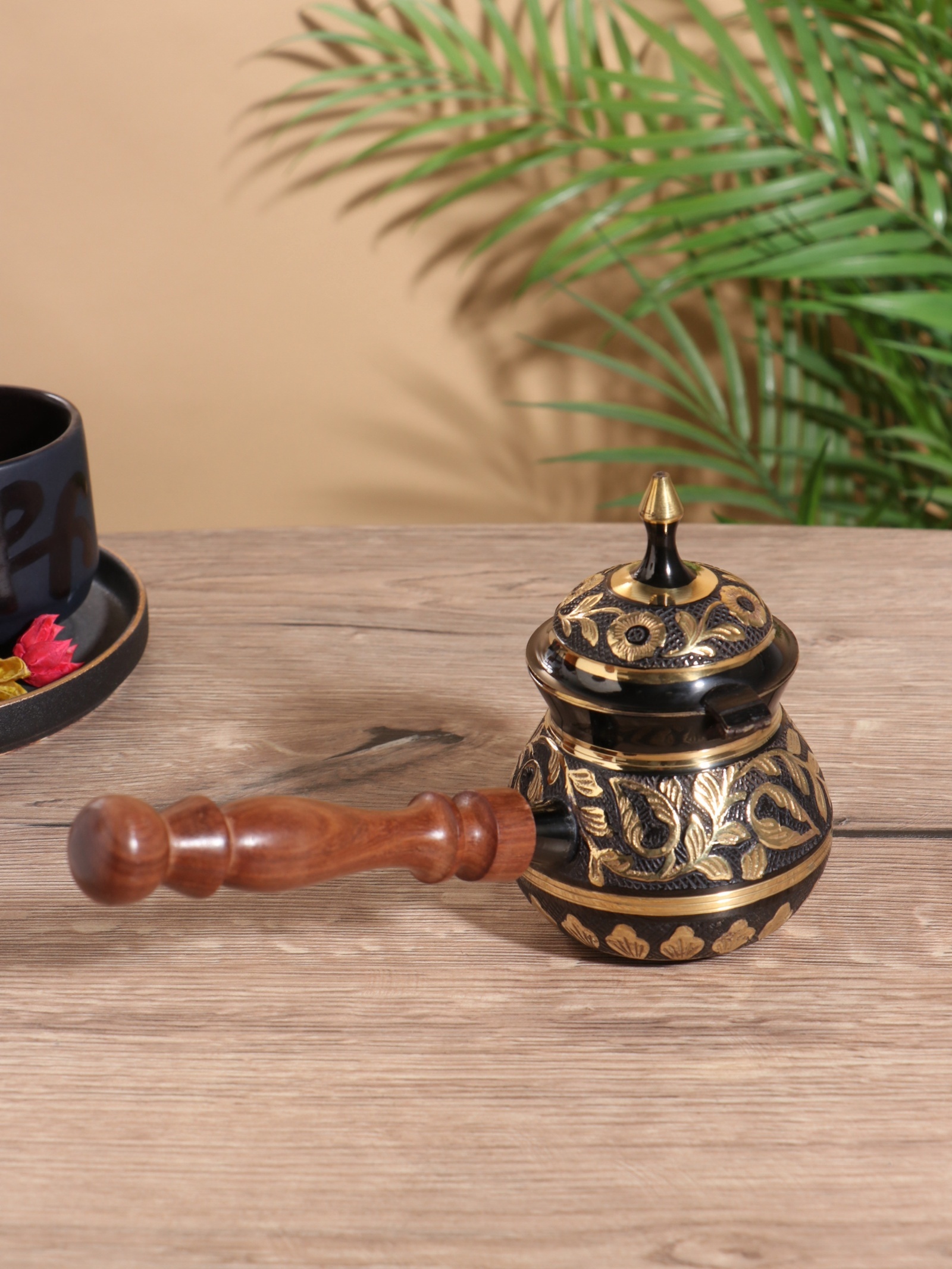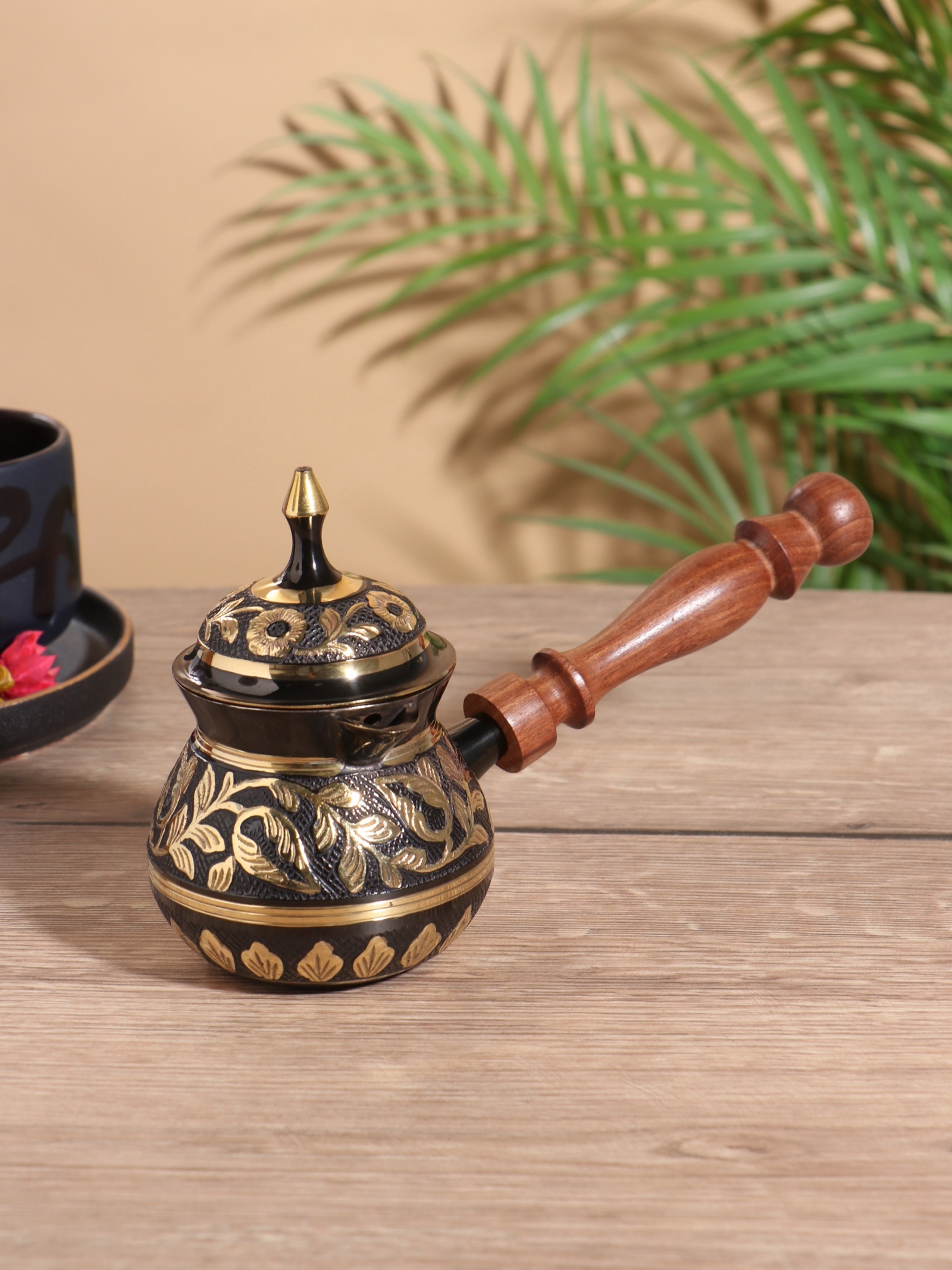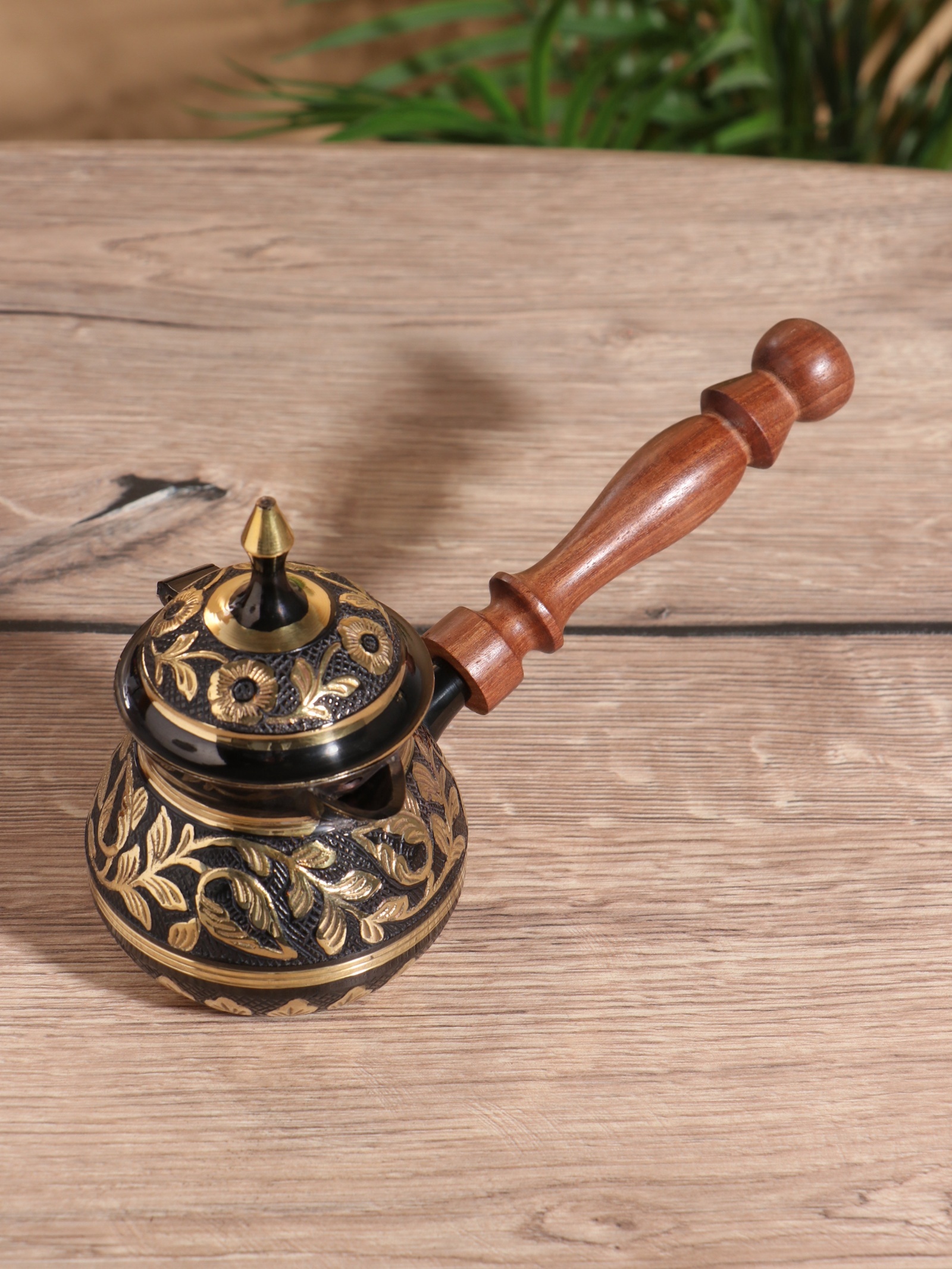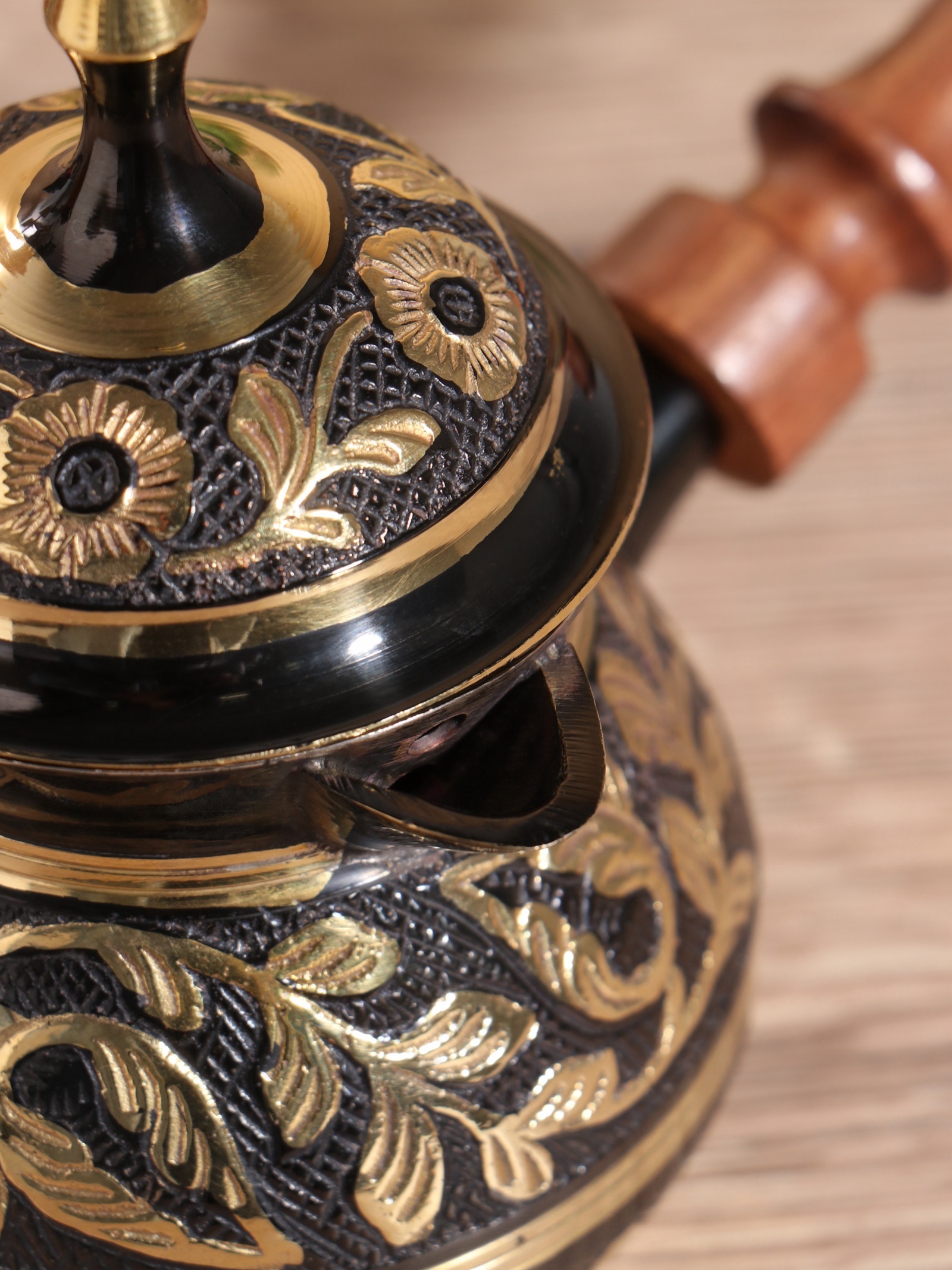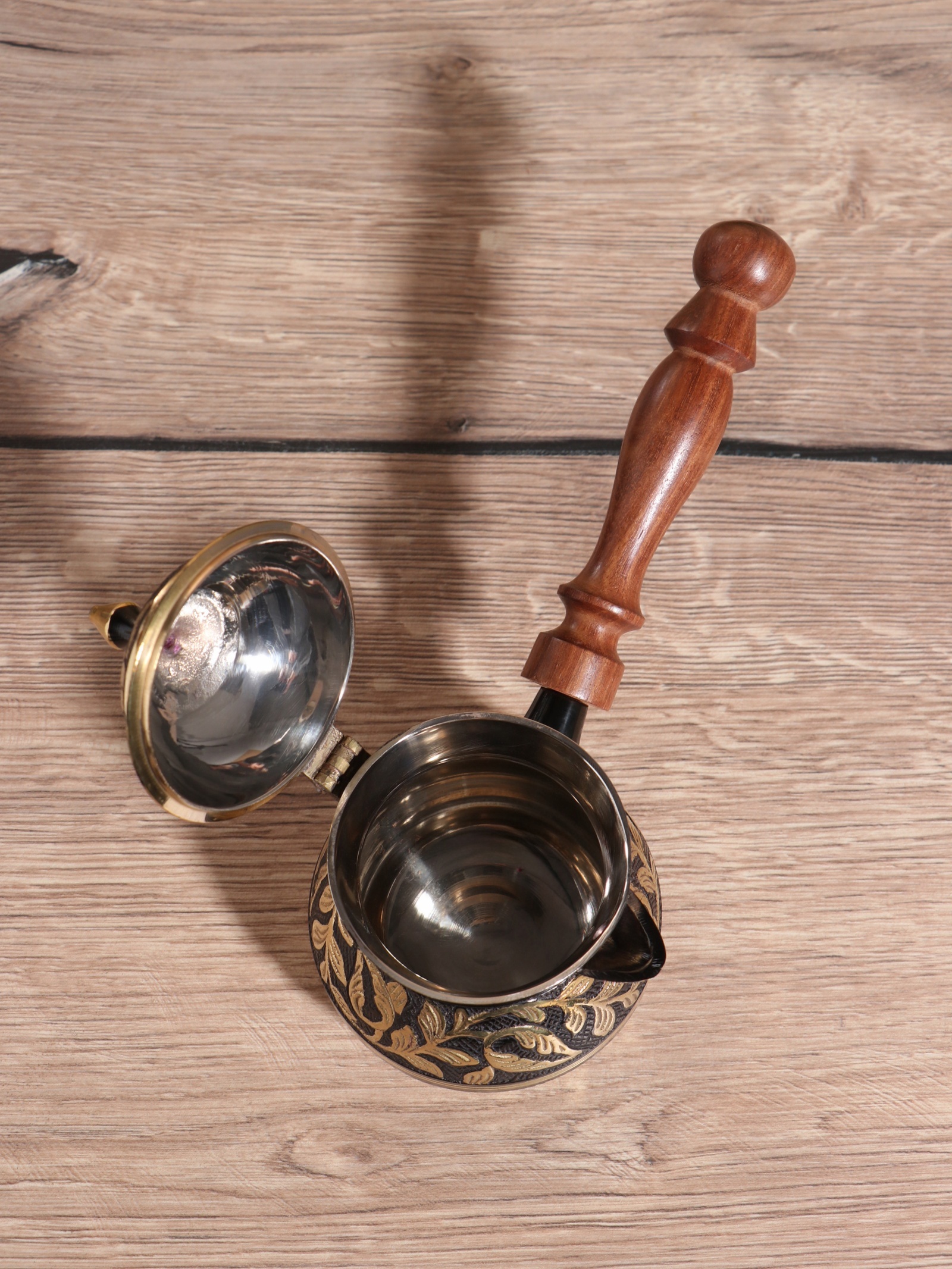 Турка «чёрное золото», 250 мл, латунь, с крышкой и деревянной ручкой