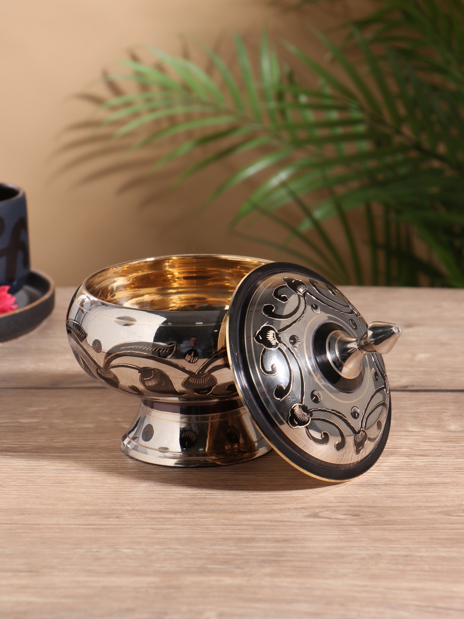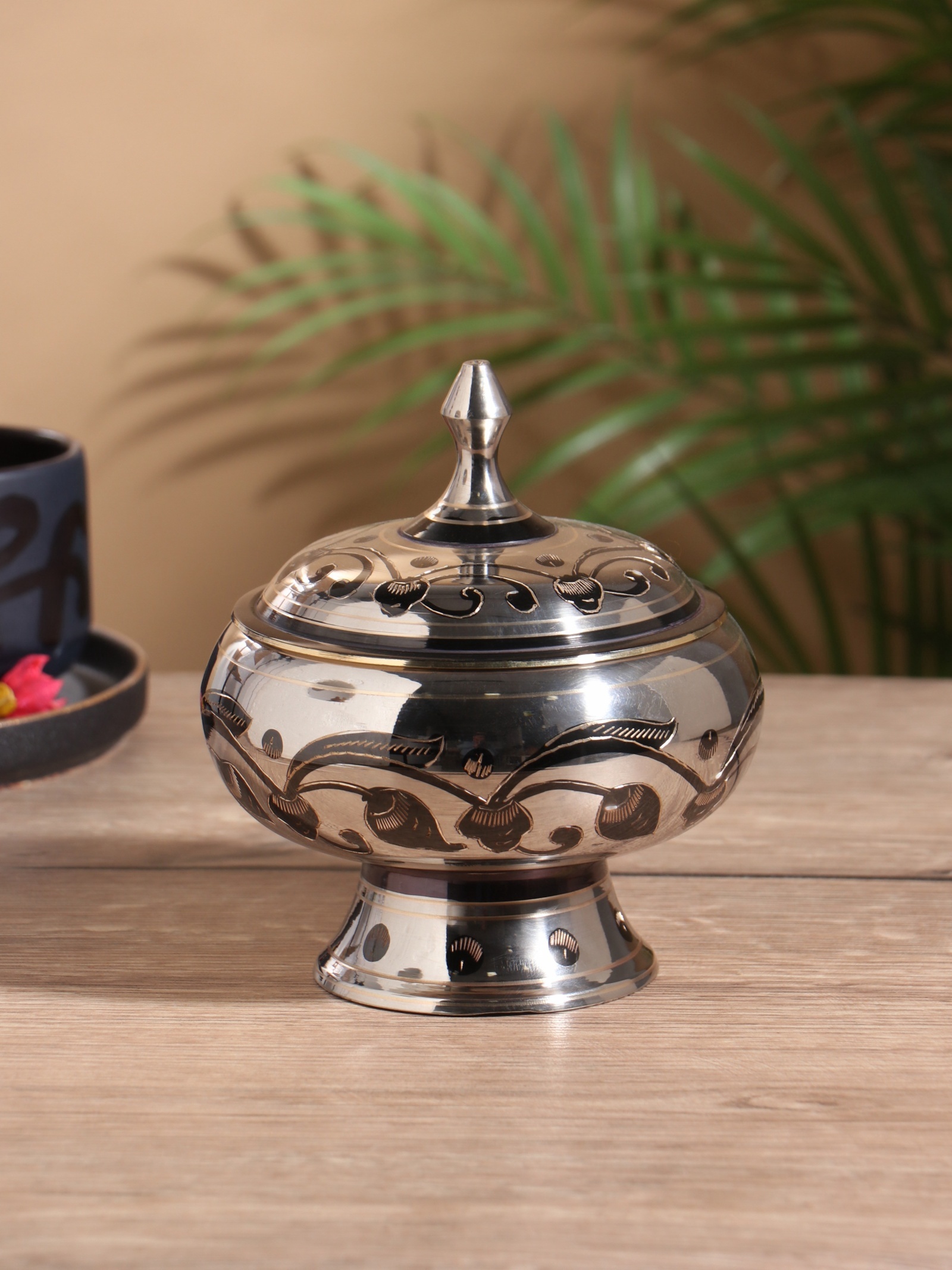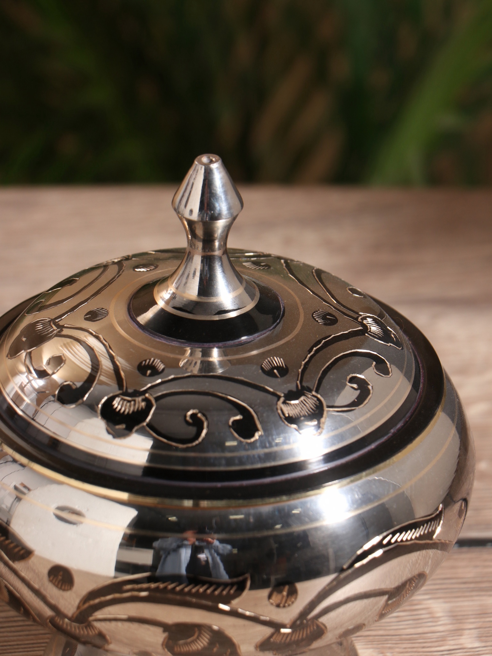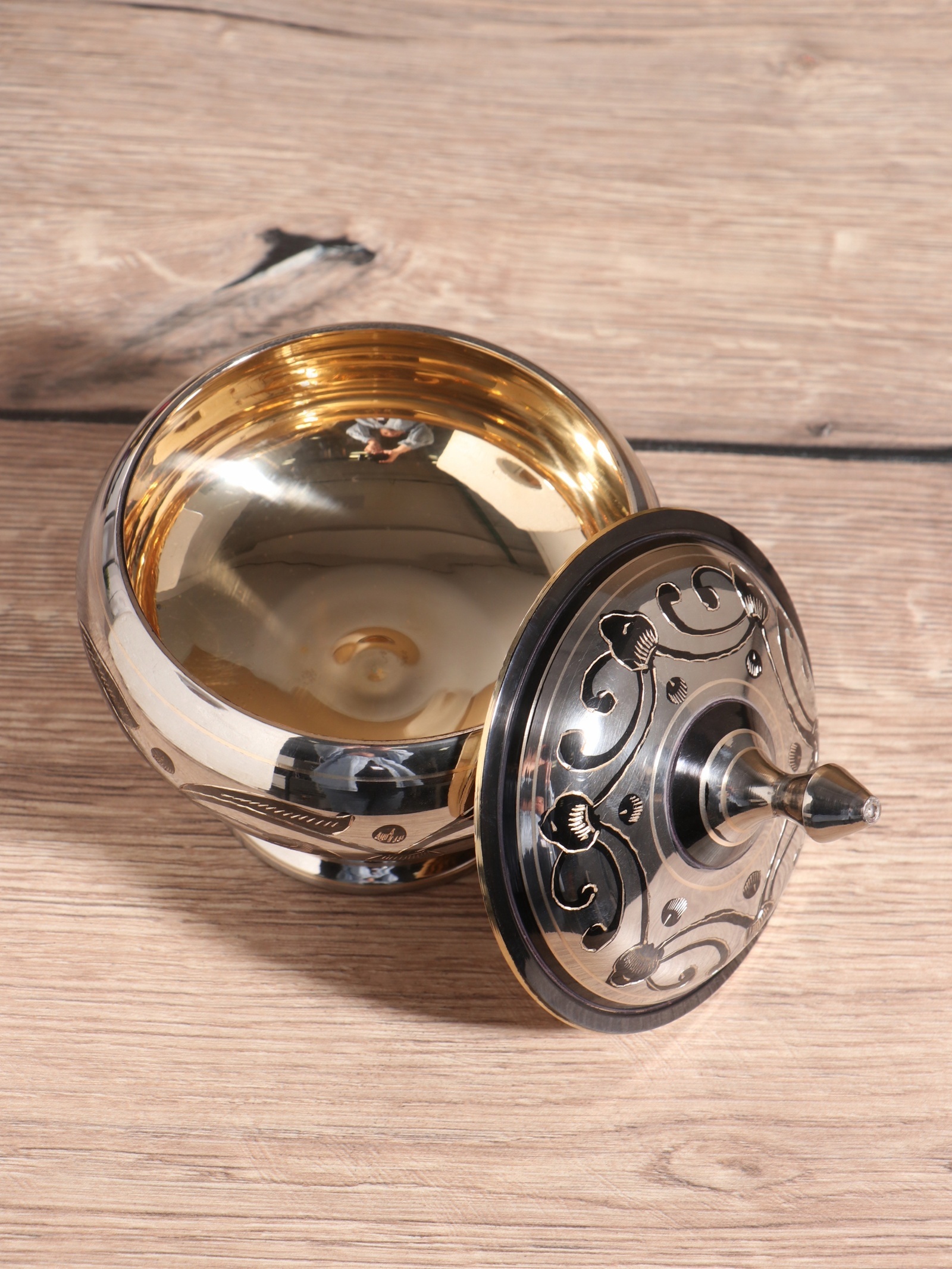 Сахарница «серебряная с чёрными узорами», латунь, 13x13x15 см