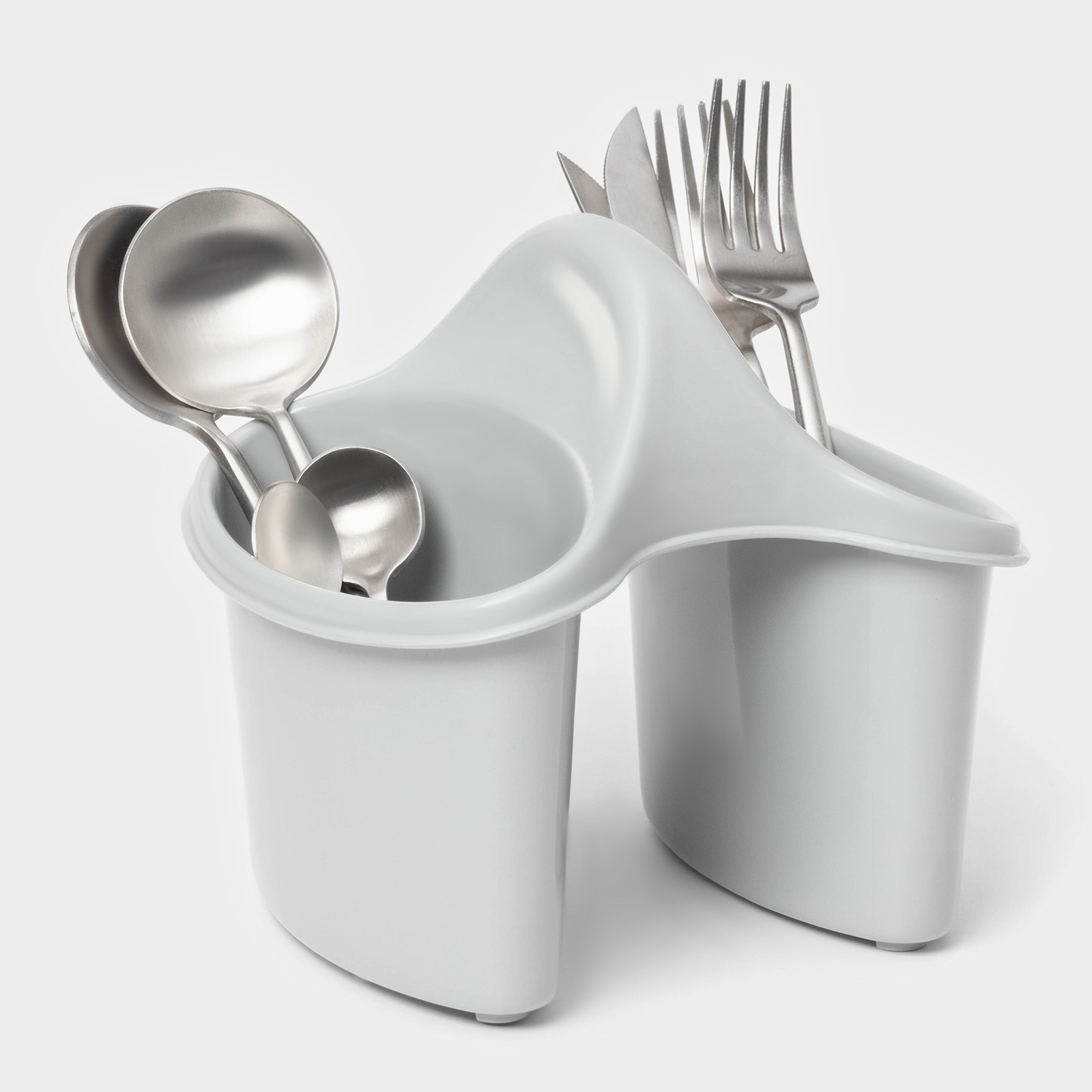 Сушилка для столовых приборов, 2 отделения, 17x15,2x16 см, цвет серый. Эта сушилка представляет собой удобный и функциональный органайзер, состоящий из двух отсеков с ручкой для переноски. Она идеально подходит для сушки и хранения столовых приборов, обеспечивая их гигиеничное и аккуратное хранение. Благодаря своей прочной конструкции и стильному дизайну, этот органайзер станет отличным дополнением для вашей кухни и поможет поддерживать порядок. Цвет: Серый Материал: Пластик С поддоном: Нет  развернуть описание ▼