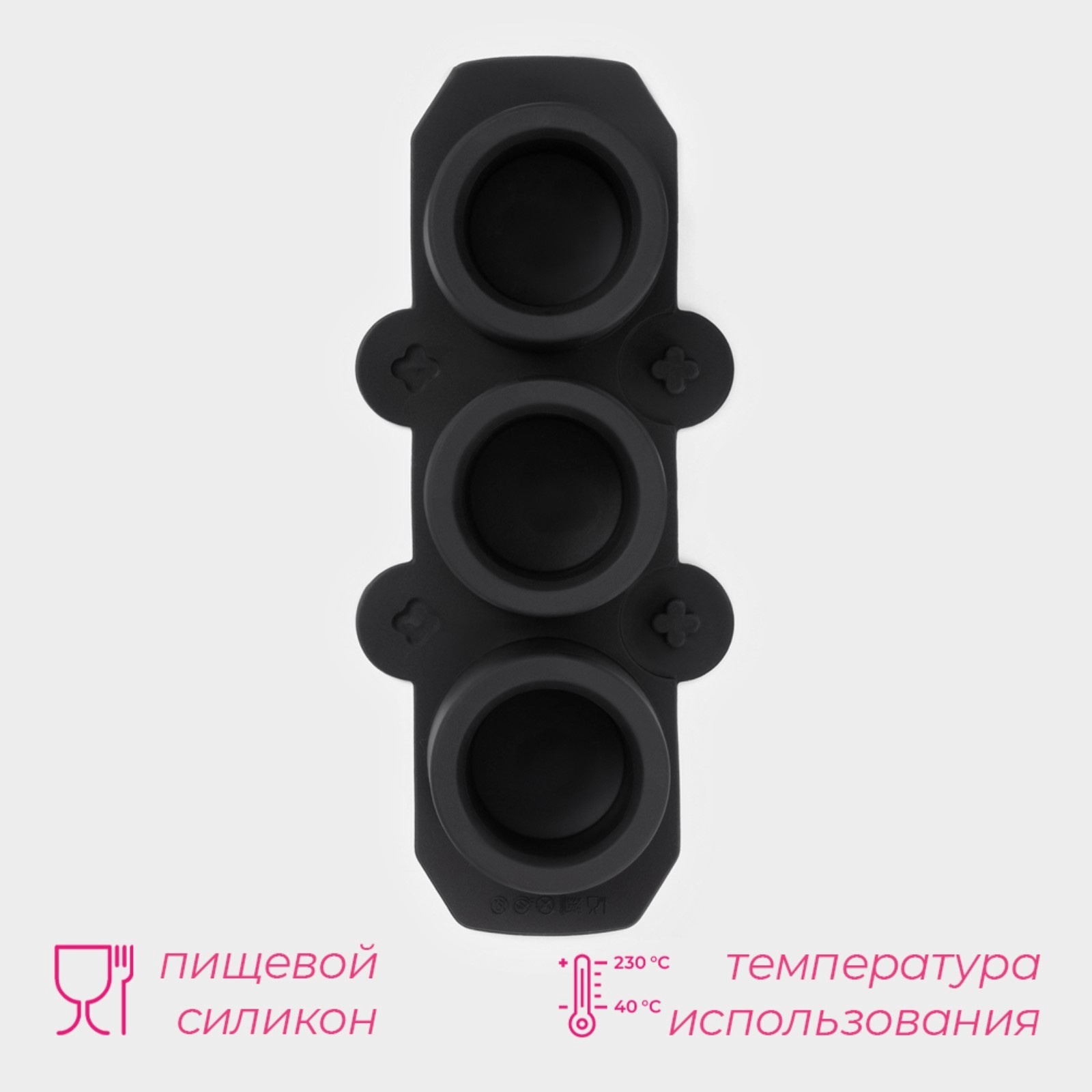 Форма для льда доляна «цилиндр», силикон, 21x4,5x9 см, 3 ячейки (5,5х4,5см), цвет чёрный