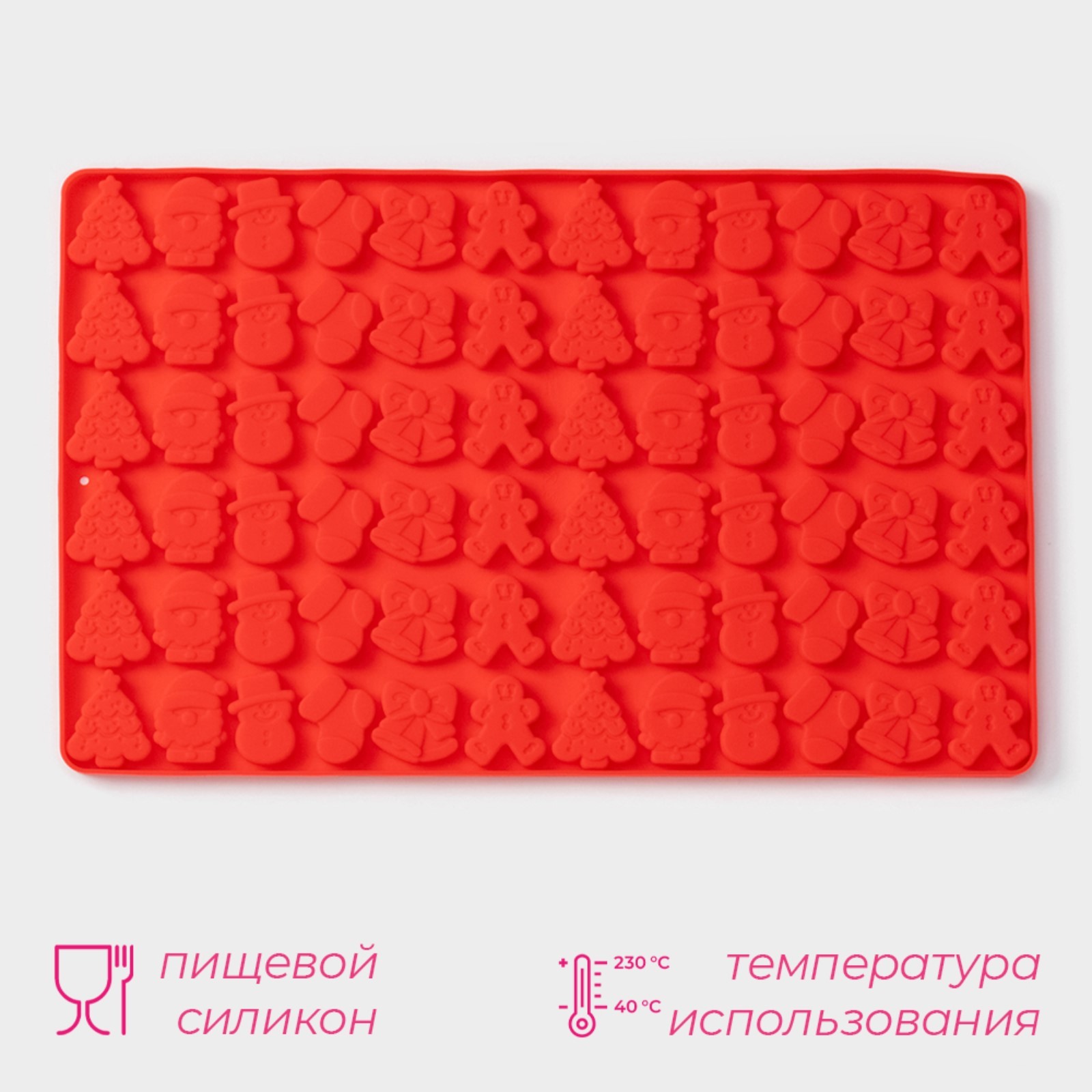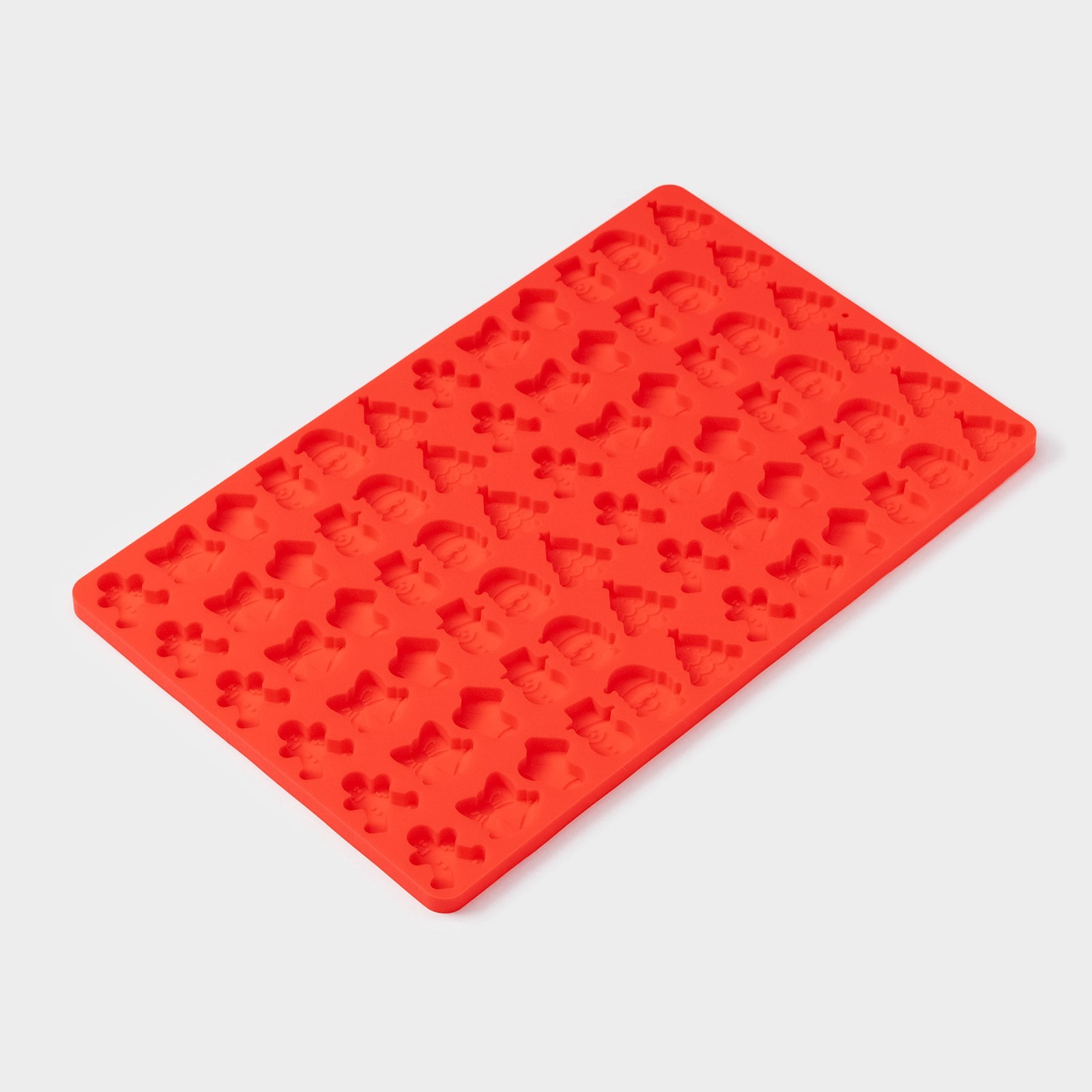 Форма для мармелада доляна «новогоднее настроение», силикон, 72 ячейки, 29x18x0,6 см , цвет красный