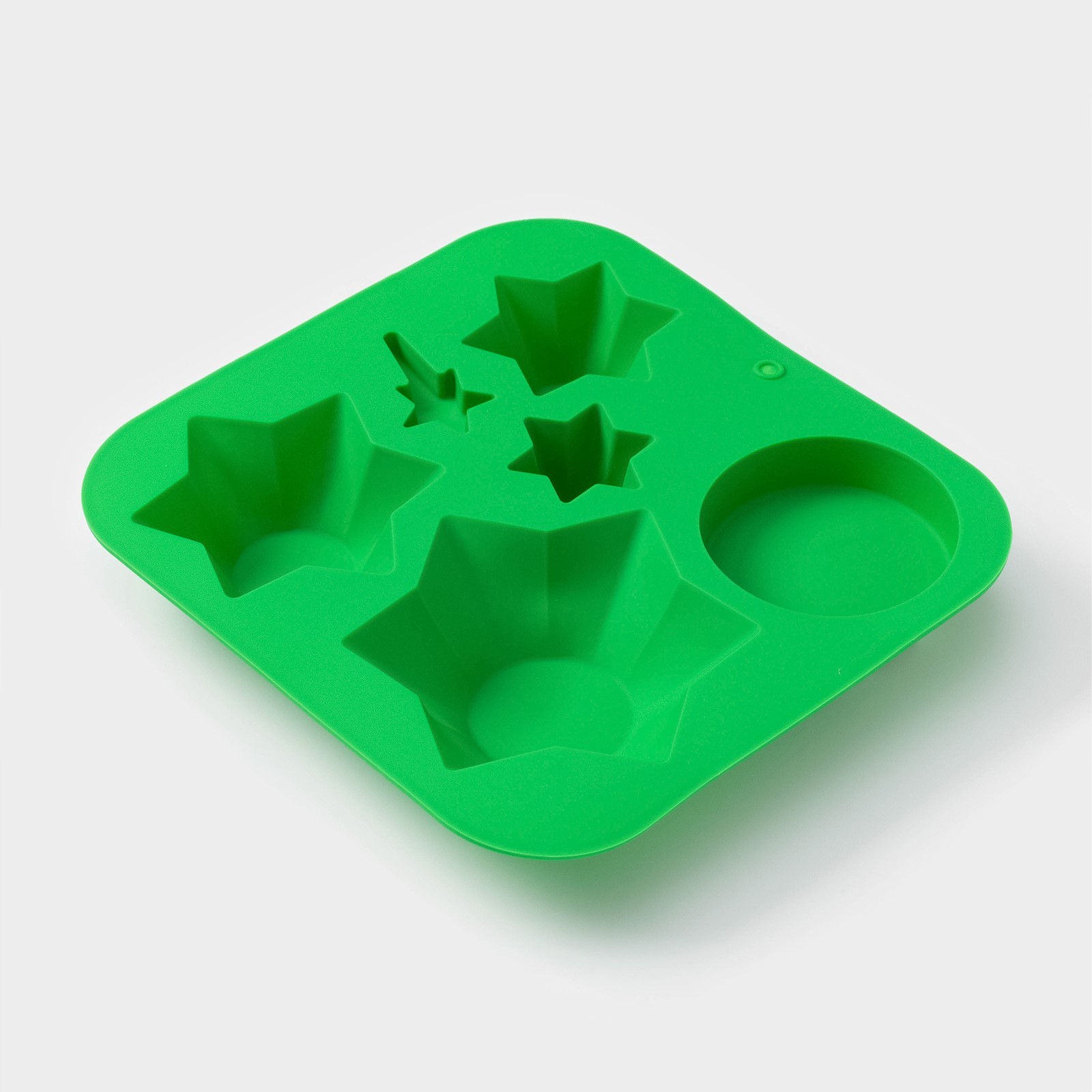 Форма для выпечки новогодняя доляна «новогодний набор», силикон, 20,5x22x3,5 см, 6 ячеек, цвет зелёный