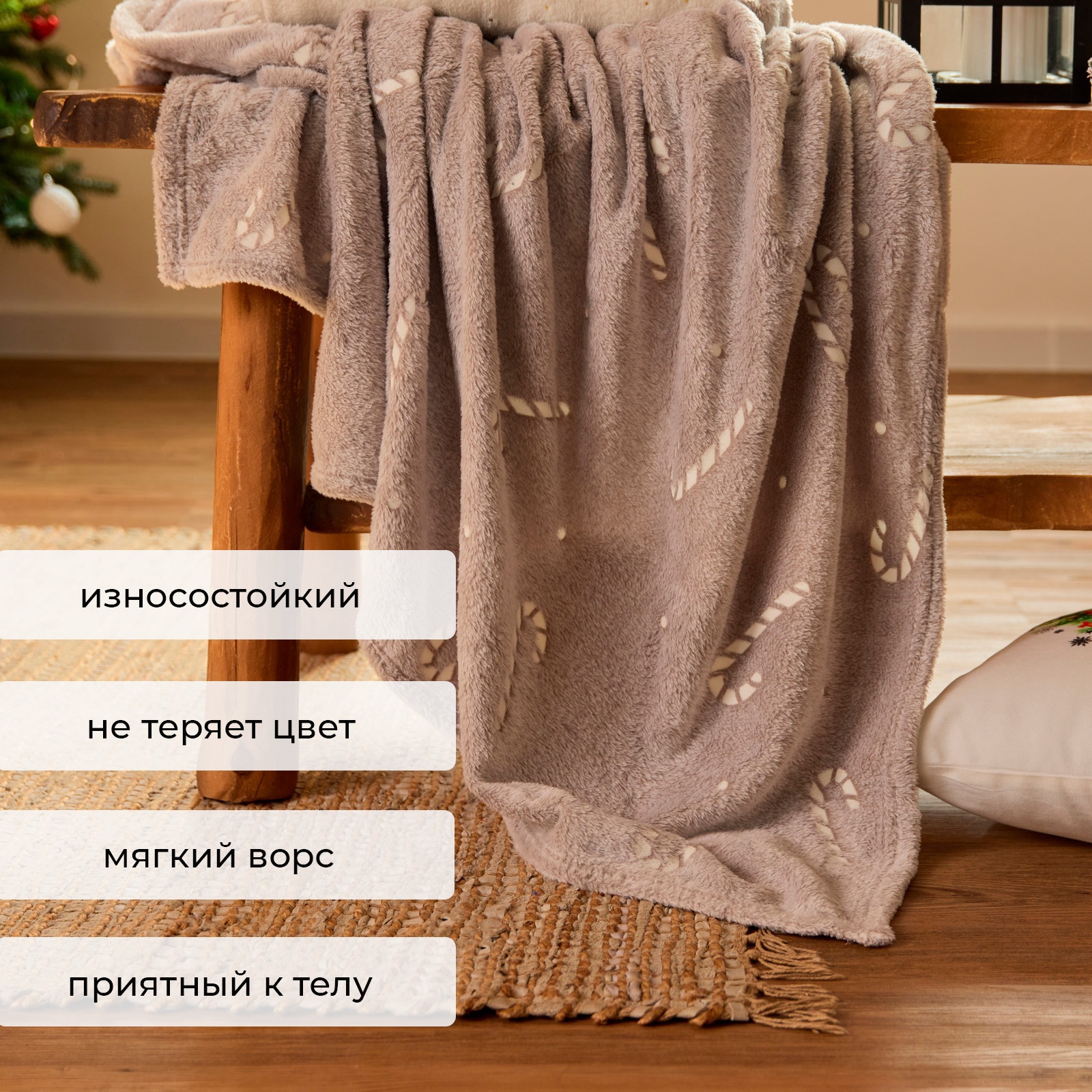 Плед светящийся в темноте «этель. Candy Cane», 180 200 см,100% п/э, корал-флис, 220 г/м