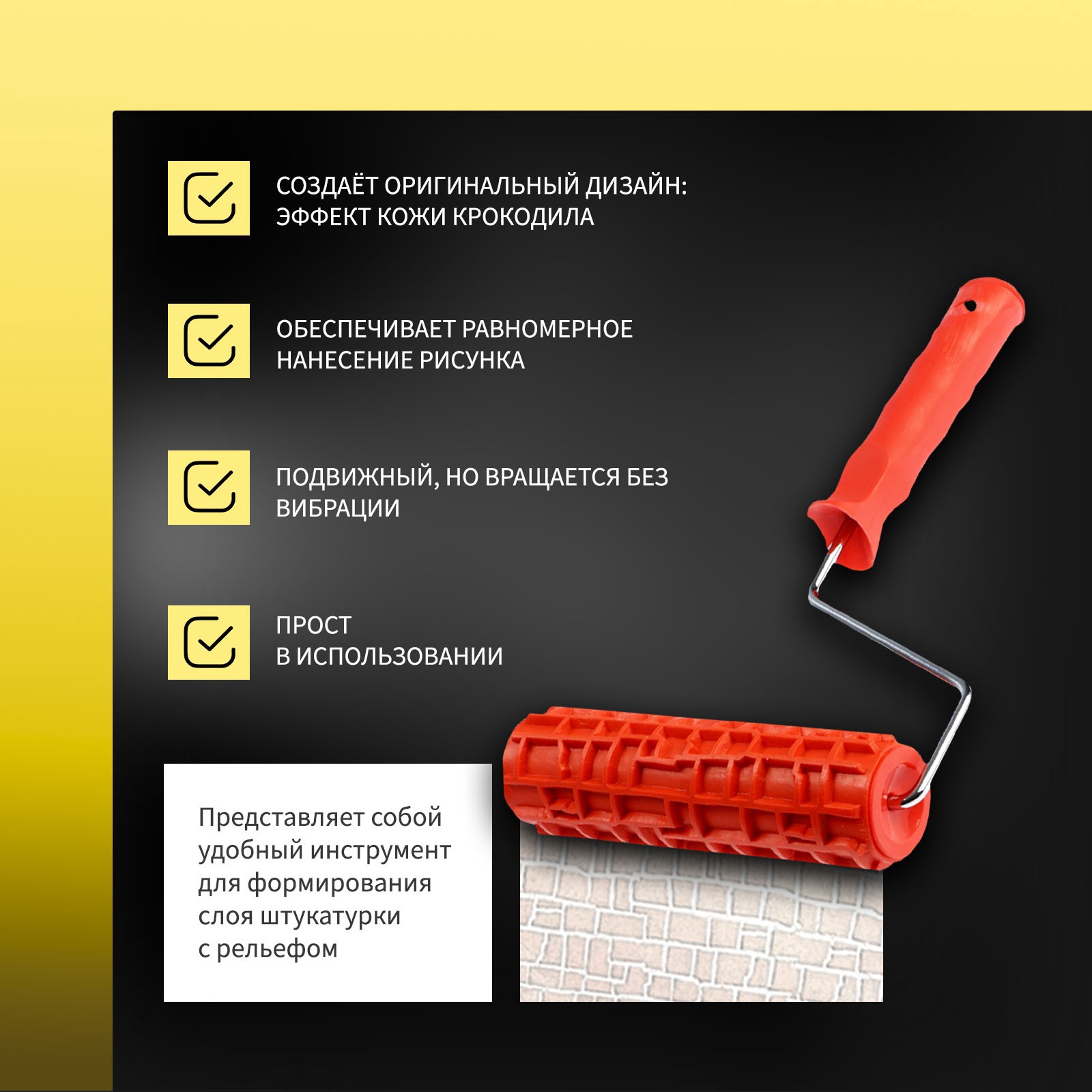 Валик декоративный тундра, резиновый, «крокодил», рукоятка D=6 мм, 180 мм