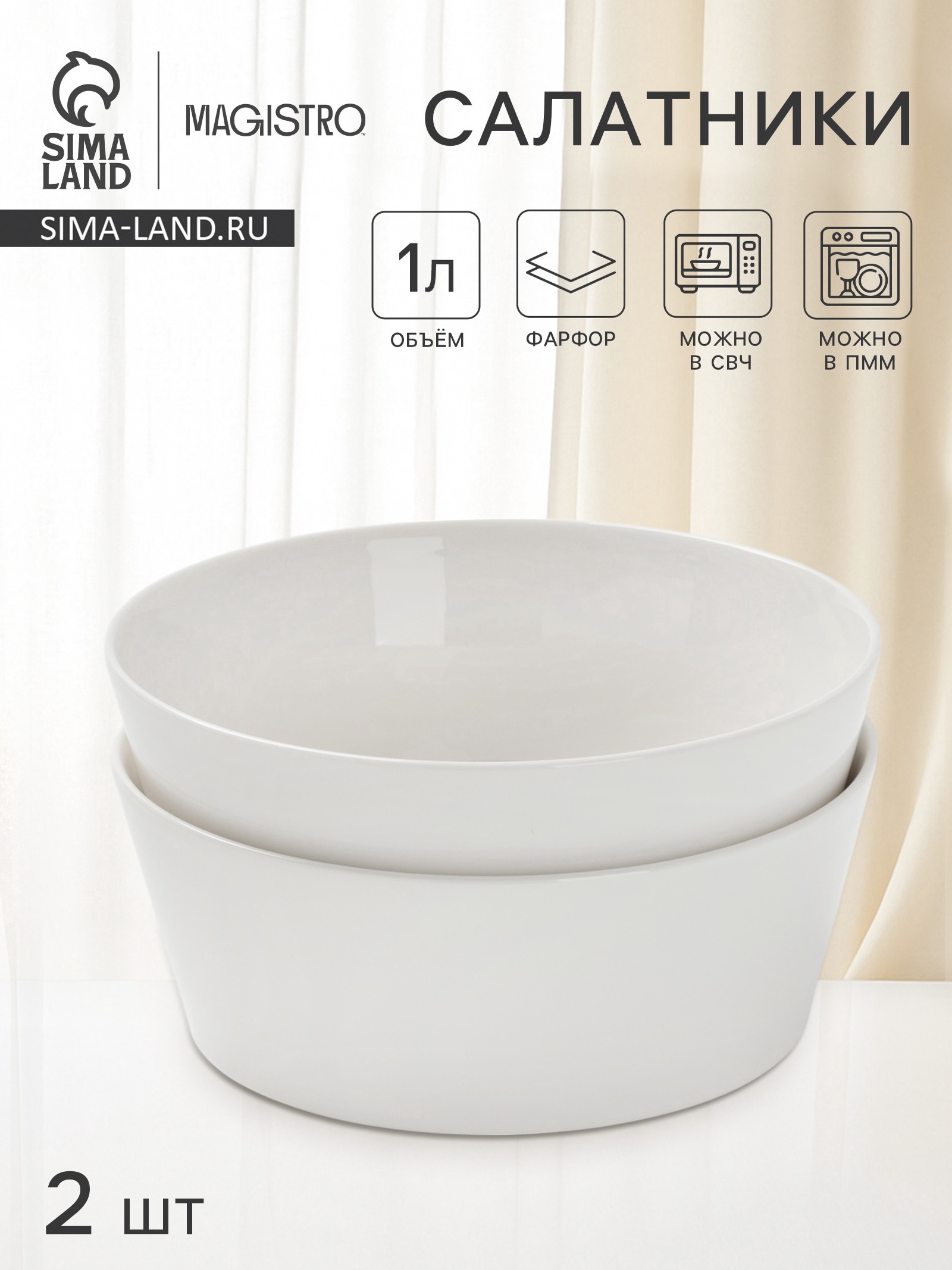 Салатники Magistro White Snow, набор 2 шт., 1 л, 18 7 см, фарфор, белые