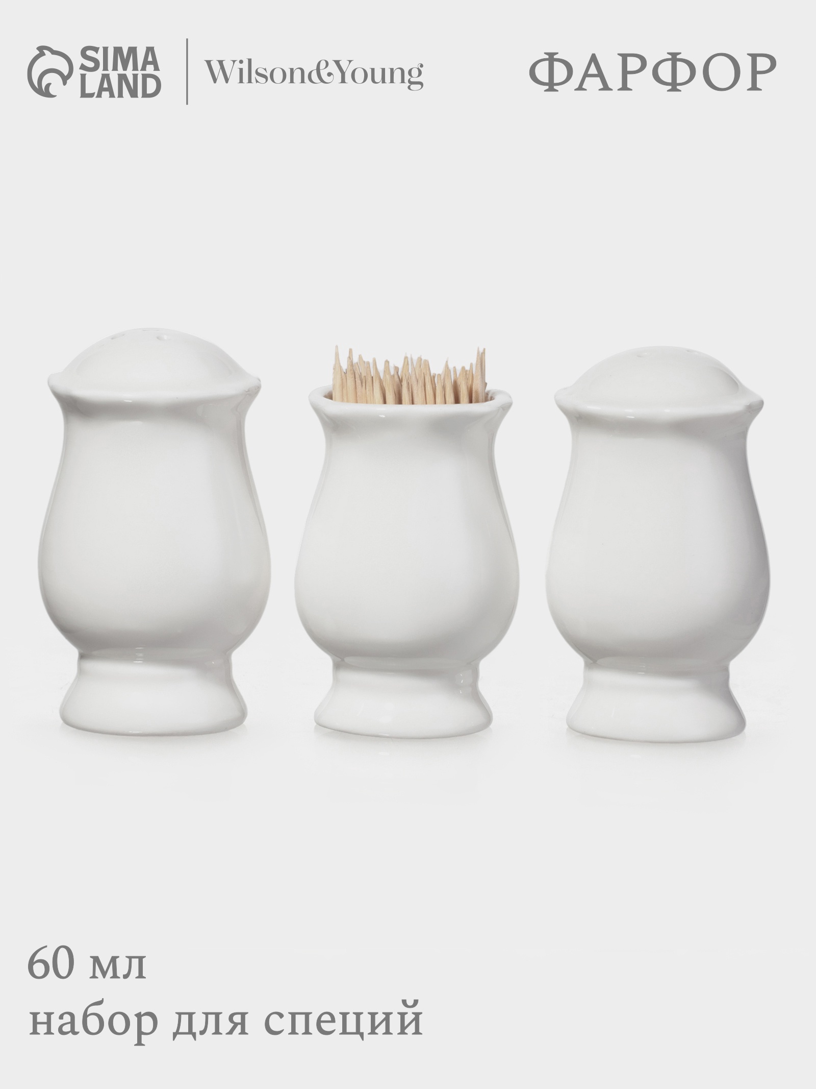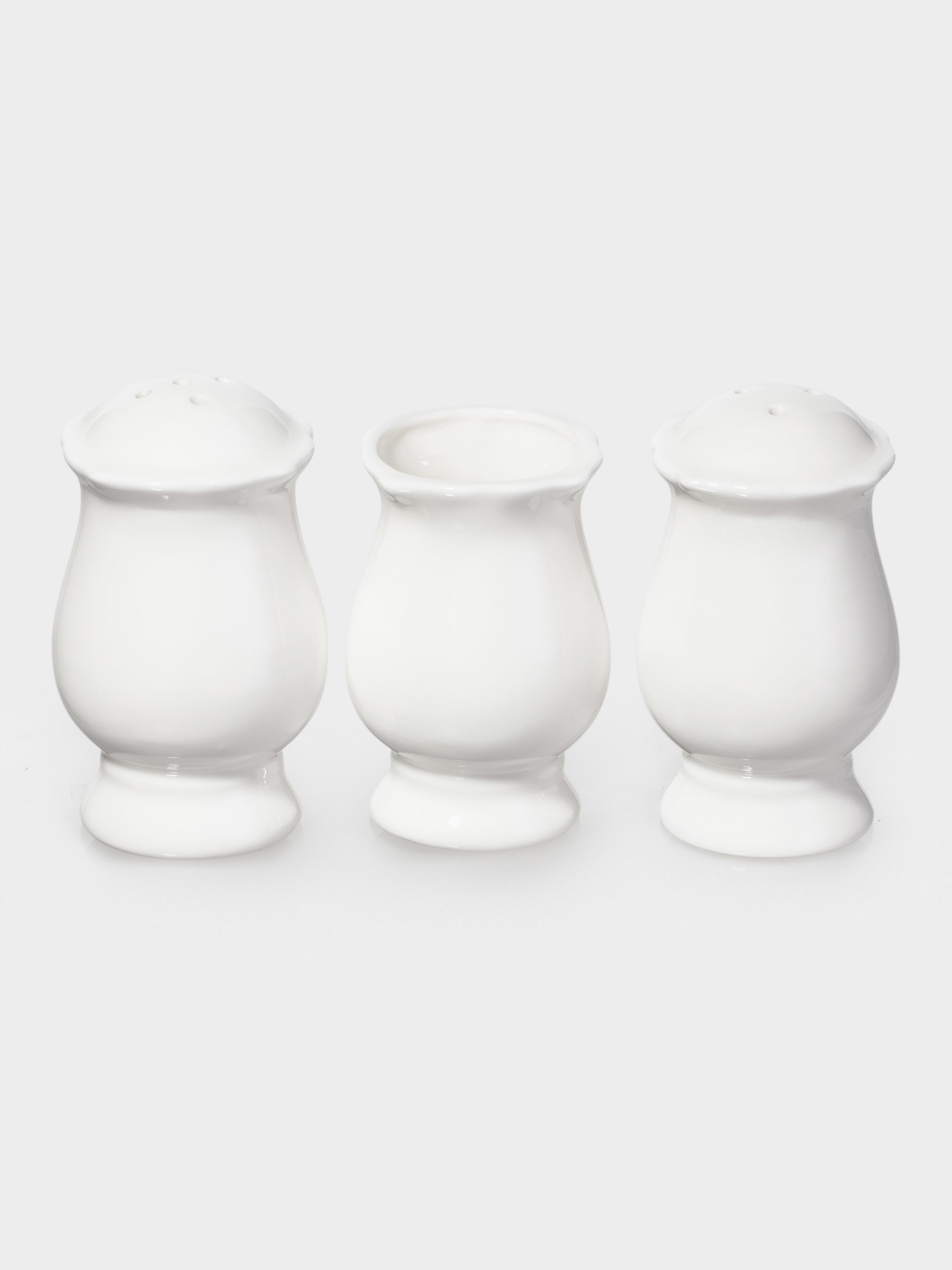 Набор для специй Wy Renessans, 3 предмета: солонка, перечница, подставка для зубочисток, 60 мл, фарфор, белый