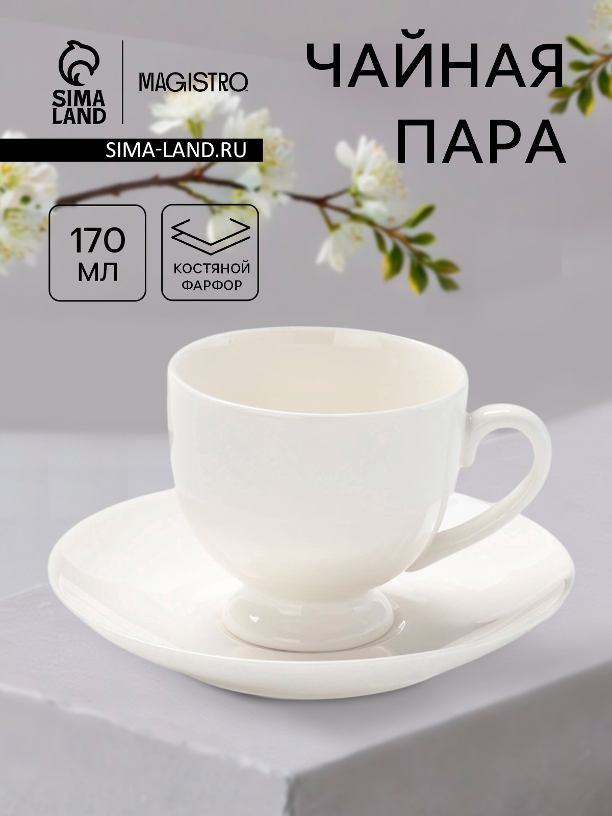 Чайная пара Magisto English Tea Party, 170 мл, фарфор, белая