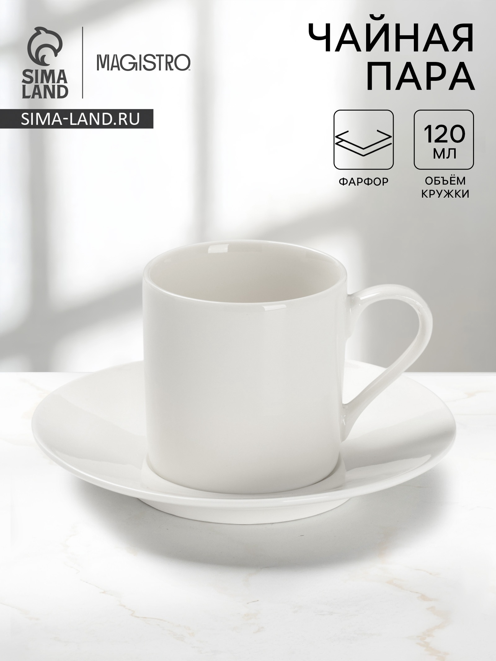 Чайная пара magisto english tea party, 120 мл, фарфор, белая.   Изысканная Чайная Пара из Фарфора (120 мл) Насладитесь каждым глотком любимого чая с этой изысканной чайной парой. Эта элегантная пара, состоящая из чашки и блюдца, выполнена из белоснежного фарфора. Объём чашки составляет 120 мл, что идеально подходит для эспрессо, крепкого чая или дегустационных порций. Привнесите нотку утонченности в вашу чайную церемонию. Ключевые Преимущества В набор входит чашка и блюдце, создающие гармоничный и элегантный комплект.Изготовлена из прочного и изысканного фарфора, обеспечивающего долгий срок службы.Минималистичный дизайн и чистый белый цвет позволяют легко сочетать чайную пару с любой другой посудой.Подходит для использования в микроволновой печи и мытья в посудомоечной машине, что делает ее удобной в повседневном использовании.Элегантность в Каждой Детали Эта чайная пара создана для тех, кто ценит изысканность и минимализм. Маленький объём чашки (120 мл) позволит вам в полной мере насладиться насыщенным вкусом и ароматом премиального чая. Почувствуйте себя аристократом, наслаждаясь любимым напитком из этой прекрасной фарфоровой чайной пары. Выбирайте качество, стиль и утонченный вкус. Набор:Да|Цвет:Белый|Количество персон:1|В наборе, шт.:2|Объём, мл:120|Тематика:Однотонная|Рисунок:Нет|Материал:Фарфор (Новый костяной фарфор)|Наличие подставки:Нет|Можно мыть в посудомоечной машине:Да|Можно использовать в СВЧ-печи:Да|Текстура:Гладкая|Особенности:Без особенностей|Матовая поверхность:Нет|Страна:Китай  развернуть описание ▼