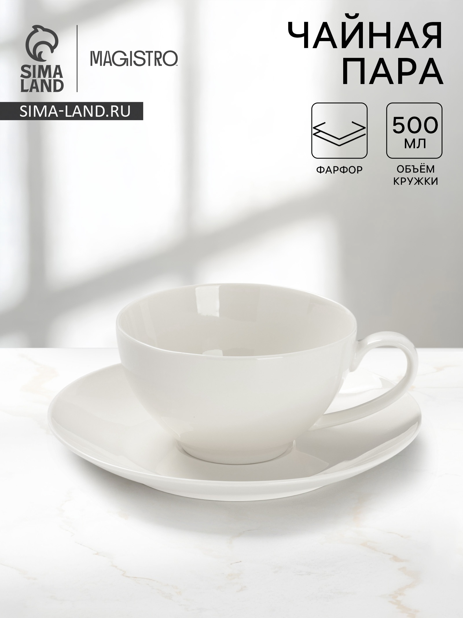 Чайная пара Magisto English Tea Party, 500 мл, фарфор, белая