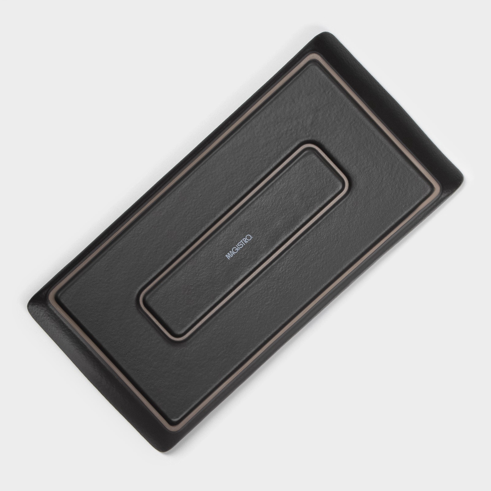Блюдо для подачи magistro black style, 29.5 14.8 см, фарфор, чёрное. Черная фарфоровая подставка для подачи блюд размером 29,5 14,8 см сочетает минималистичный дизайн с практичностью для сервировки и повседневного использования. Прямоугольная форма и матовая поверхность создают строгий контраст, а прочный материал выдерживает микроволновую печь и посудомоечную машину. Идеальна для закусок, фруктов или десертов. Преимущества Устойчивая конструкция предотвращает скольжение продуктов благодаря нескользящему основанию.Черный фарфор не впитывает запахи и сохраняет насыщенность цвета после множества стирок.Прямоугольная форма позволяет удобно размещать длинные продукты — от овощных роллов до пирожных.Гладкая поверхность легко очищается от жирных пятен и остатков соусов.Стиль для любого повода Подставка подойдет как для фуршета, так и для семейного ужина. Ее можно использовать как основу для сервировки сыров, канапе или фруктовых нарезок. Черный цвет добавляет блюдам визуальной глубины, а компактные габариты (29,5 14,8 см) позволяют размещать ее даже на маленьких столах. Такая посуда упростит подготовку к праздникам и станет акцентом в интерьере. Набор:Нет|Цвет:Чёрный|Рисунок:Нет|Материал:Керамика (Доломит)|Можно мыть в посудомоечной машине:Да|Можно использовать в СВЧ-печи:Да|Особенности:Без особенностей|Страна:Китай  развернуть описание ▼