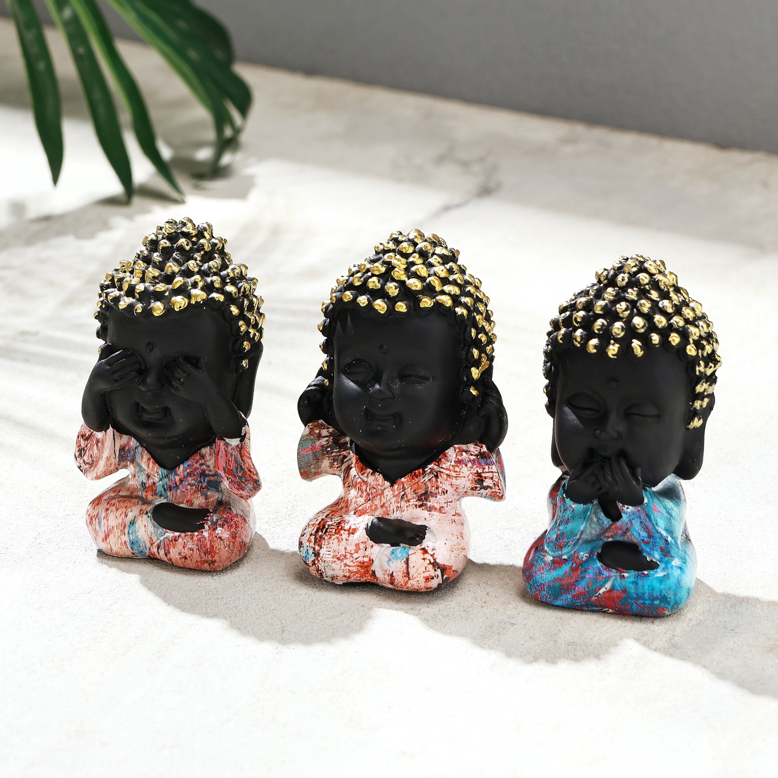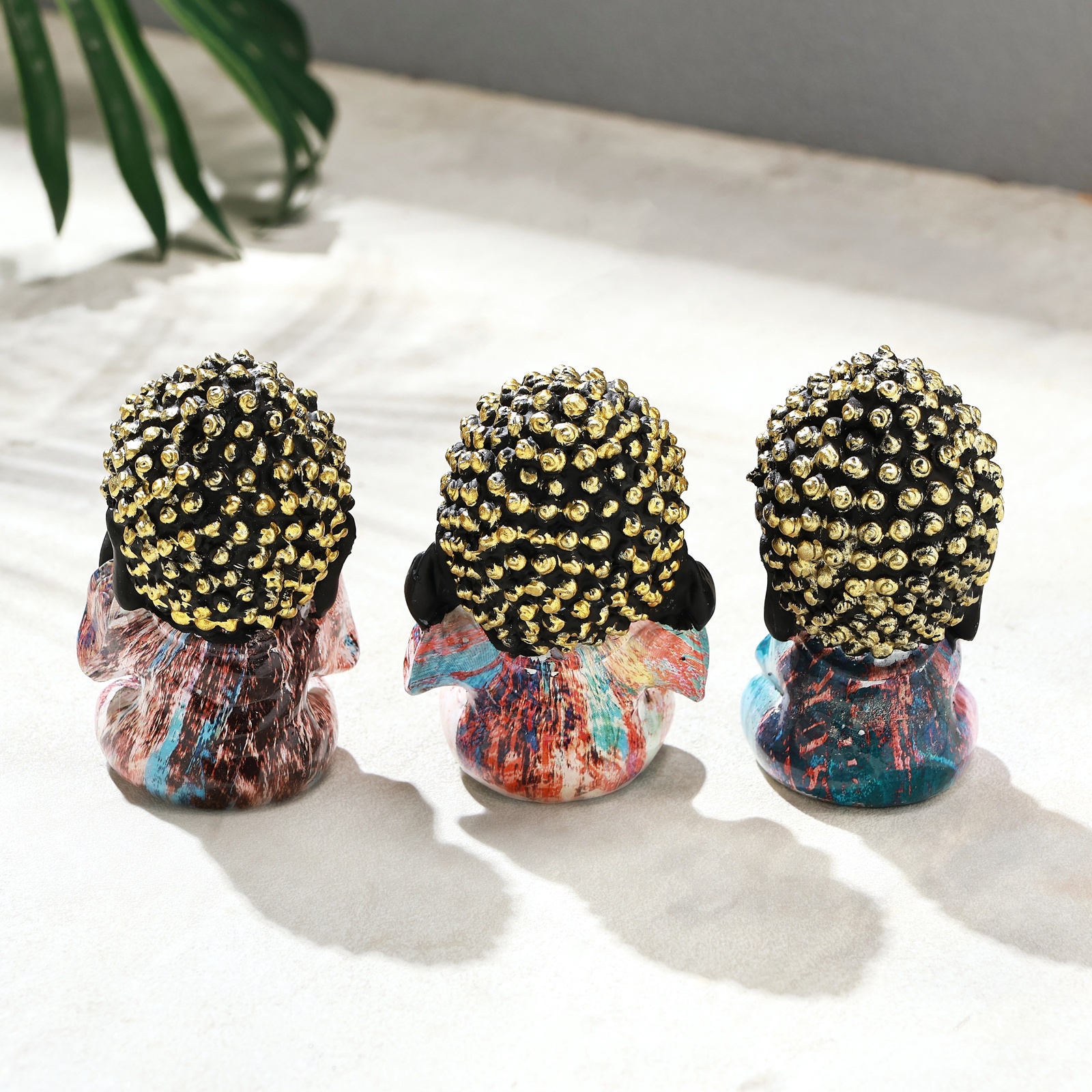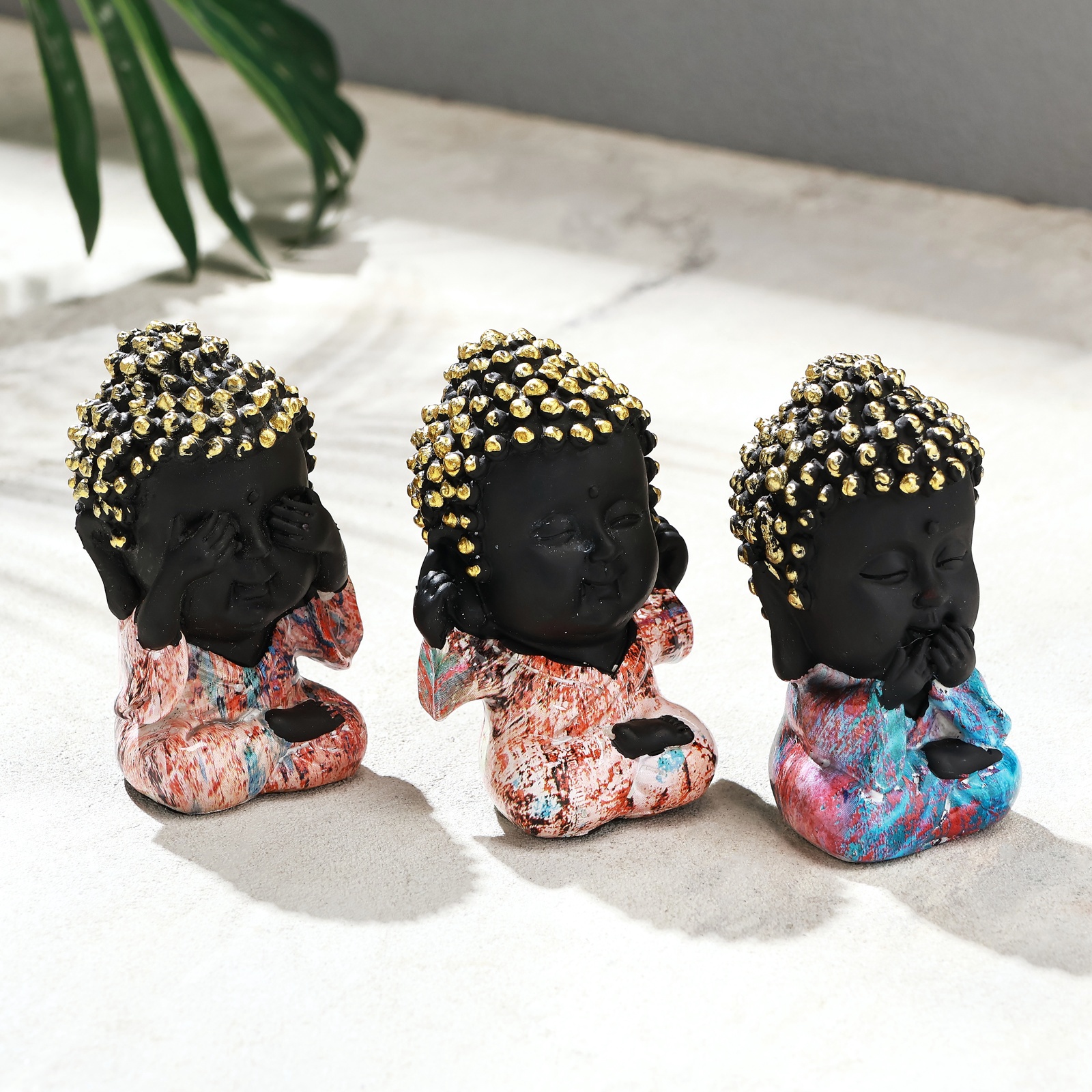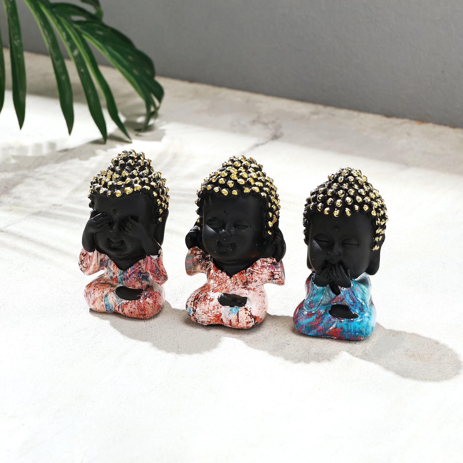 Набор фигурок полистоун take it easy «будда: не вижу, не слышу, не говорю», 4.5 5 9 см, 3 шт.. Три мудрых фигурки в элегантном чёрном исполнении несут в себе глубочайший философский смысл. Каждая из статуэток высотой 9 см по-своему демонстрирует древний принцип: «не вижу зла, не слышу зла, не говорю зла», воплощая гармонию и душевное равновесие. Изготовленные из качественного полистоуна, эти фигурки сохранят свою безупречную форму и насыщенный цвет на долгие годы. Компактные размеры (4.5 5 9 см) позволяют разместить их на рабочем столе, книжной полке или в машине, создавая островки мудрости в повседневной жизни. Символ мудрости: каждая поза Будды передаёт глубокий философский смысл, напоминая о важности внутреннего спокойствия.Универсальный подарок: набор подойдёт как ценителям восточной философии, так и тем, кто ищет стильный элемент декора.Практичность материала: полистоун устойчив к внешним воздействиям и не требует специального ухода.Гармоничная композиция: три фигурки вместе создают законченную концепцию, идеальную для медитативных практик.Тактильное удовольствие: приятная на ощупь поверхность с точной проработкой деталей.Этот набор - больше чем просто декор. Он становится молчаливым напоминанием о важности фильтрации информации, выборе слов и сохранении внутреннего баланса в современном шумном мире. Пусть эти три мудреца поселятся в вашем пространстве, принося с собой атмосферу умиротворения. Набор:Да|Цвет:Чёрный|Высота, см:9|Тематика праздника:Универсальная тематика|Материал:Полистоун|Имя Бога:Будда|Форма фигуры:Будда|Страна:Китай  развернуть описание ▼