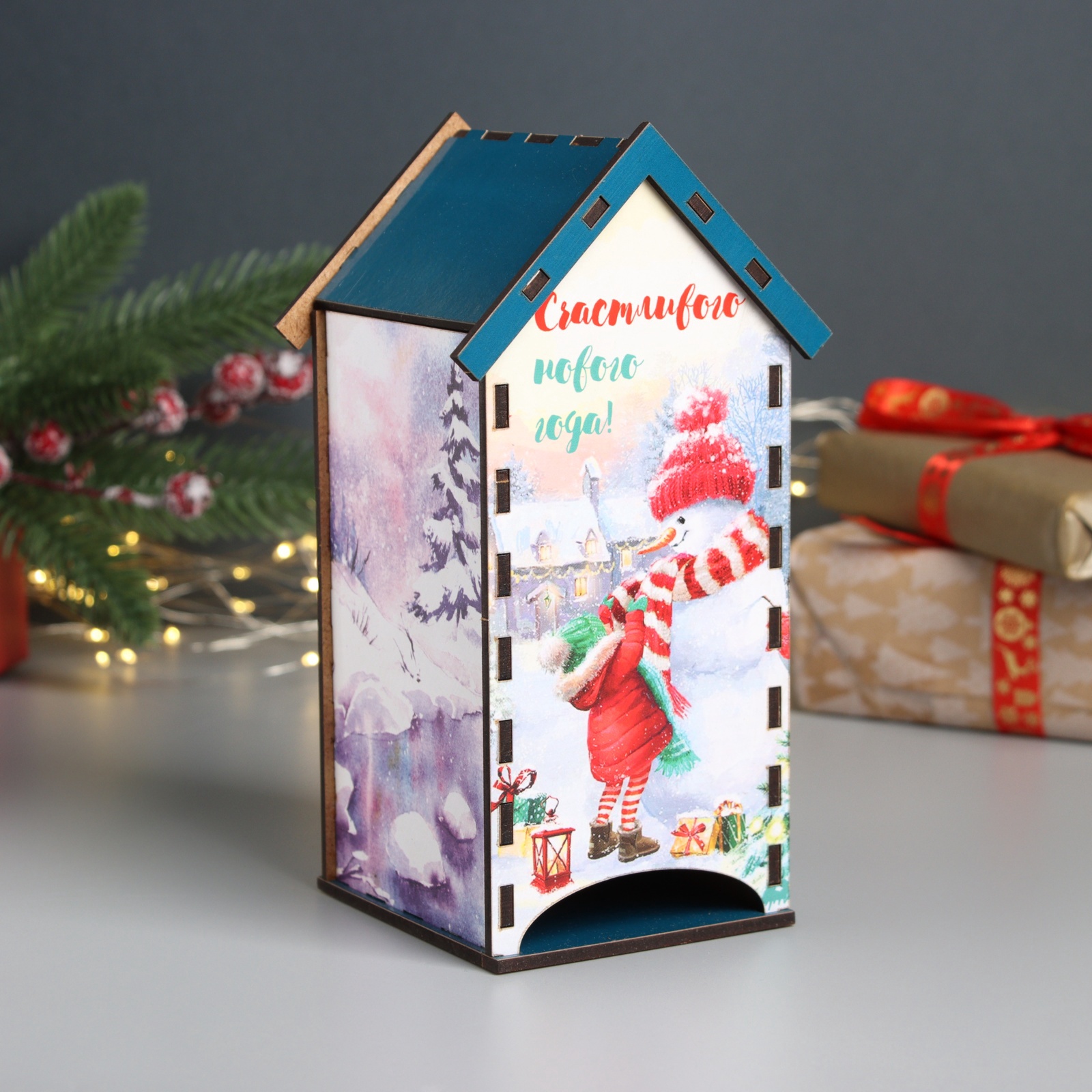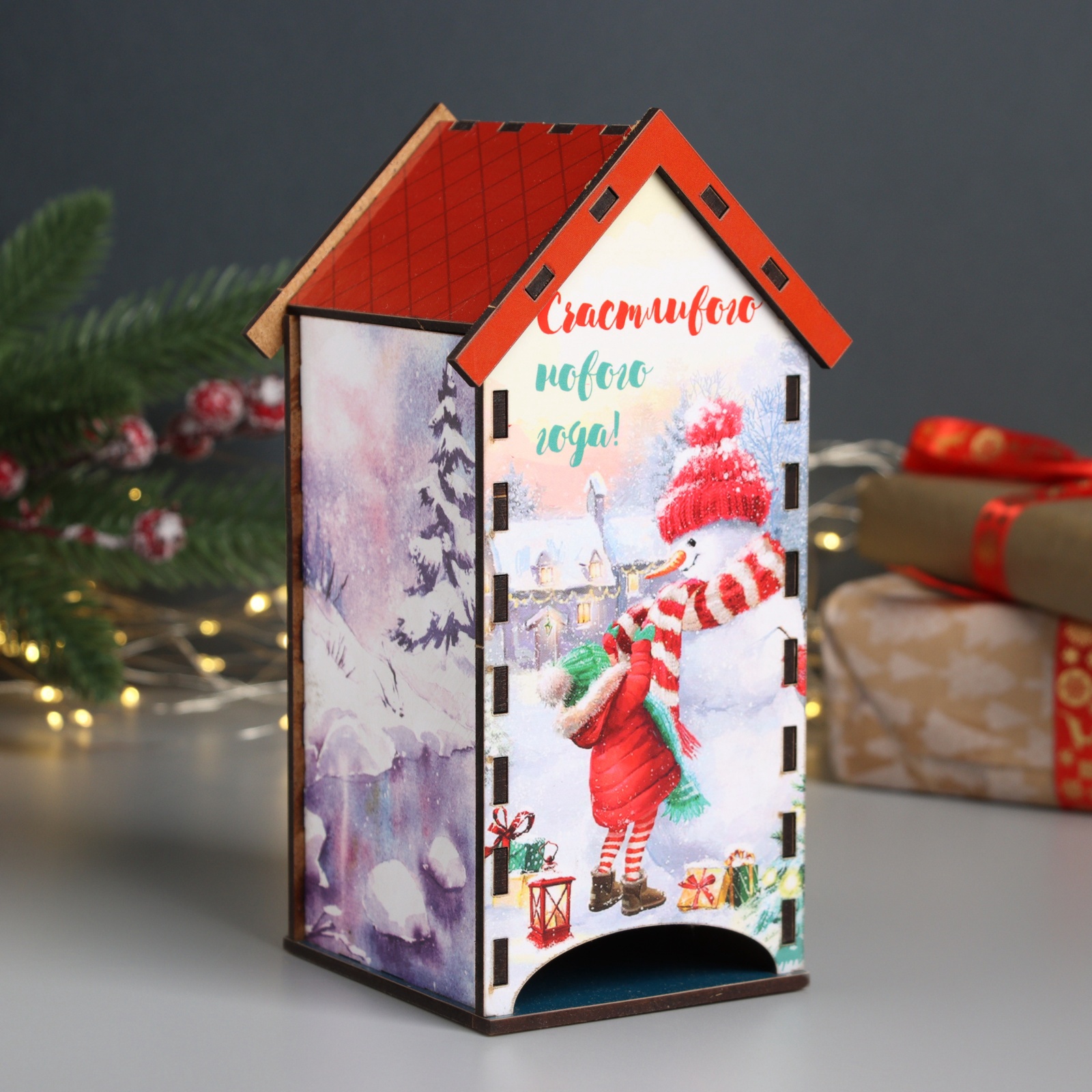 Новогодний чайный домик "счастливого нг" 20х10,5х10 см микс