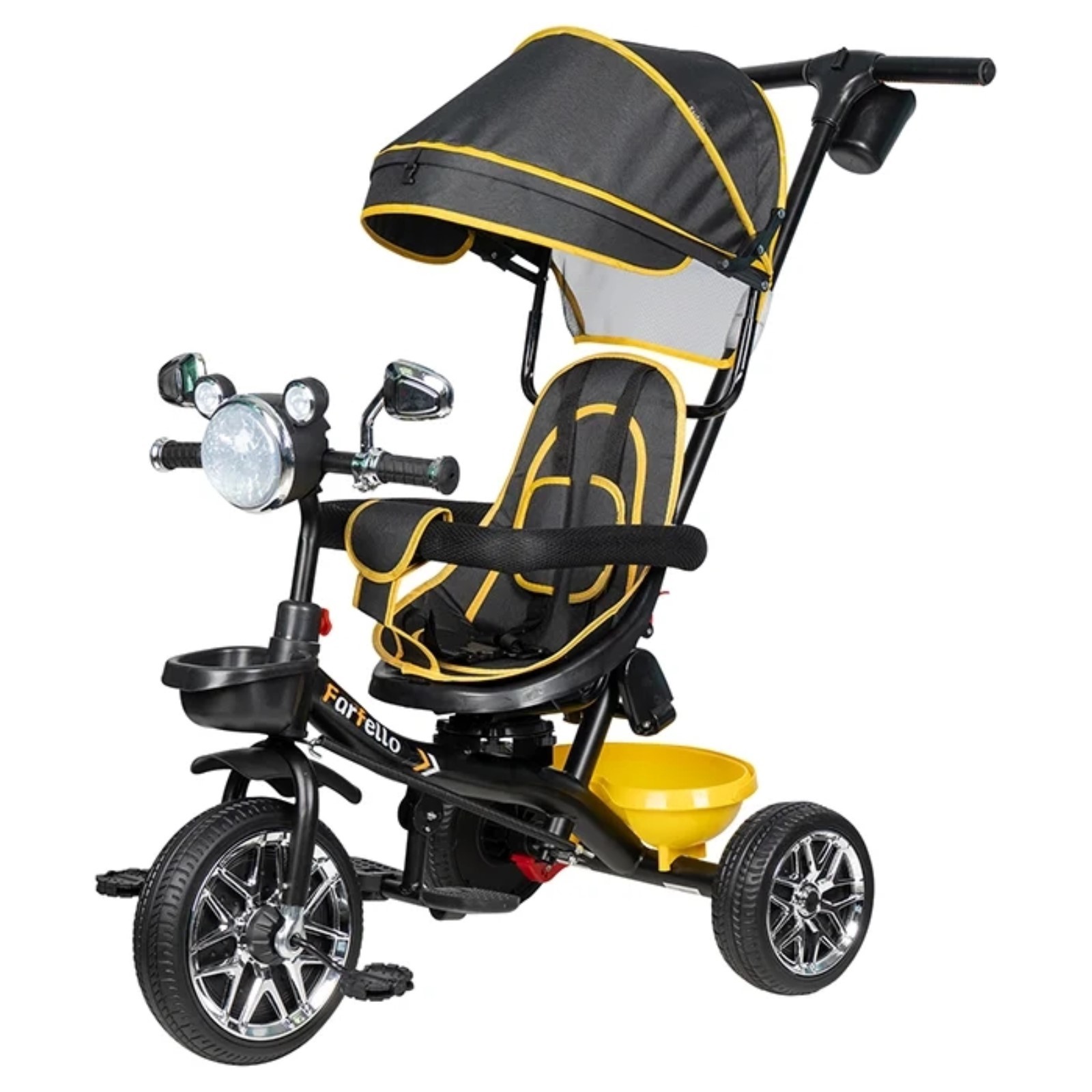 Велосипед детский трехколёсный farfello pl-08, цвет жёлтый. Этот велосипед оснащён поворотным сиденьем на 360 градусов, что обеспечивает удобство и гибкость в использовании. Угол наклона спинки не регулируется, но мягкое сиденье и спинка, а также трехточечные ремни безопасности обеспечивают комфорт и безопасность для ребенка. Разъёмный бампер посередине и тканевый разделитель для ножек добавляют удобства. Велосипед оснащён двумя открытыми корзинами и подстаканником для удобного хранения необходимых вещей. Складные подставки для ног и родительская ручка с тремя уровнями регулировки высоты делают велосипед практичным и удобным для родителей. Передняя фара со светомузыкой добавляет элемент развлечения для ребенка. Цвет: Чёрный Цвет: Жёлтый Для кого: Для мальчика Для кого: Для девочки Вес, кг: 8 Диаметр колеса, см: 20 Максимально допустимый вес, кг: 25 Диаметр колеса, см: 25 Модельный год: 2024 Материал рамы: Металл Складная рама: Нет Материал колёс: Полиуретановые Надувные колеса: Нет Ручка для родителей: Да Регулируемая спинка: Нет Тент: Да Страховочный обод: Да Доп. подставка для ног: Нет Свободный ход педалей: Нет Функция свободного хода руля: Нет Рекомендуемый возраст, лет: 1 - 5 Стояночный тормоз: Да Фара: Да Разворот сиденья: Да Складная подножка: Да Ремень безопасности: 3-точечный Светозвуковая панель: Да  развернуть описание ▼