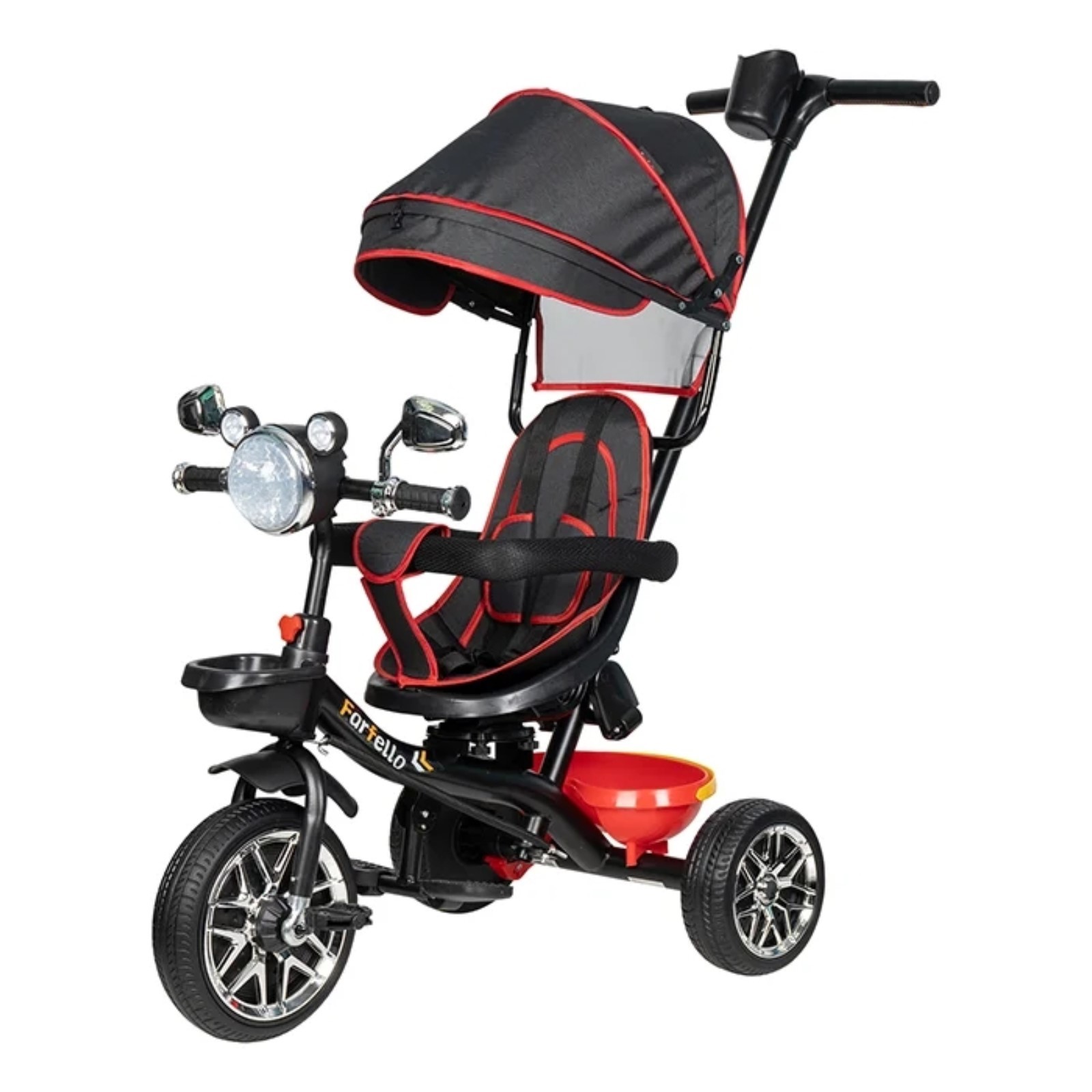 Велосипед детский трехколёсный farfello pl-08, цвет красный. Этот велосипед оснащён поворотным сиденьем на 360 градусов, что обеспечивает удобство и гибкость в использовании. Угол наклона спинки не регулируется, но мягкое сиденье и спинка, а также трехточечные ремни безопасности обеспечивают комфорт и безопасность для ребенка. Разъёмный бампер посередине и тканевый разделитель для ножек добавляют удобства. Велосипед оснащён двумя открытыми корзинами и подстаканником для удобного хранения необходимых вещей. Складные подставки для ног и родительская ручка с тремя уровнями регулировки высоты делают велосипед практичным и удобным для родителей. Передняя фара со светомузыкой добавляет элемент развлечения для ребенка. Цвет: Чёрный Цвет: Красный Для кого: Для мальчика Для кого: Для девочки Вес, кг: 8 Диаметр колеса, см: 20 Максимально допустимый вес, кг: 25 Диаметр колеса, см: 25 Модельный год: 2024 Материал рамы: Металл Складная рама: Нет Материал колёс: Полиуретановые Надувные колеса: Нет Ручка для родителей: Да Регулируемая спинка: Нет Тент: Да Страховочный обод: Да Доп. подставка для ног: Нет Свободный ход педалей: Нет Функция свободного хода руля: Нет Рекомендуемый возраст, лет: 1 - 5 Стояночный тормоз: Да Фара: Да Разворот сиденья: Да Складная подножка: Да Ремень безопасности: 3-точечный Светозвуковая панель: Да  развернуть описание ▼