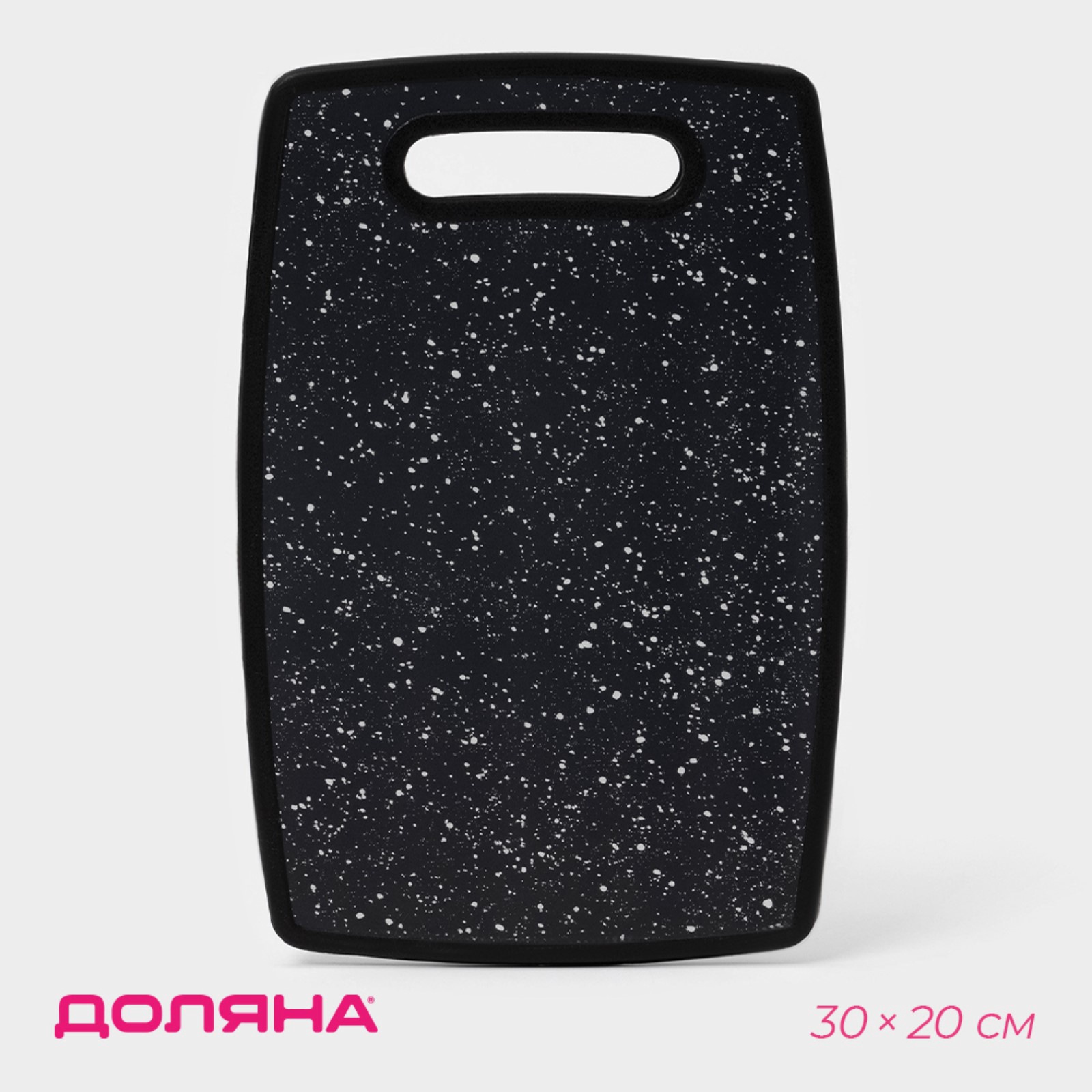 Доска разделочная доляна «звёздное небо», прямоугольная, 30x20 см, цвет чёрный. В приготовлении блюд разделочная доска играет не меньшую роль, чем сковорода, нож или плита. Качественная разделочная доска поможет получить от процесса приготовления пищи максимум пользы. Преимущества: Имеет оптимальный размер. Подойдет для разделки рыбы, мяса курицы или говядины, шашлыка, овощей, хлеба, теста, фруктов, продуктов, нарезок сыра и колбасы, картофеля, картошки. Материал легко очищается от грязи и жира, более экологичен, чем деревянное покрытие, которое впитывает запахи и влагу. Кроме того, разделочные доски можно использовать в качестве оригинального элемента сервировки стола - подать сыр к вину, фрукты, овощи, мясные закуски. Цвет: Чёрный Длина, см: 30 Ширина, см: 20 Материал: Пластик Тип нанесения рисунка: Ламинация Можно мыть в посудомоечной машине: Нет Особенности: Без особенностей Форма: Прямоугольник  развернуть описание ▼