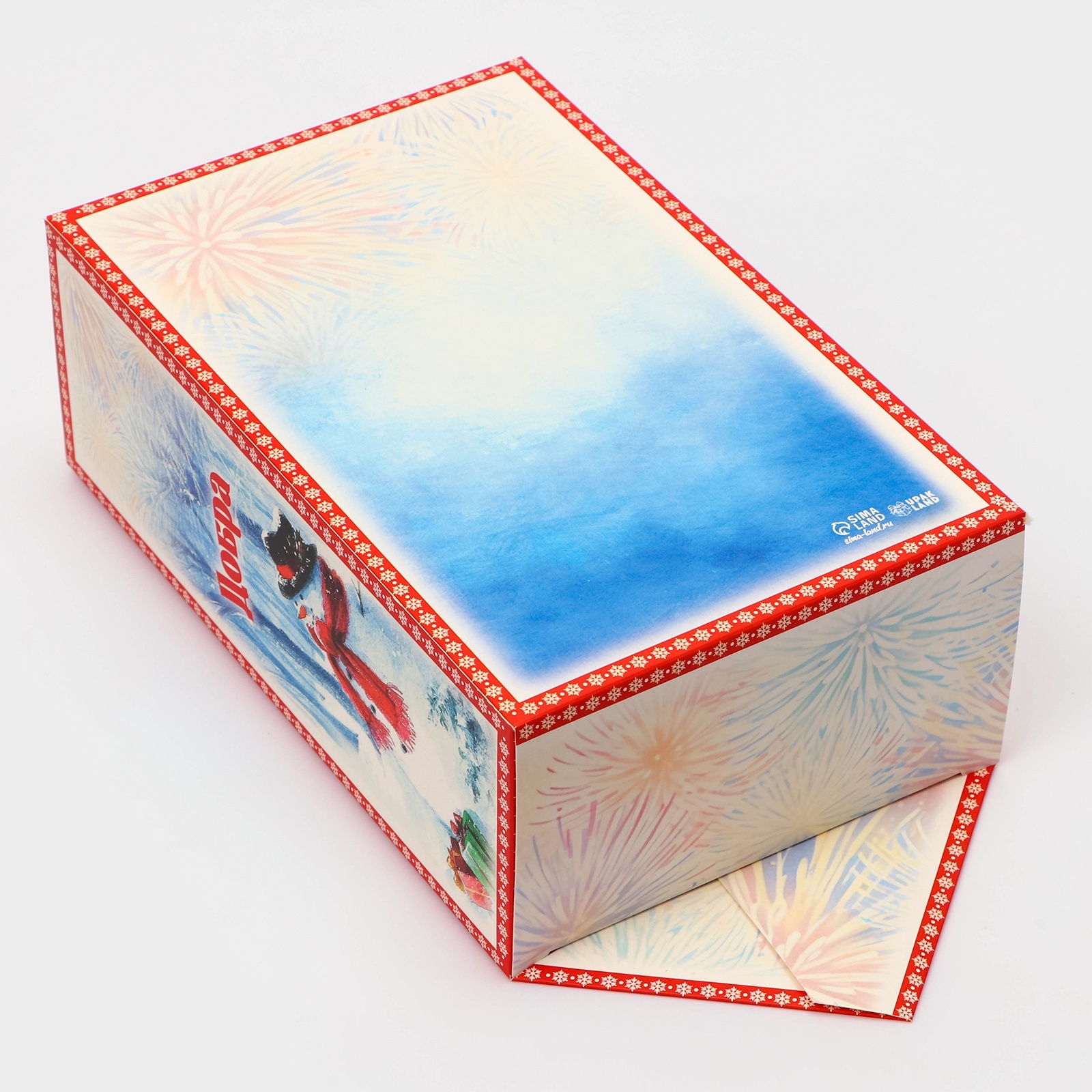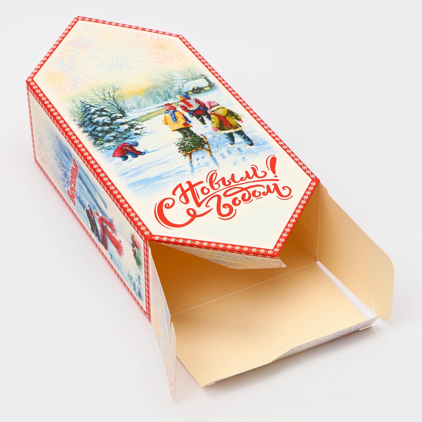 Коробка - конфета новогодняя подарочная складная «с новым годом», 18 28 10 см. Складная новогодняя коробка в виде конфеты — это оригинальная и праздничная упаковка для подарков, которая подчеркнёт волшебную атмосферу зимних праздников. Коробка выполнена в форме конфеты и оснащена удобным механизмом складывания, что позволяет легко собрать и разобрать её при необходимости. Она идеально подойдёт для упаковки сладостей, небольших подарков, сувениров и аксессуаров. Яркий и стильный дизайн создаст настроение праздника, а прочный материал гарантирует сохранность содержимого. Такая коробка станет не только практичной упаковкой, но и эффектным элементом декора, привлекая внимание и даря радость получателям. Цвет:Бежевый|Цвет:Голубой|Форма:Прямоугольная|Форма:Фигурная|Плотность, г/м :350|Длина, см:28|Ширина, см:18|Высота, см:10|Тематика:Новогодняя|Тематика:Рождественская|Символ года:Нет|Тематика праздника:Рождество|Тематика праздника:Новый год|Материал:Картон|Вид:Фигурные|Вид:Прямоугольные|Вид:Коробки-конфеты|Вид:Складные коробки|Размер:Средний (18-24 см)|Окошко:Нет|Крышка-дно:Нет|Страна:Россия  развернуть описание ▼