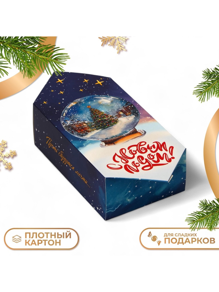 Коробка - конфета новогодняя подарочная складная «с новым годом», 9 14.5 5 см. Складная новогодняя коробка в виде конфеты — это оригинальная и праздничная упаковка для подарков, которая подчеркнёт волшебную атмосферу зимних праздников. Коробка выполнена в форме конфеты и оснащена удобным механизмом складывания, что позволяет легко собрать и разобрать её при необходимости. Она идеально подойдёт для упаковки сладостей, небольших подарков, сувениров и аксессуаров. Яркий и стильный дизайн создаст настроение праздника, а прочный материал гарантирует сохранность содержимого. Такая коробка станет не только практичной упаковкой, но и эффектным элементом декора, привлекая внимание и даря радость получателям. Цвет:Синий|Форма:Фигурная|Форма:Прямоугольная|Плотность, г/м :350|Длина, см:14.6|Ширина, см:9.3|Высота, см:5.3|Тематика:Рождественская|Тематика:Новогодняя|Символ года:Нет|Тематика праздника:Новый год|Тематика праздника:Рождество|Материал:Картон|Вид:Складные коробки|Вид:Фигурные|Вид:Прямоугольные|Вид:Коробки-конфеты|Размер:Мини (до 10 см)|Окошко:Нет|Крышка-дно:Нет|Страна:Россия  развернуть описание ▼