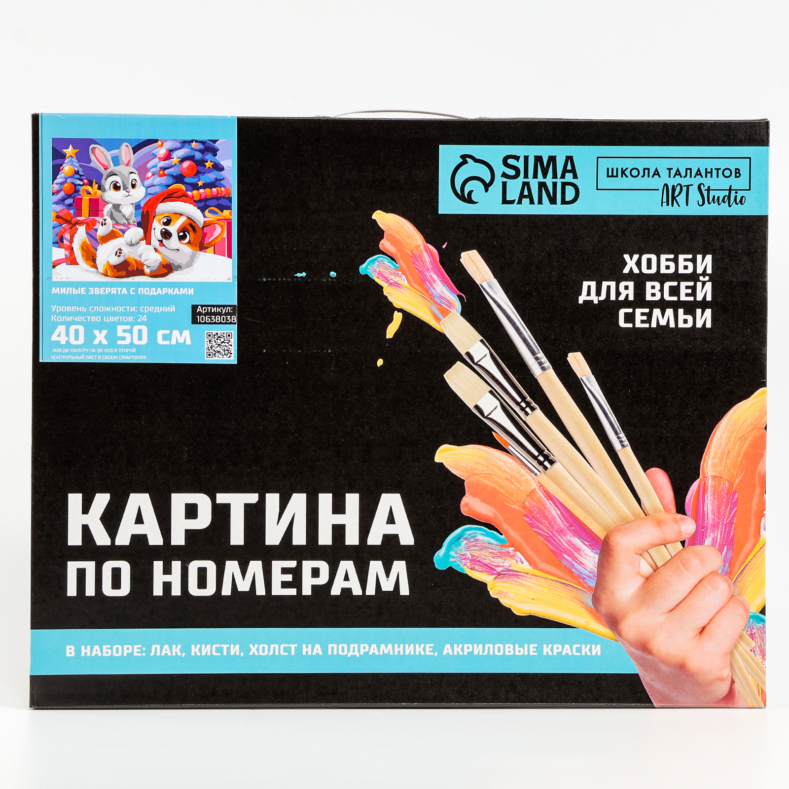Картина по номерам на новый год на холсте с подрамником «милые зверята с подарками», 40 50 см. Картина по номерам - это холст, который разделён на множество мелких фрагментов, на каждом из которых указано число, соответствующее цвету, которым нужно закрасить данный участок. Простота и удобство в использовании делают этот набор идеальным выбором для всех, кто хочет попробовать себя в живописи. Основные характеристики: Холст на деревянном подрамникеРазмер: 40 х 50 смКоличество цветов: 24Краски морозостойкие (до -50°С)Создать яркую картину своими руками это отличный способ расслабиться, провести время с пользой и получить удовольствие от процесса творчества. Картина станет отличным подарком для любителей рукоделия и искусства, а после раскрашивания станет стильным элементом интерьера. Погрузитесь в мир красок и создайте свое уникальное произведение искусства! Для кого:Унисекс|Размер, см:40 х 50|Возраст:От 7 лет|Тематика:Новогодняя|Символ года:Нет|Тематика праздника:Новый год|Ориентация изображения:Горизонтально|Вид:Холст под роспись|Уровень сложности:Средний|Комплектация набора:С красками|Комплектация набора:С лаком|Комплектация набора:С кисточками|Страна:Россия  развернуть описание ▼