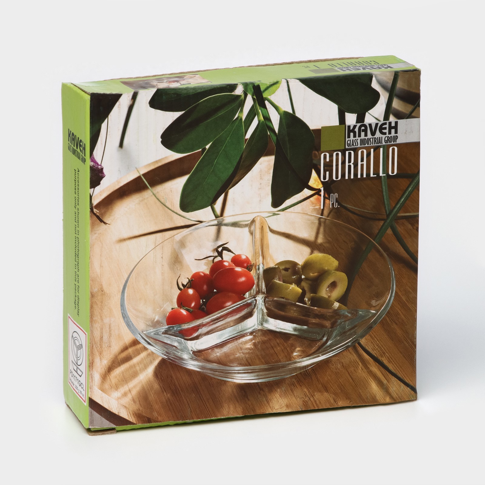 Менажница стеклянная Corallo, 233 мл, D=14 см, 3 секции
