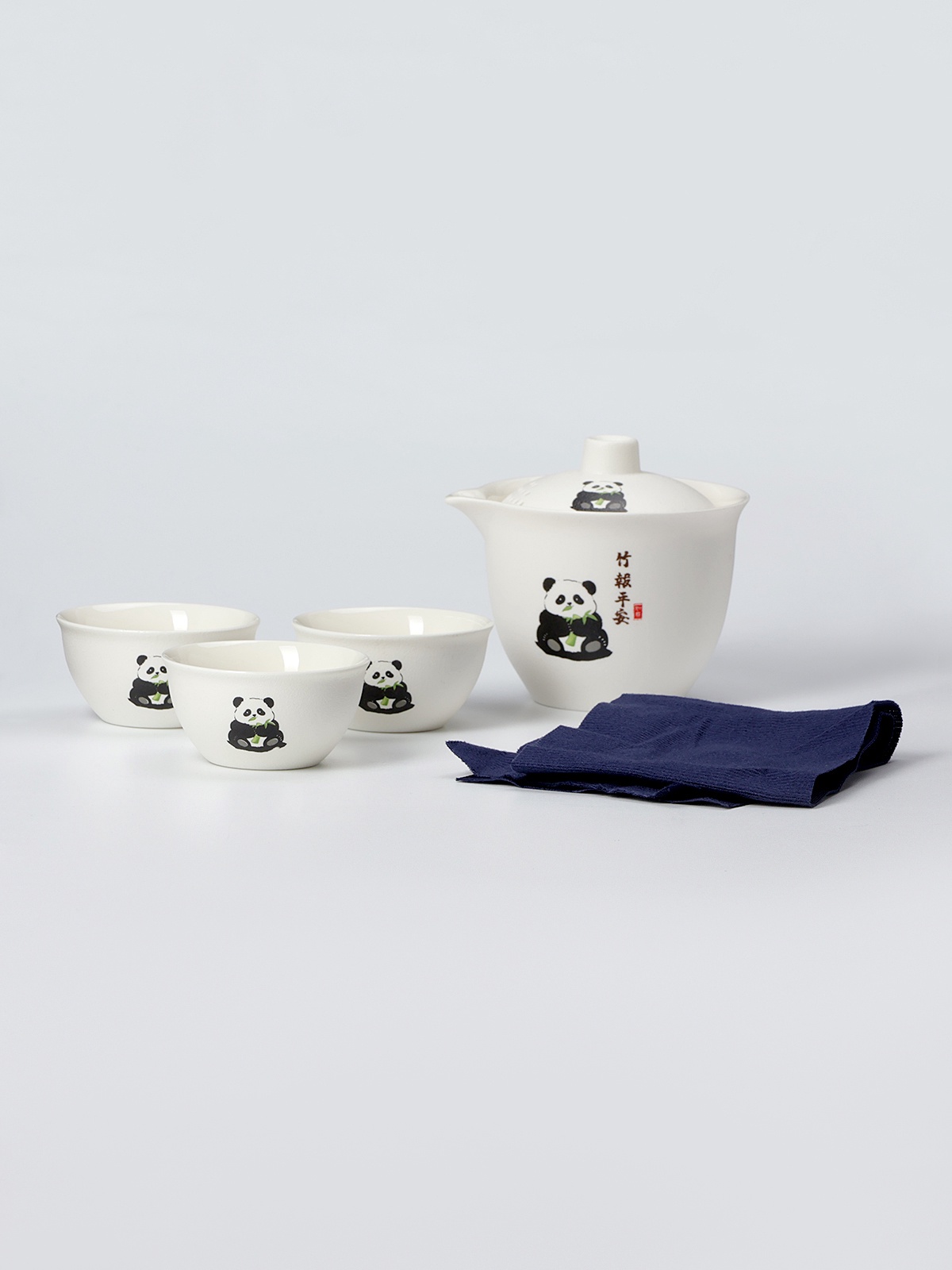 Набор для чайной церемонии джекичай «панда», 5 предметов, на 3 персоны, чашка 50 мл, чайник 120 мл, керамика, белый