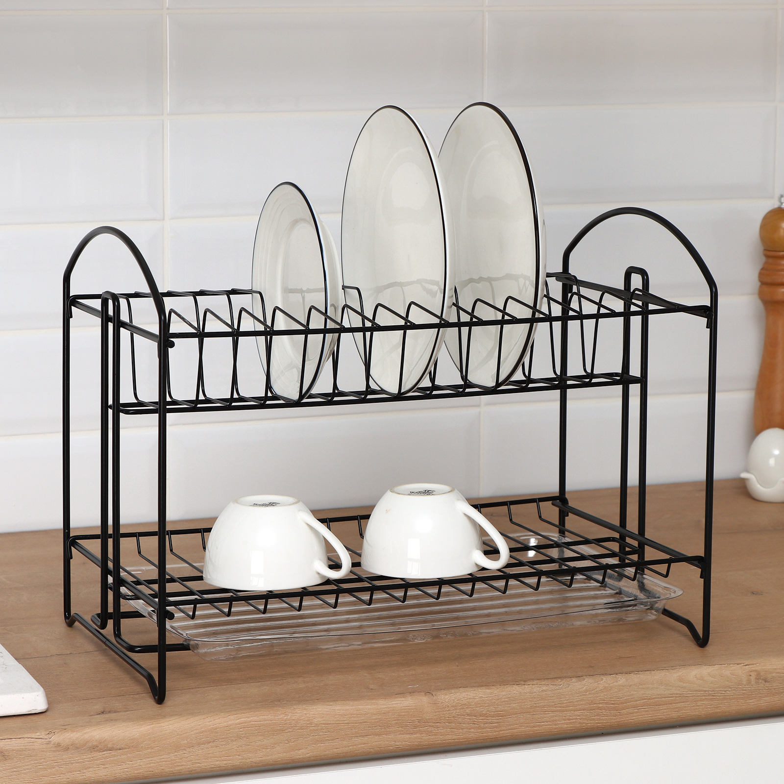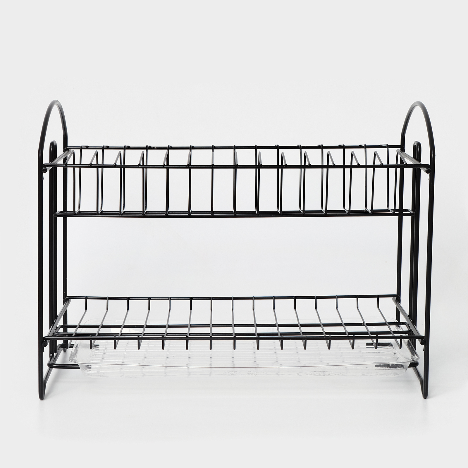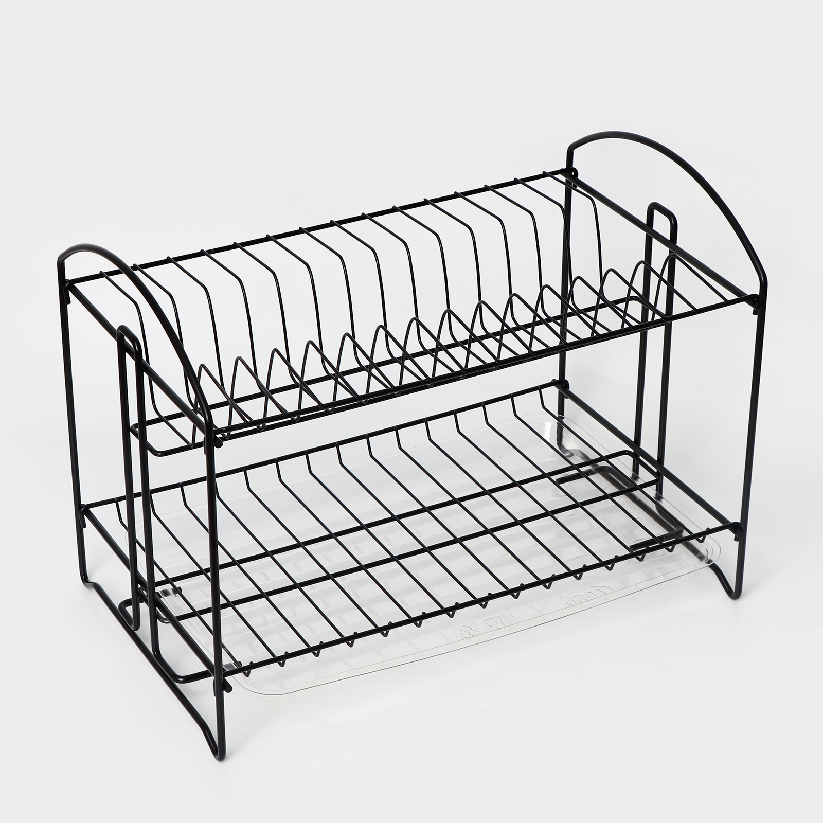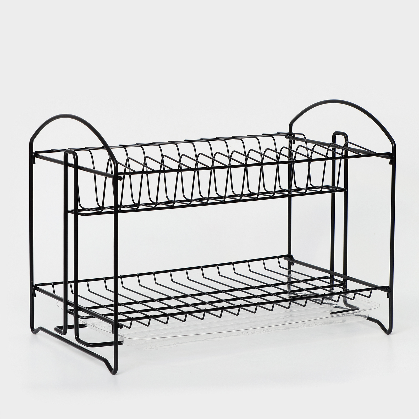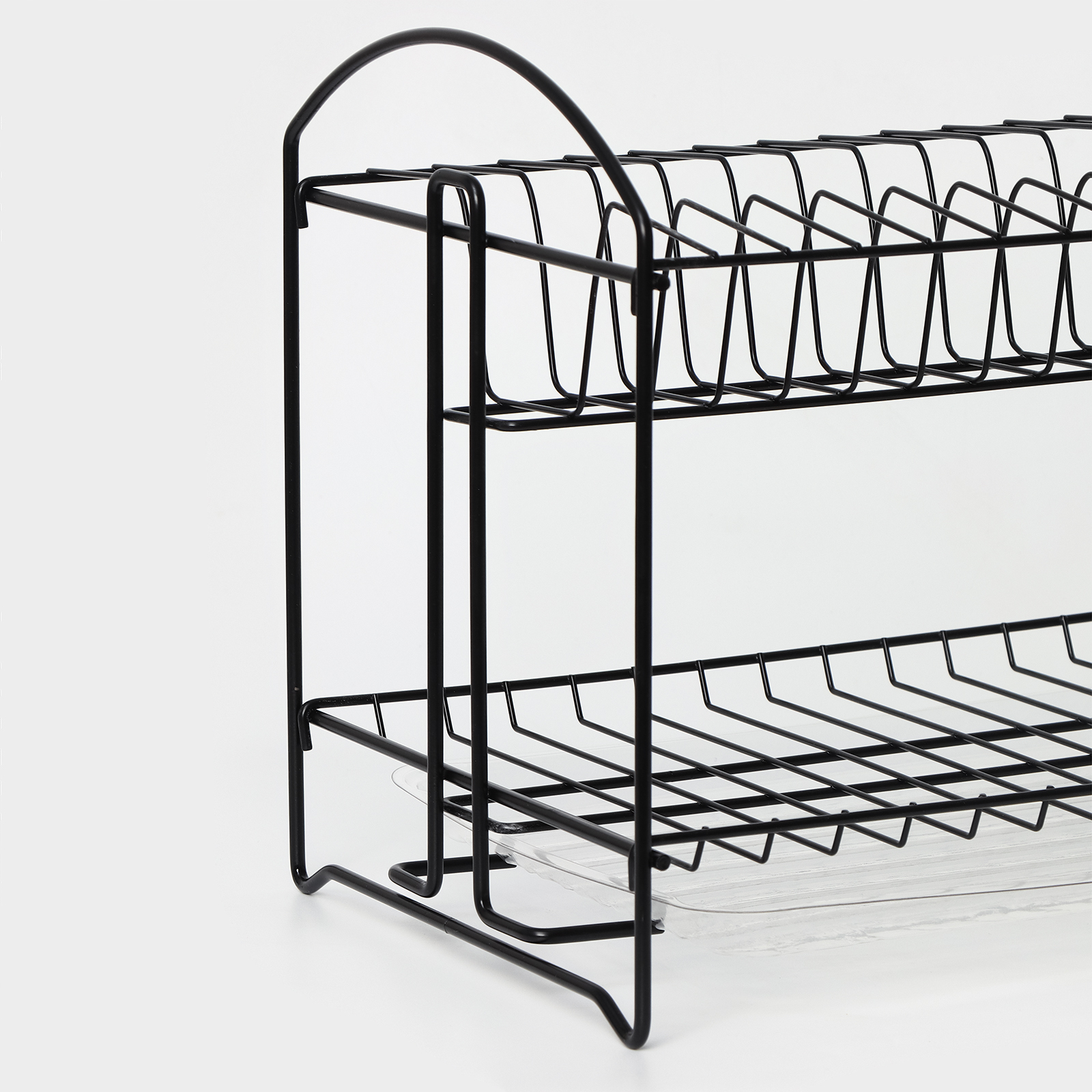 Сушилка для посуды с поддоном 2-х ярусная, разборная, 39,5x24x29,5 см, цвет черный