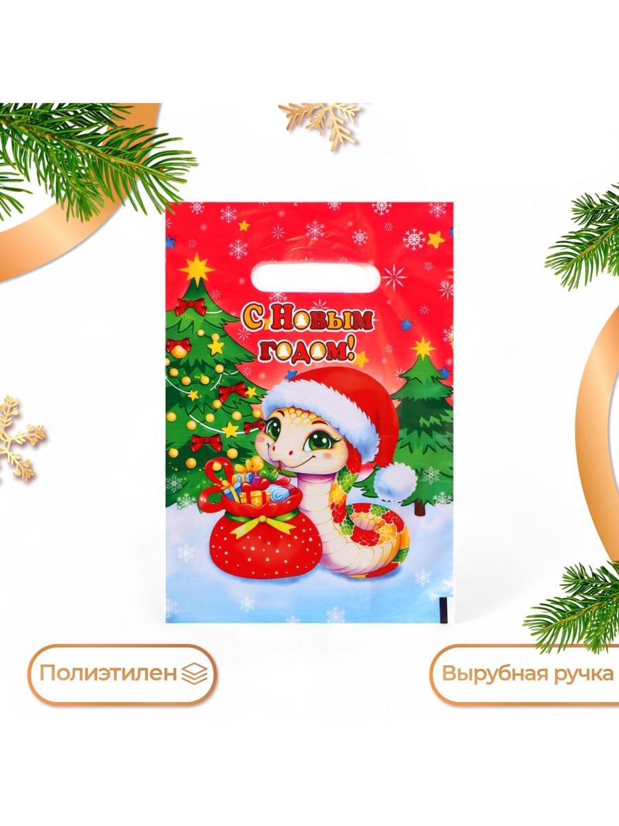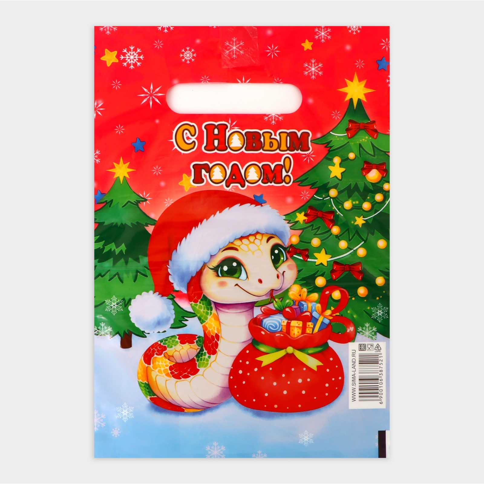 Пакет новогодний подарочный «с новым годом», полиэтиленовый с вырубной ручкой, 20 30 см, 30 мкм