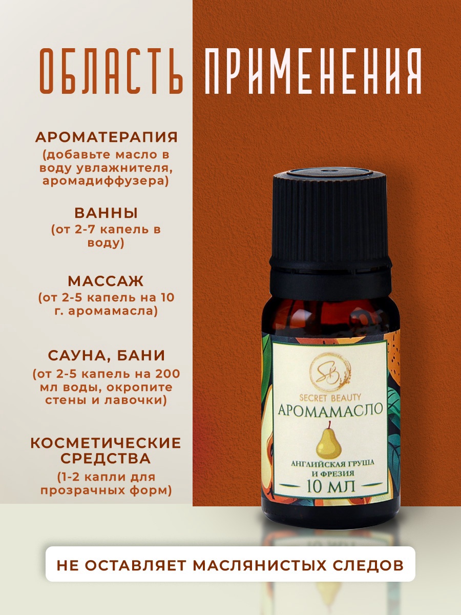 Аромамасло английская груша и фрезия 10 мл. Аромамасло — это идеальный выбор для создания атмосферы уюта и гармонии в вашем доме. С легкостью заполняет пространство изысканным ароматом, который может расслабить, вдохновить или зарядить энергией. Аромамасло можно использовать различными способами, чтобы наслаждаться его ароматом и полезными свойствами: Ароматерапия с помощью диффузора: один из самых популярных способов использования аромамасла — добавление нескольких капель в диффузор для создания приятной атмосферы в комнате. Масло испаряется в воздухе, наполняя помещение ароматом, который способствует расслаблению, улучшает настроение или помогает сосредоточиться.Аромалампа: поместите несколько капель масла в чашу аромалампы, наполненную водой. При подогреве свечой, масло начинает испаряться, наполняя пространство своим ароматом. Это идеальный способ для создания уюта и расслабления в доме.Массаж с аромамаслом: для массажа аромамасло нужно развести с базовым маслом (например, с кокосовым или миндальным). Несколько капель аромамасла придадут массажу не только аромат, но и терапевтический эффект, улучшая кровообращение, расслабляя мышцы и способствуя улучшению самочувствия.Для улучшения сна: для расслабления перед сном используйте аромамасло в диффузоре или капните немного на подушку. Лавандовый или другой успокаивающий аромат может помочь быстрее уснуть и улучшить качество сна.Стимуляция энергии и концентрации: для повышения концентрации и бодрости в течение дня добавьте аромамасло в диффузор или нанесите на кожу (смешав с базовым маслом). Например, цитрусовые или мятные ароматы помогают сосредоточиться и бодрствовать.Спа-процедуры: добавьте несколько капель аромамасла в воду для ванны. Это не только создаст расслабляющую атмосферу, но и смягчит кожу. Для этого можно использовать масла с увлажняющими или питательными свойствами.Парфюм на основе аромамасла: несколько капель аромамасла можно нанести на запястья или шею как натуральный парфюм. Это обеспечит продолжительный и уникальный аромат, который будет ощущаться в течение дня.Набор:Нет|Объём, мл:10|Аромат:Фрезия|Аромат:Груша|Страна:Китай  развернуть описание ▼