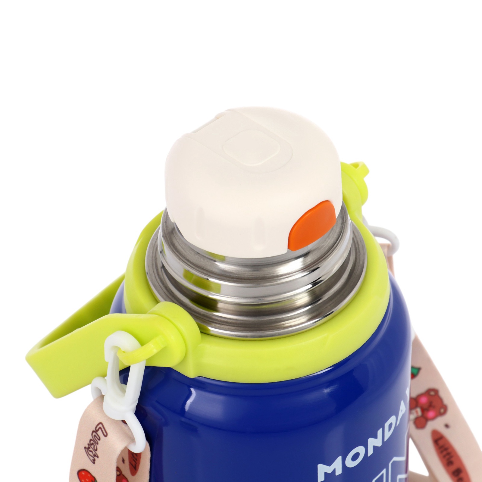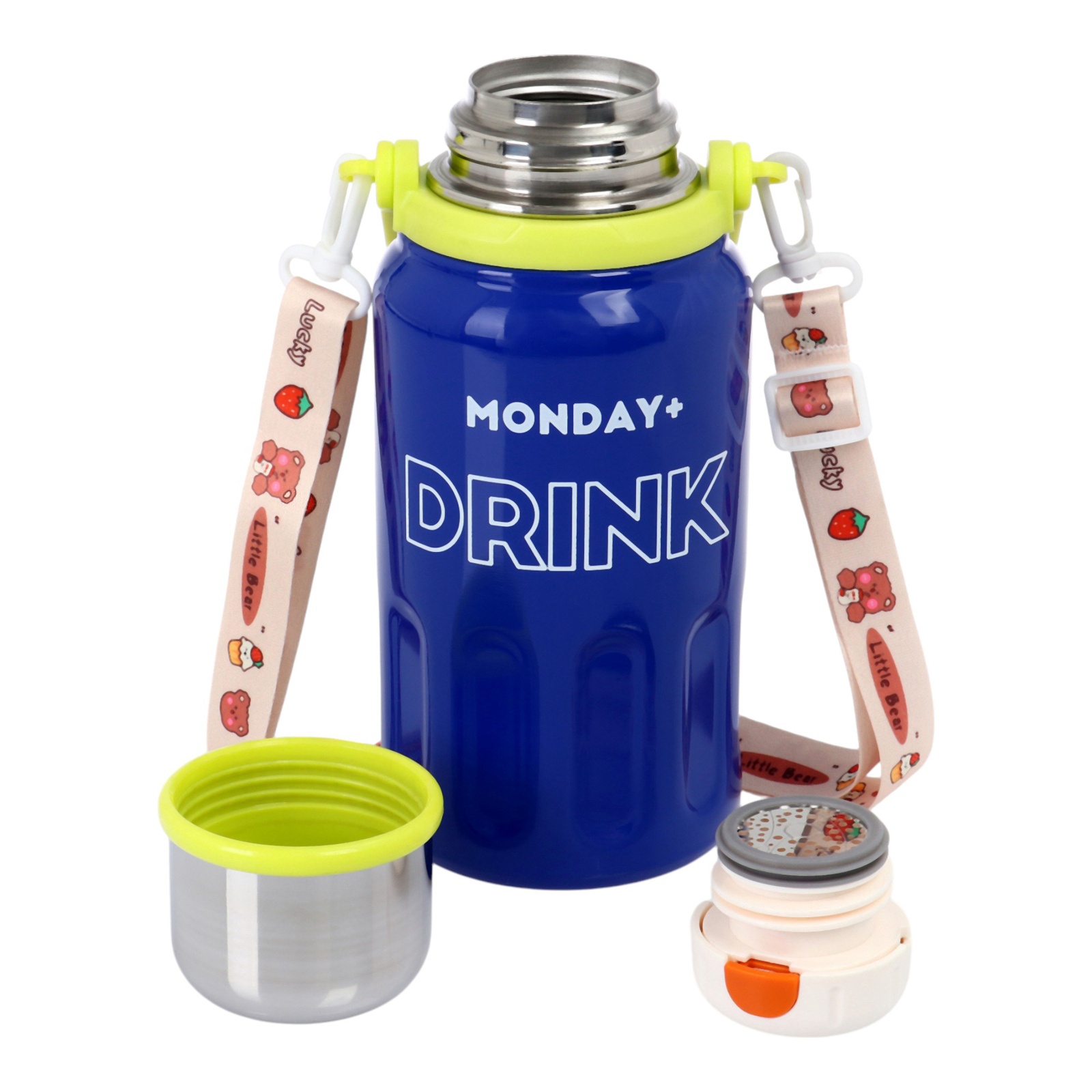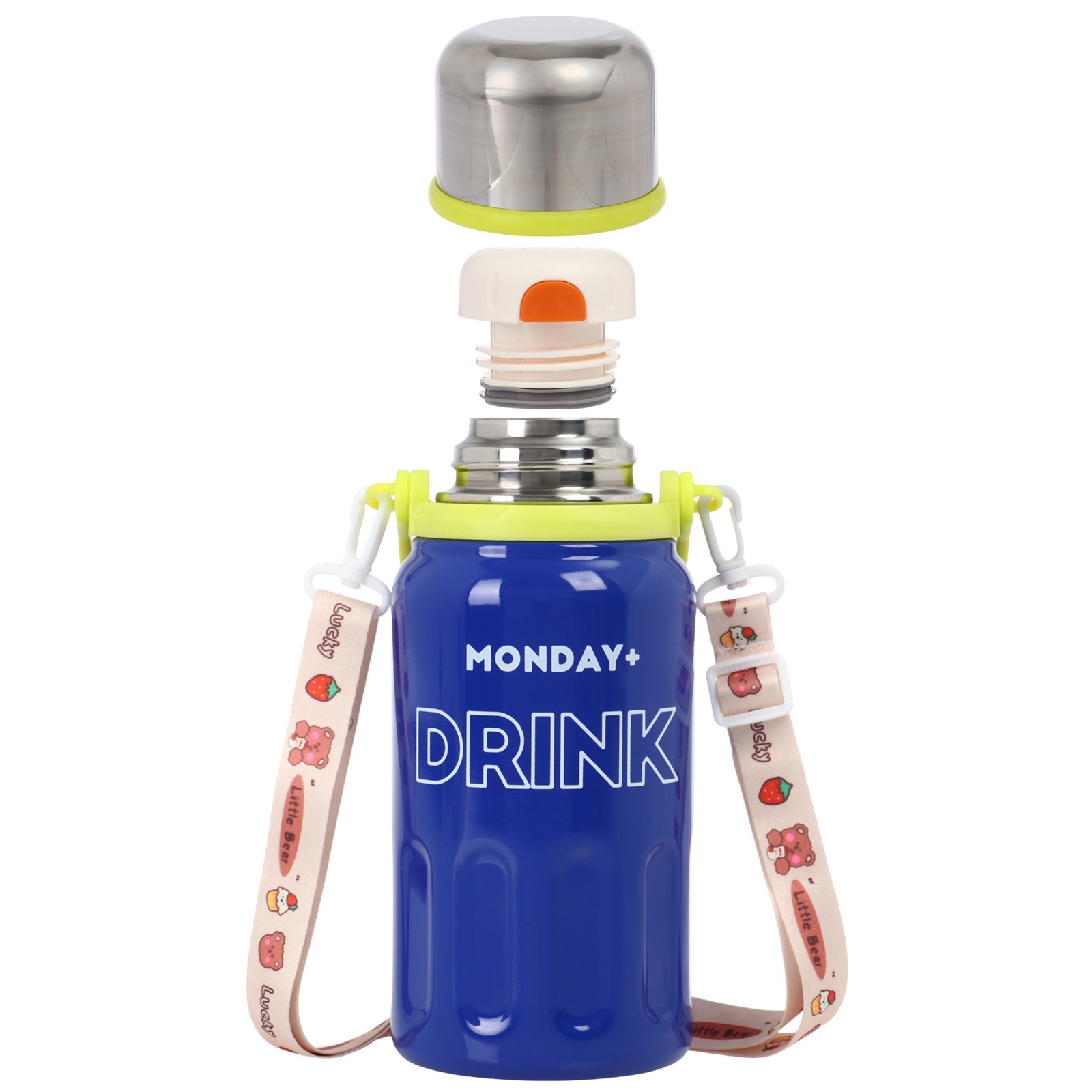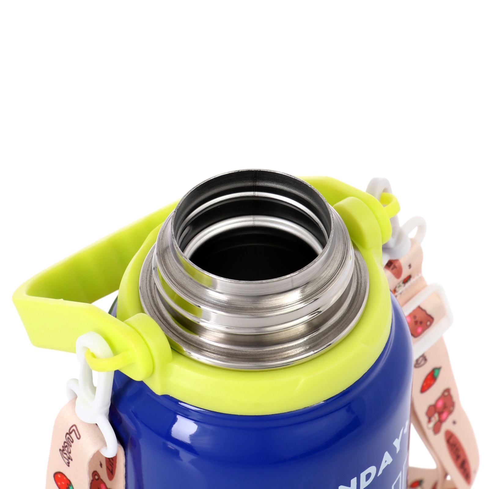 Термос для чая и кофе Coffee Cup, 1 л, сохраняет тепло 10 ч, кружка-чашка, ремешок, нержавеющая сталь, синий